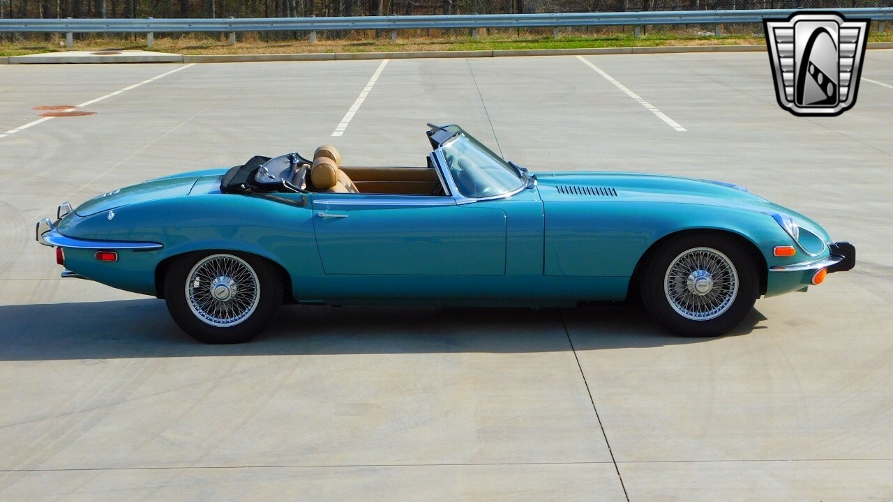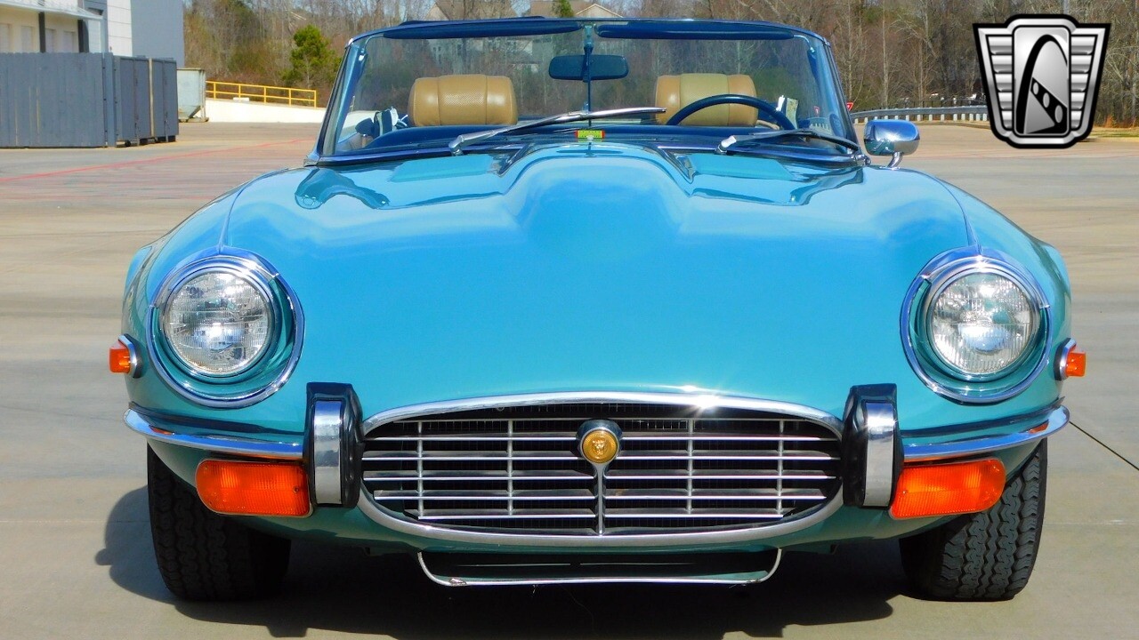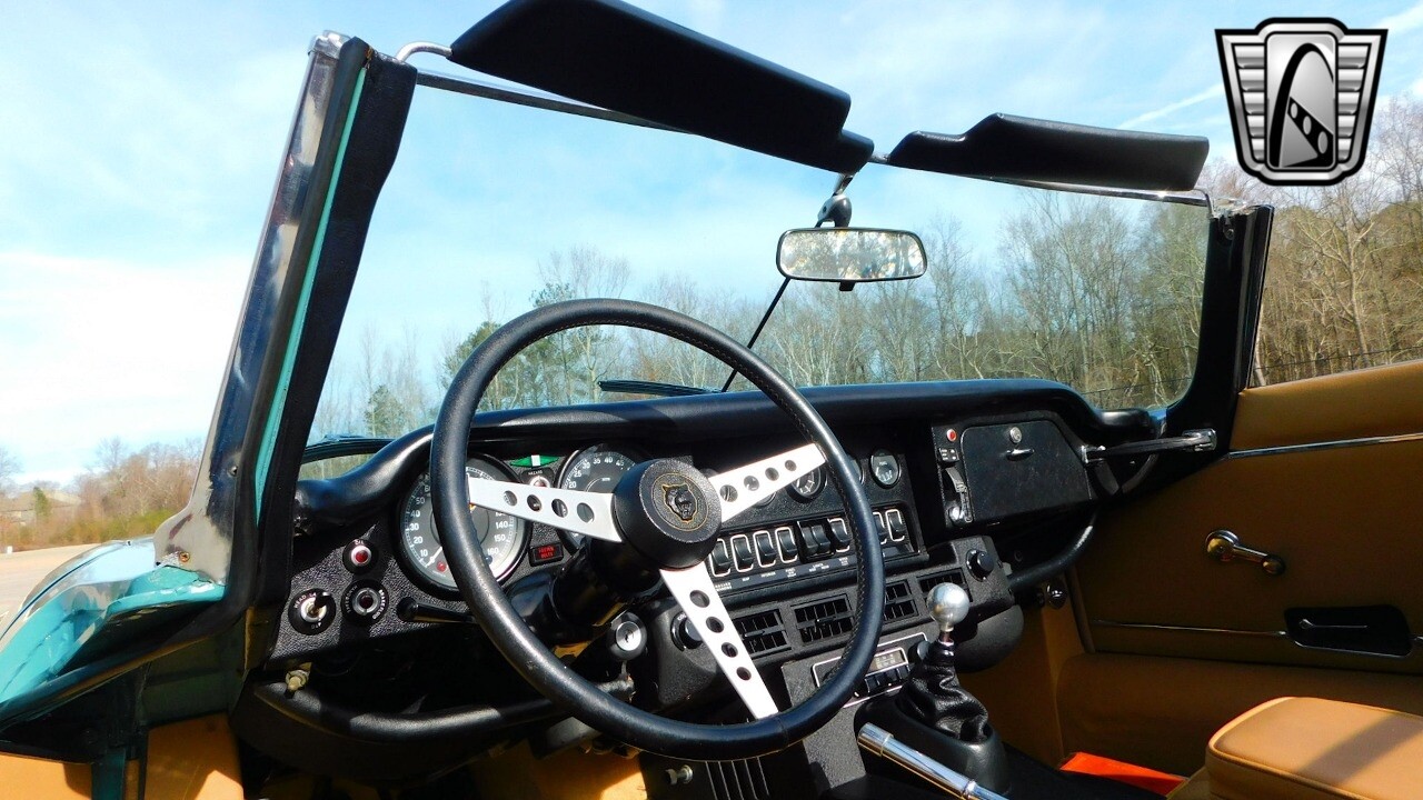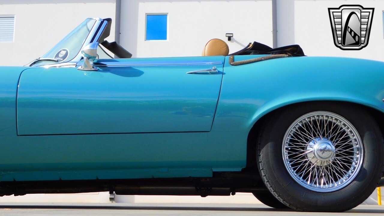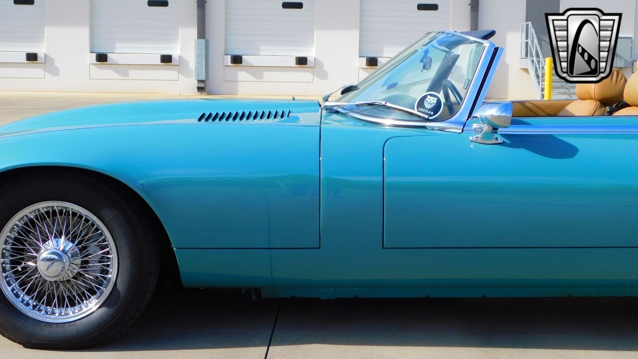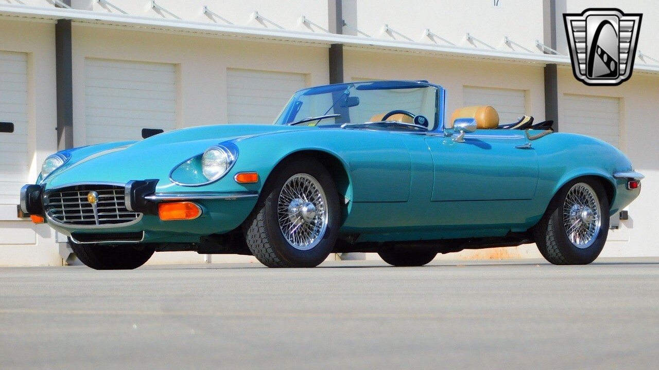 Introducing this 1973 Jaguar E-Type V12 Convertible, a blend of British engineering and alluring antiquity. With its appealing turquoise exterior, it is truly a classic motor vehicle. The dazzling body shade is contrasted by the tan interior - a combination made to turn heads and evoke admiration wherever you go.