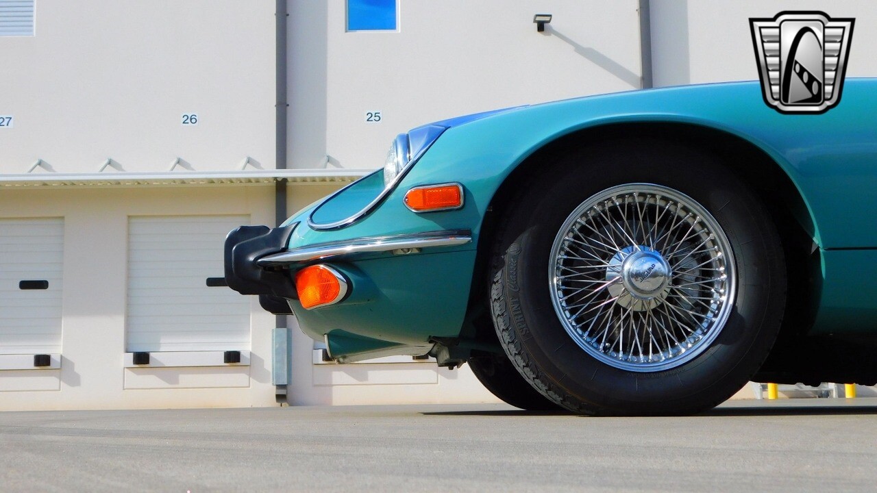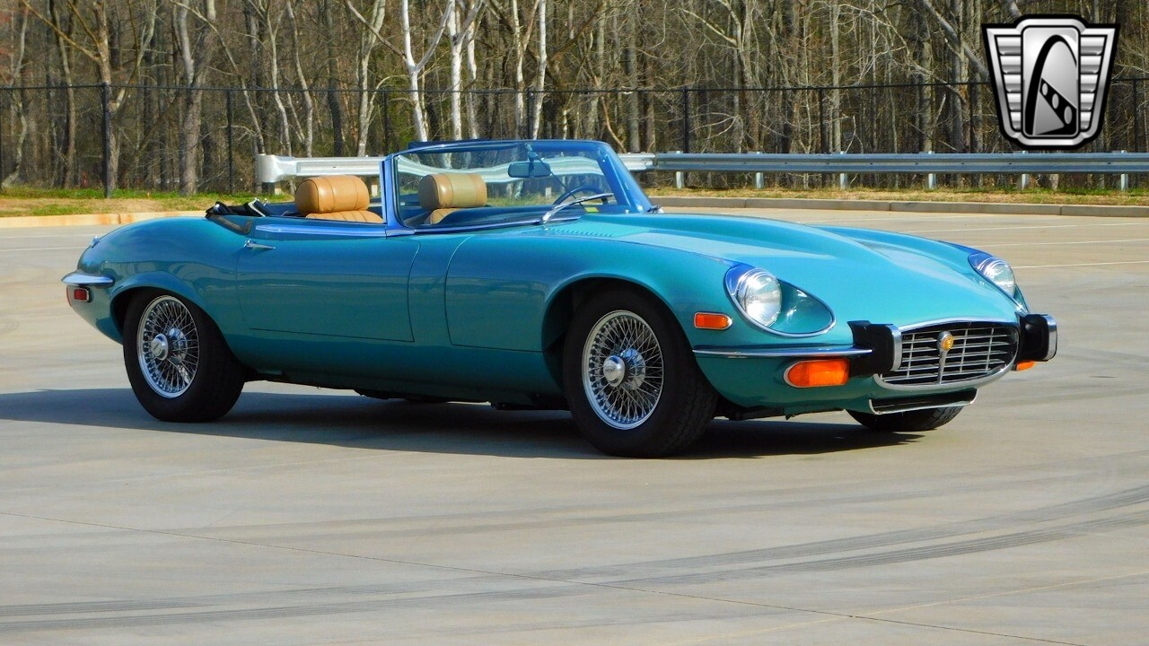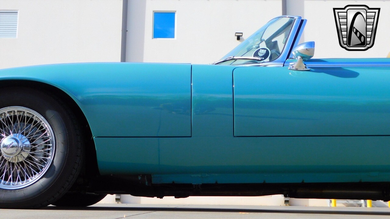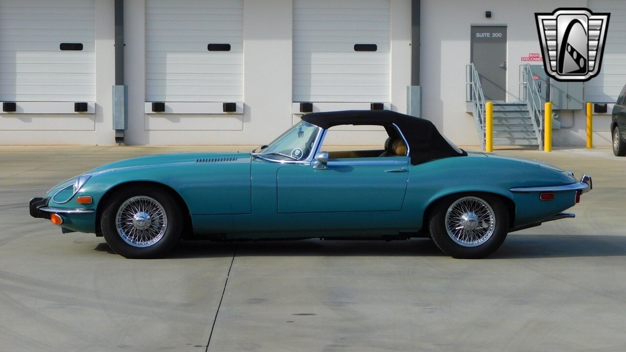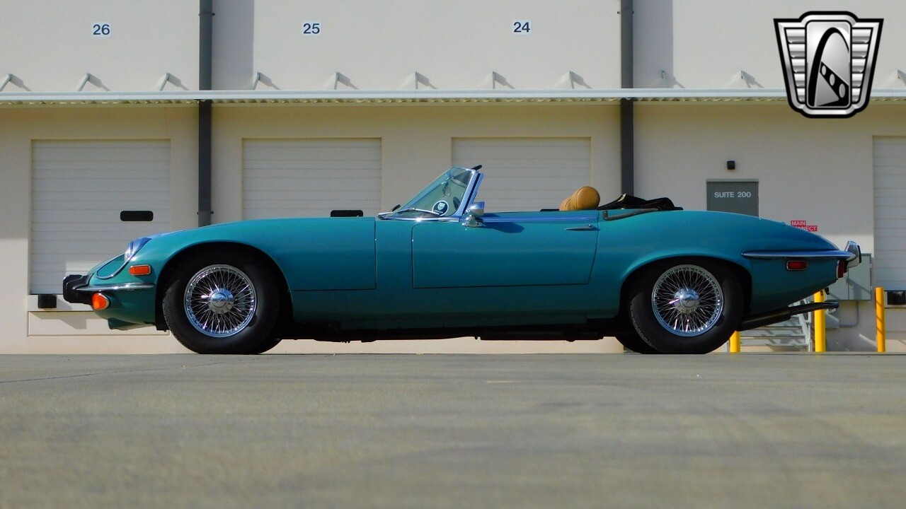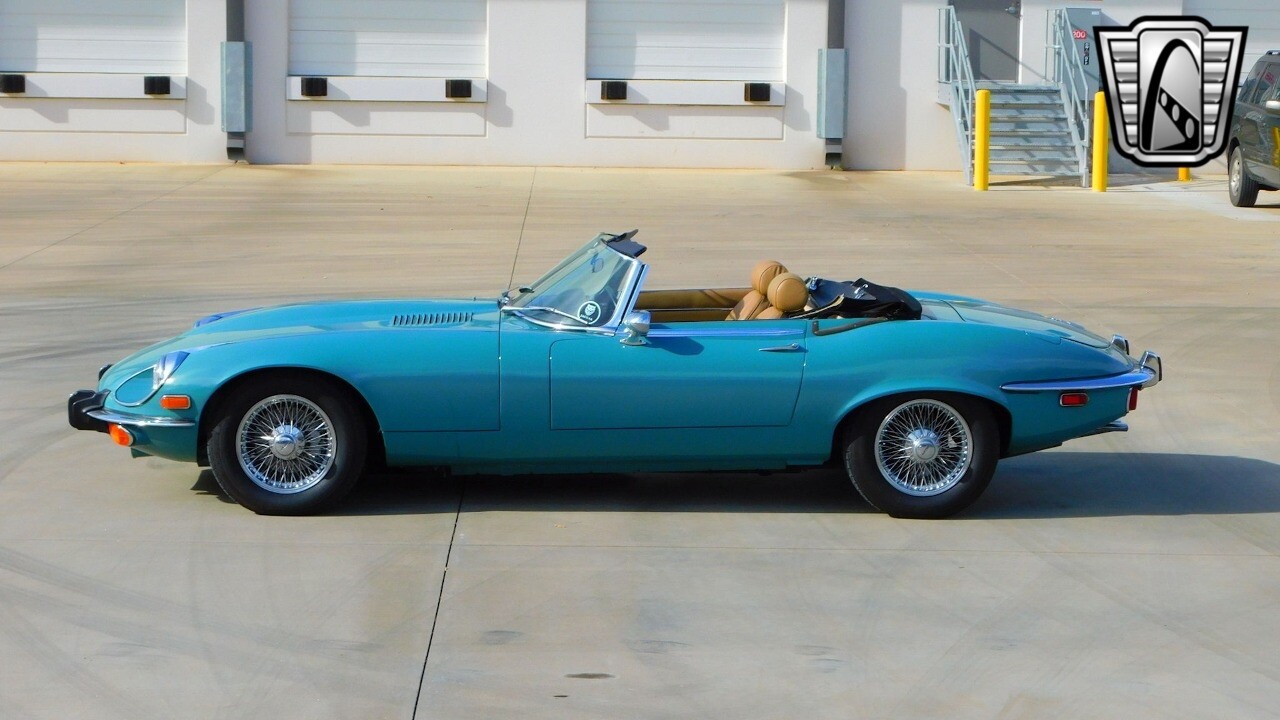 Introducing this 1973 Jaguar E-Type V12 Convertible, a blend of British engineering and alluring antiquity. With its appealing turquoise exterior, it is truly a classic motor vehicle. The dazzling body shade is contrasted by the tan interior - a combination made to turn heads and evoke admiration wherever you go.