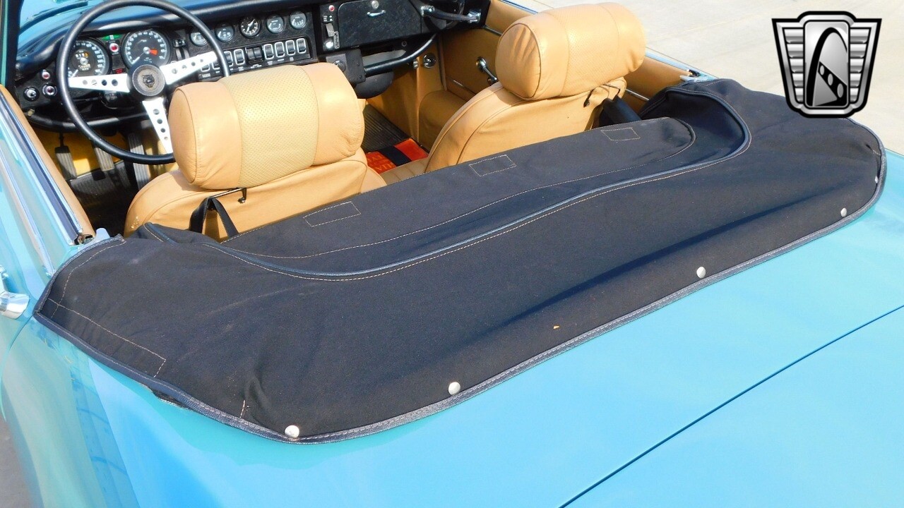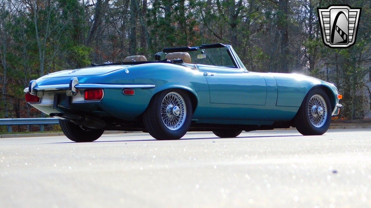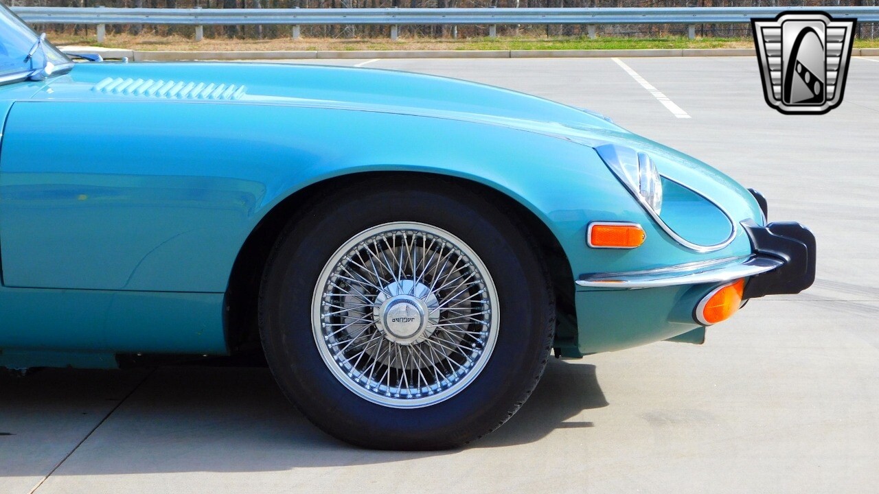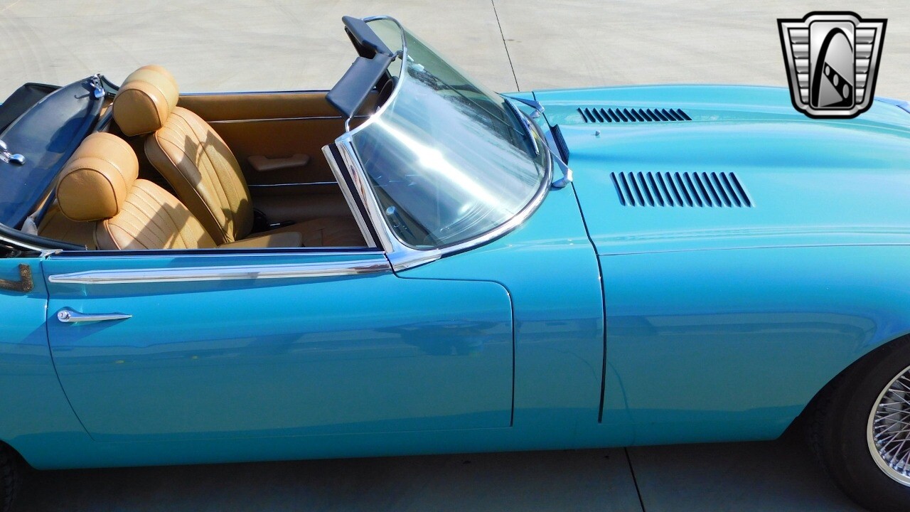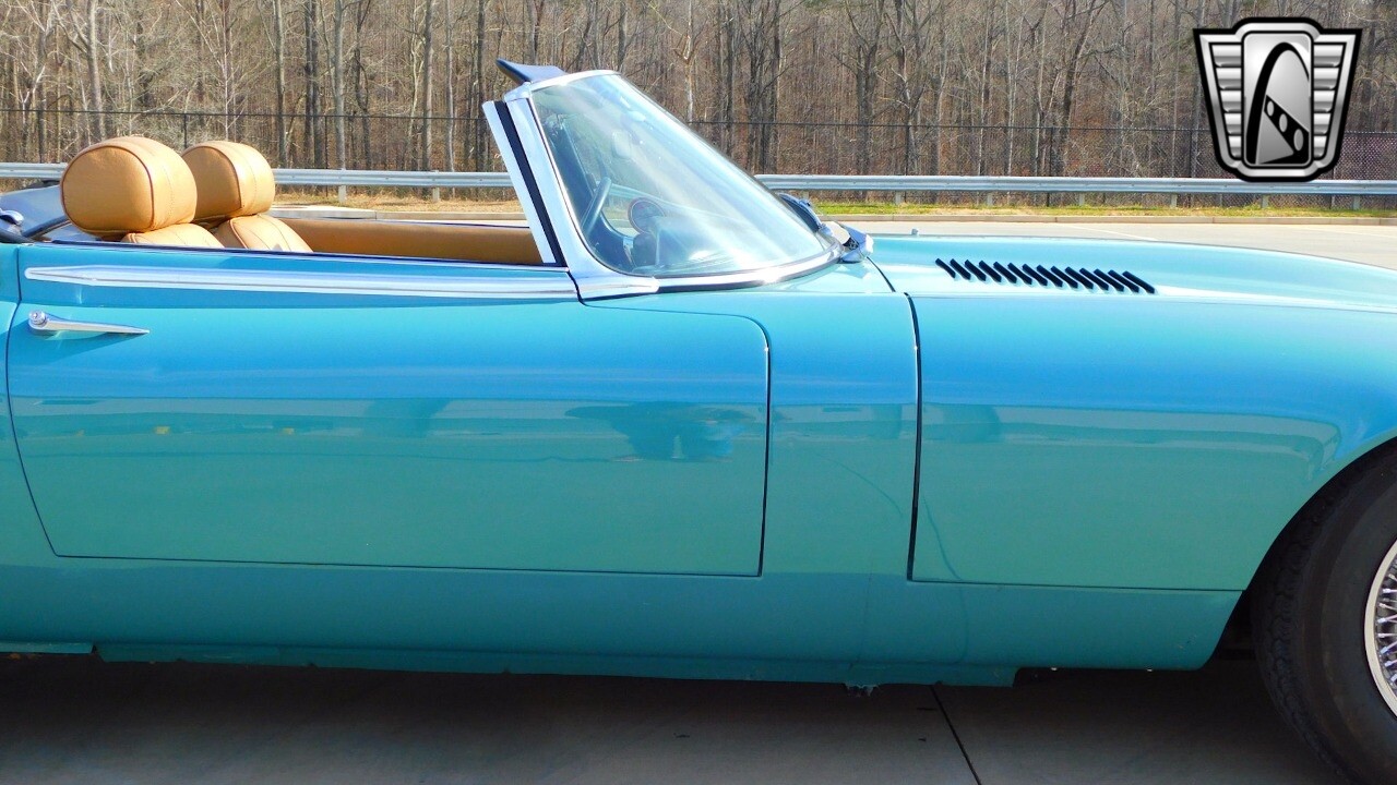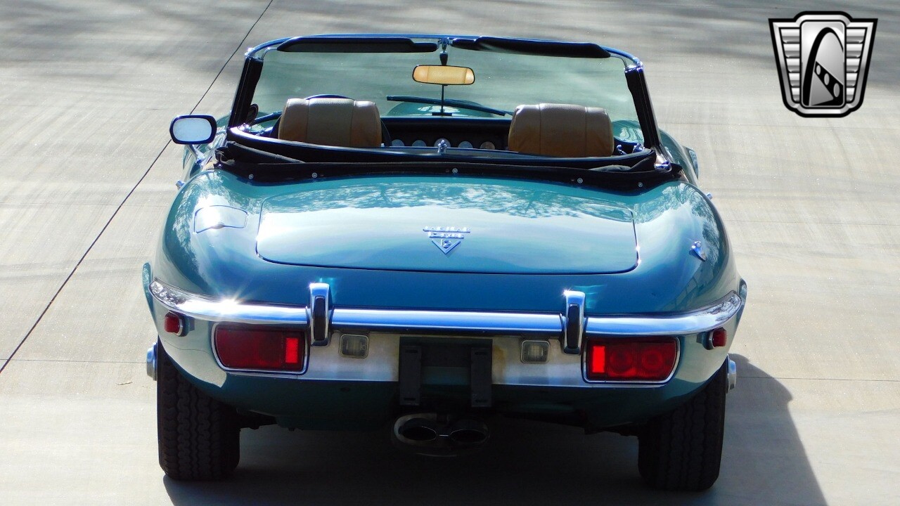 Introducing this 1973 Jaguar E-Type V12 Convertible, a blend of British engineering and alluring antiquity. With its appealing turquoise exterior, it is truly a classic motor vehicle. The dazzling body shade is contrasted by the tan interior - a combination made to turn heads and evoke admiration wherever you go.