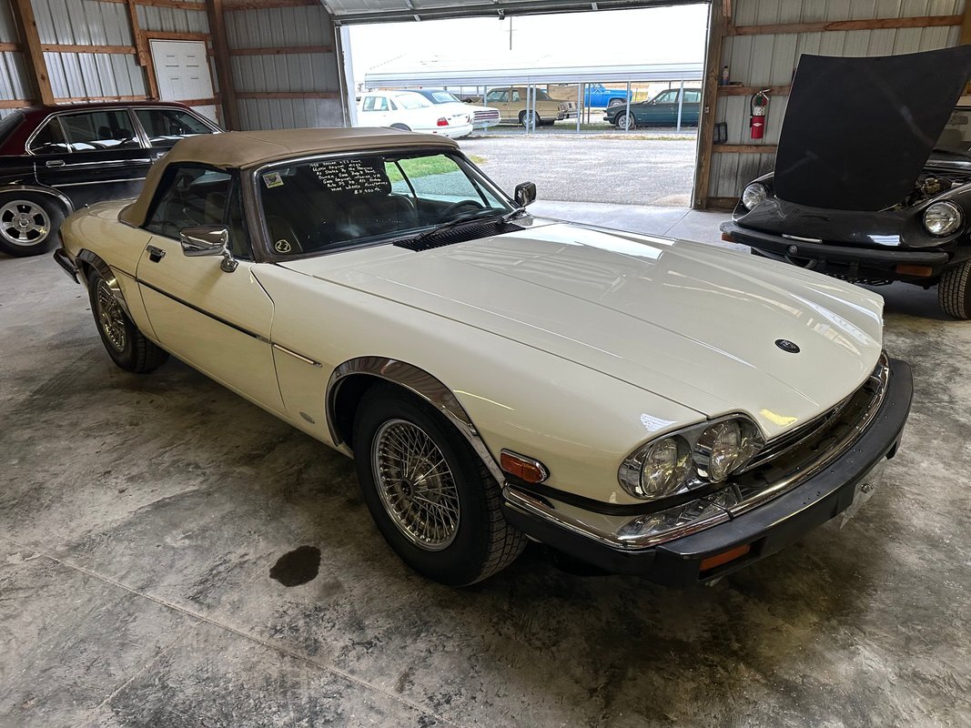 1988 Jaguar XJS convertible. Odometer shows 66,xxx original miles and was stated by previous owner. This car has a good body and paint along with the original interior. The engine is a V12 and it has an automatic transmission. It comes with factory wheels, power steering, power brakes, and air conditioning. It runs and drives.