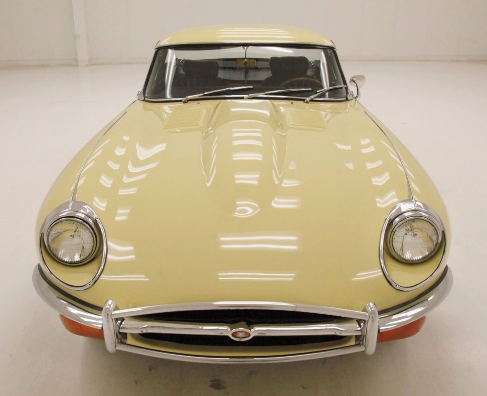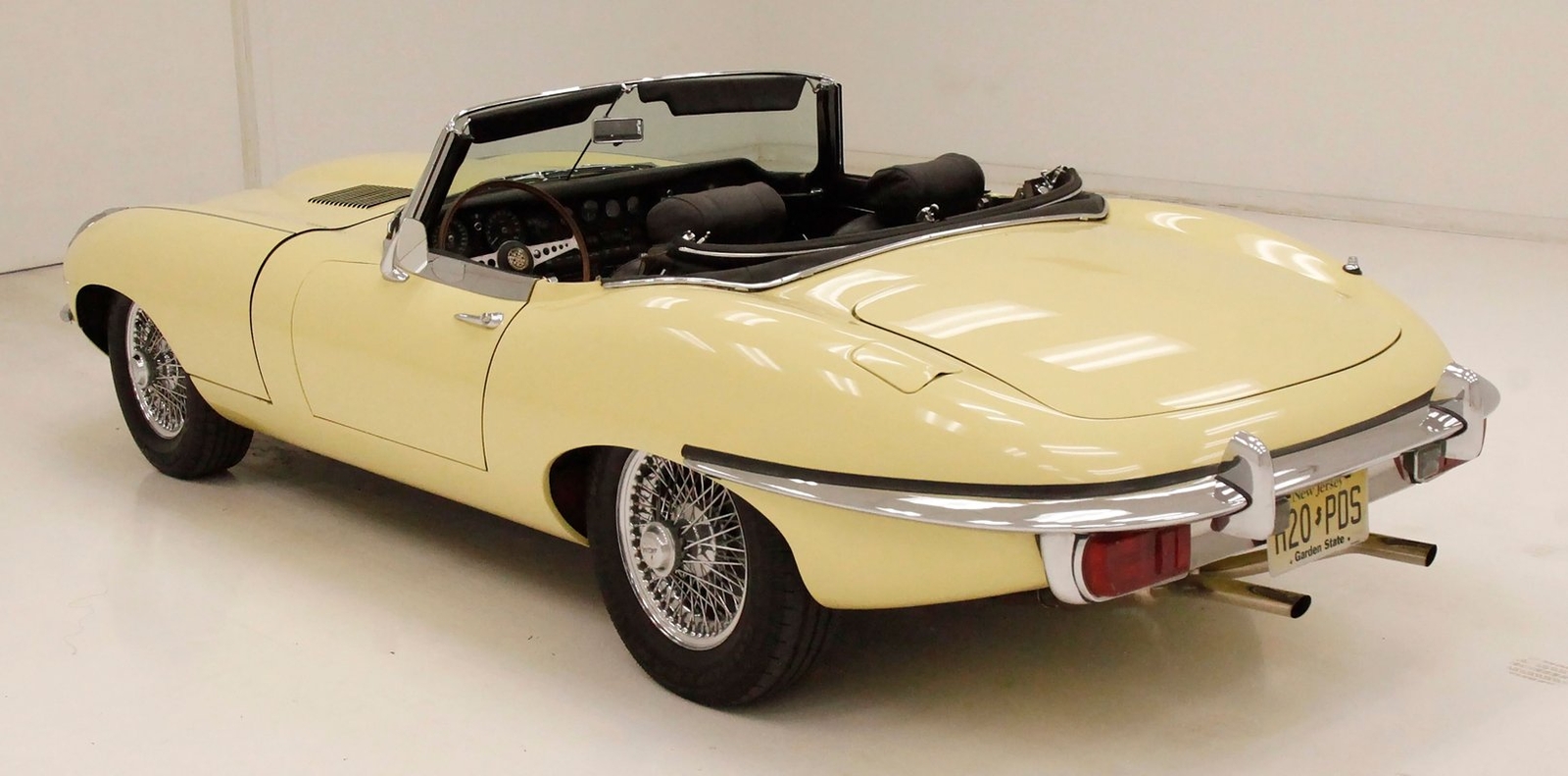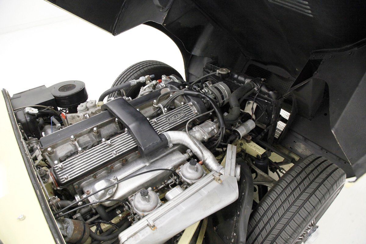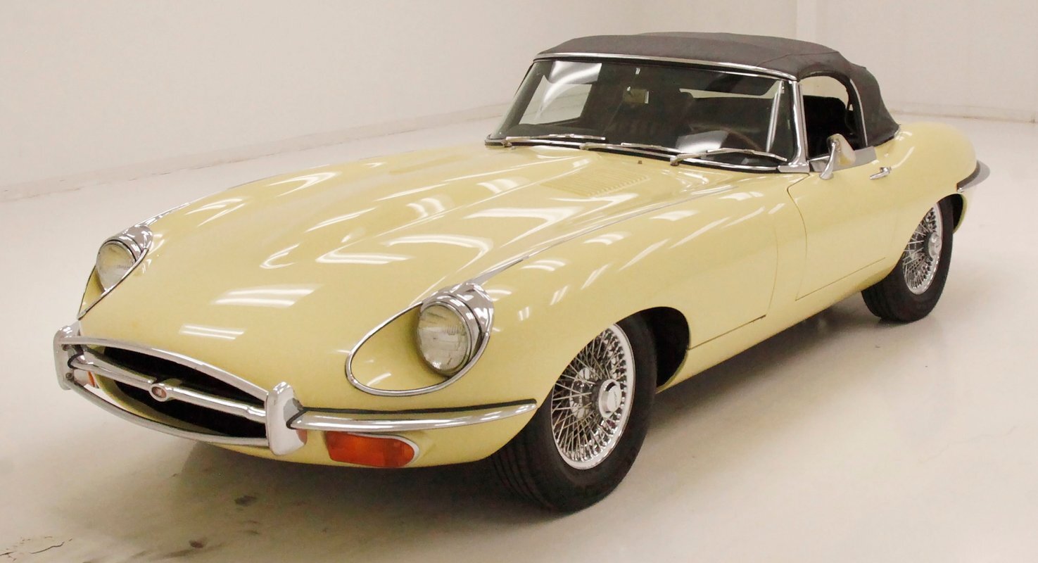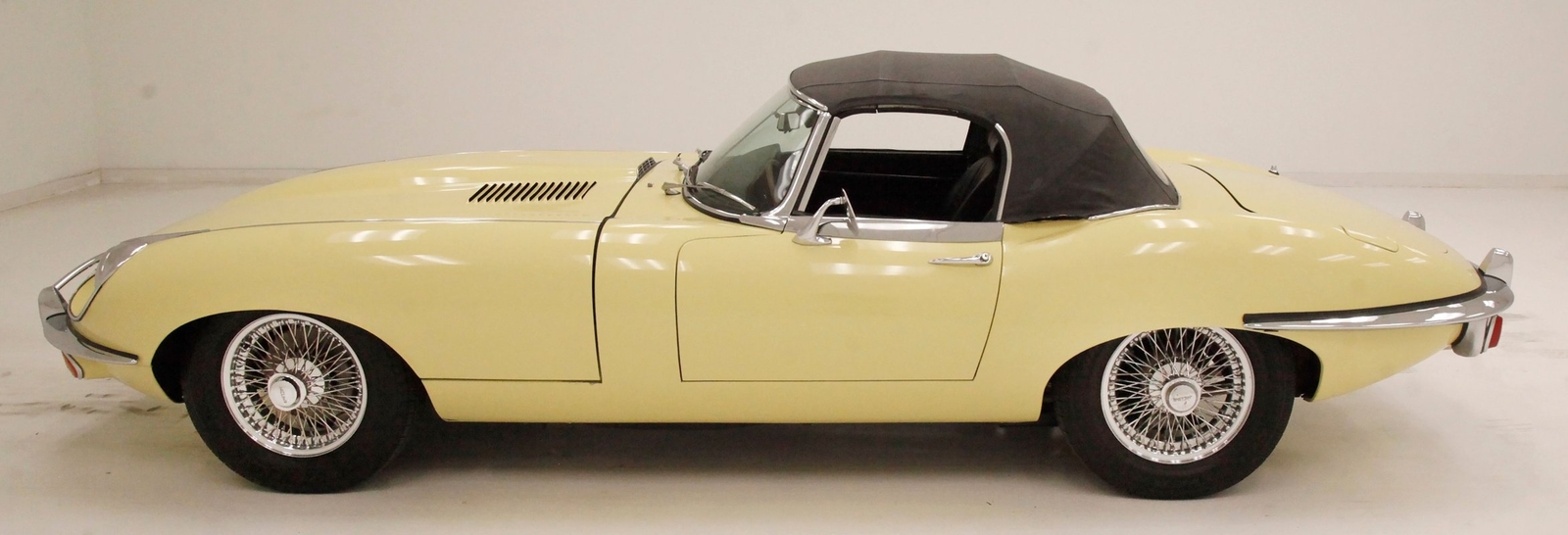 For consignment, shades of Austin Powers in the form of this very recognizable British Automobile, the XKE Jaguar. Treated to a full on restoration of this 46,131 title verified original mile rust free car in 2007 then bathed in the correct Pale Primrose Yellow this car falls into the driver quality plus condition. With its Jaguar Heritage Trust certificate and all the correct numbers throughout, you will be hard pressed to find a better example that you can drive without fear of ruining things. Add in the optional factory hardtop, factory AC, the original tonneau cover, tire jack, tools and tool roll as well as a reproduction owners and maintenance manual you'll be tooling about in high style governor...aye what?