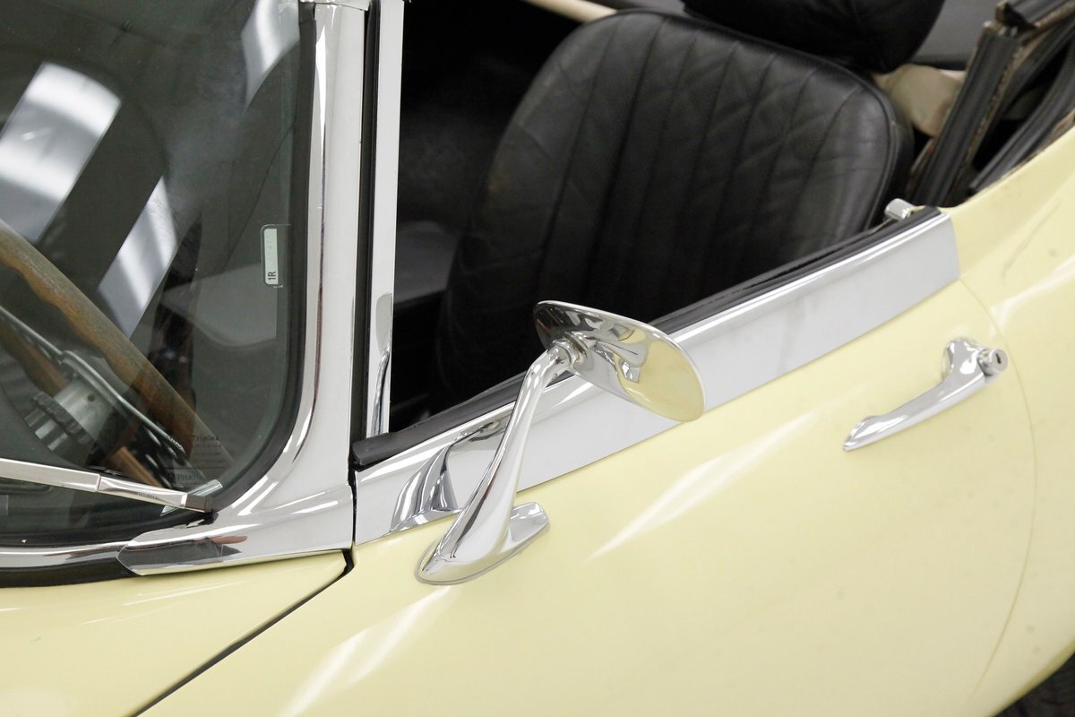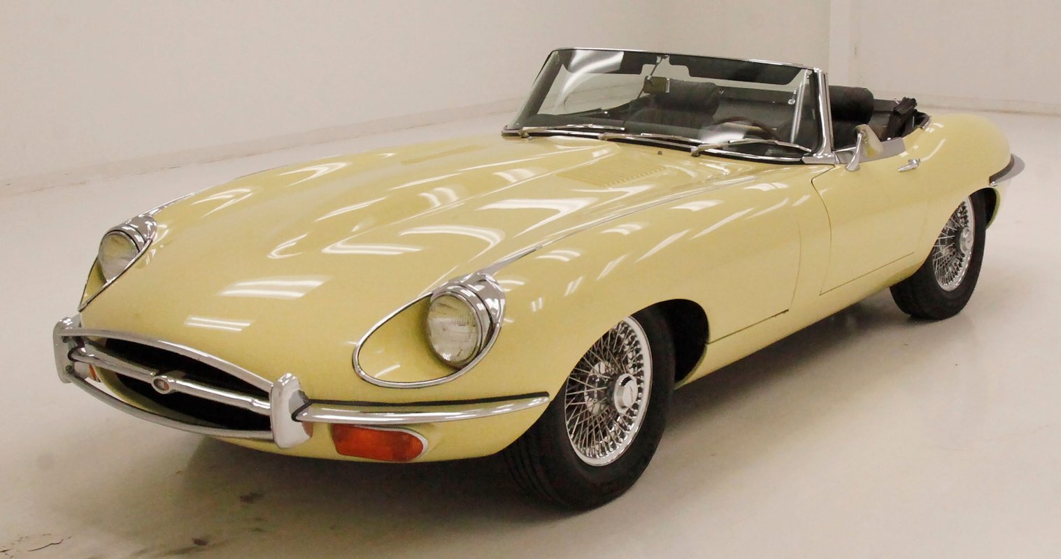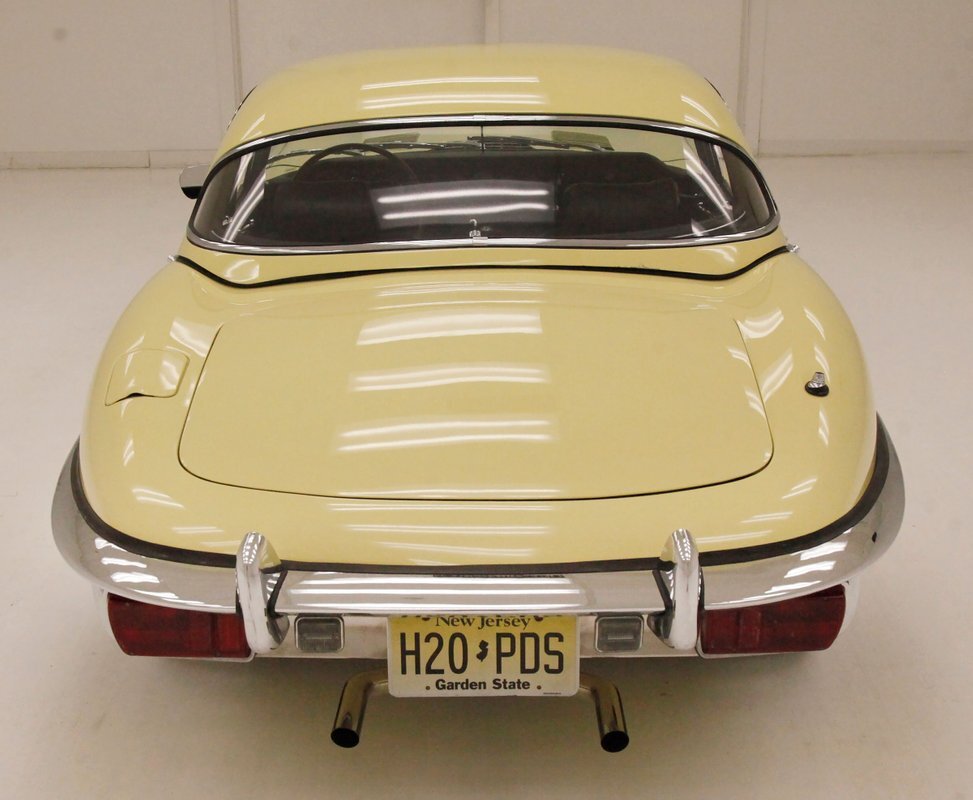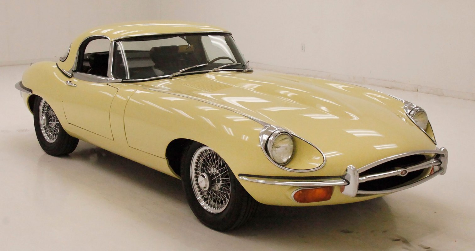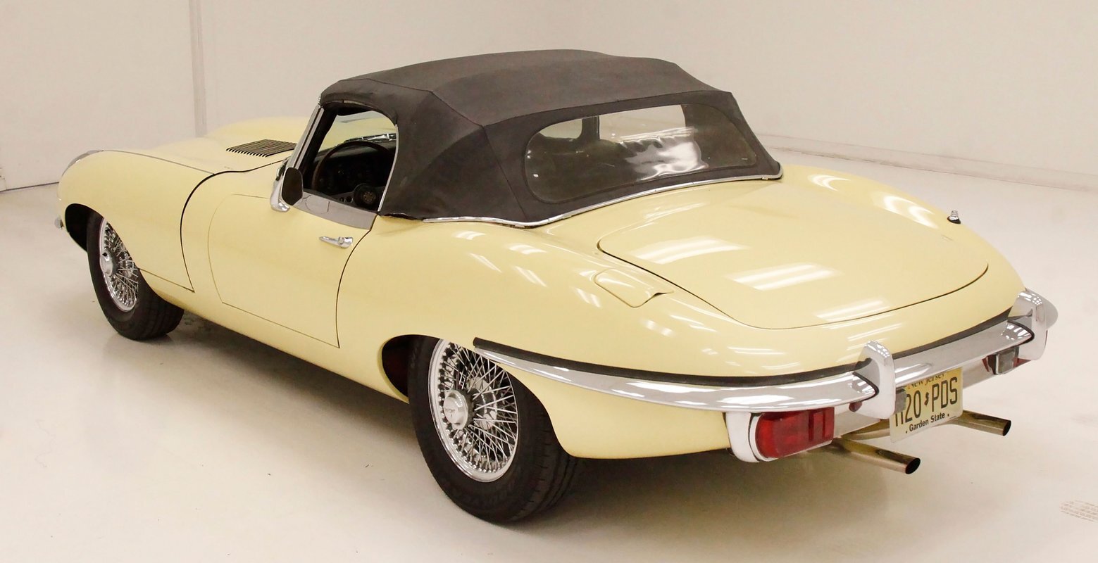 For consignment, shades of Austin Powers in the form of this very recognizable British Automobile, the XKE Jaguar. Treated to a full on restoration of this 46,131 title verified original mile rust free car in 2007 then bathed in the correct Pale Primrose Yellow this car falls into the driver quality plus condition. With its Jaguar Heritage Trust certificate and all the correct numbers throughout, you will be hard pressed to find a better example that you can drive without fear of ruining things. Add in the optional factory hardtop, factory AC, the original tonneau cover, tire jack, tools and tool roll as well as a reproduction owners and maintenance manual you'll be tooling about in high style governor...aye what?