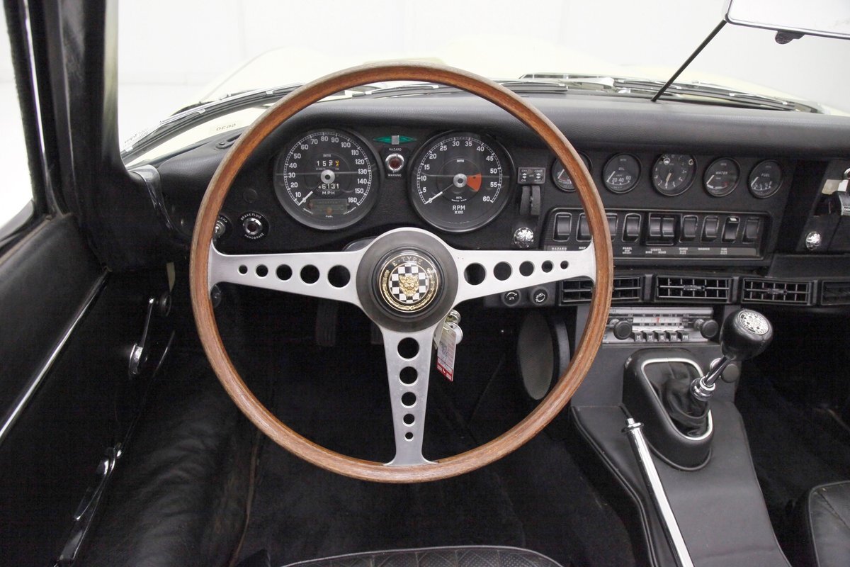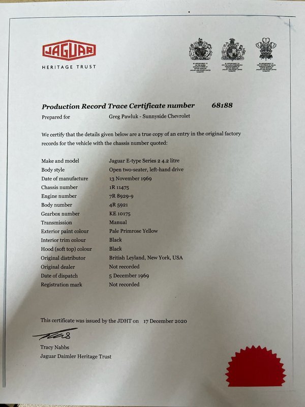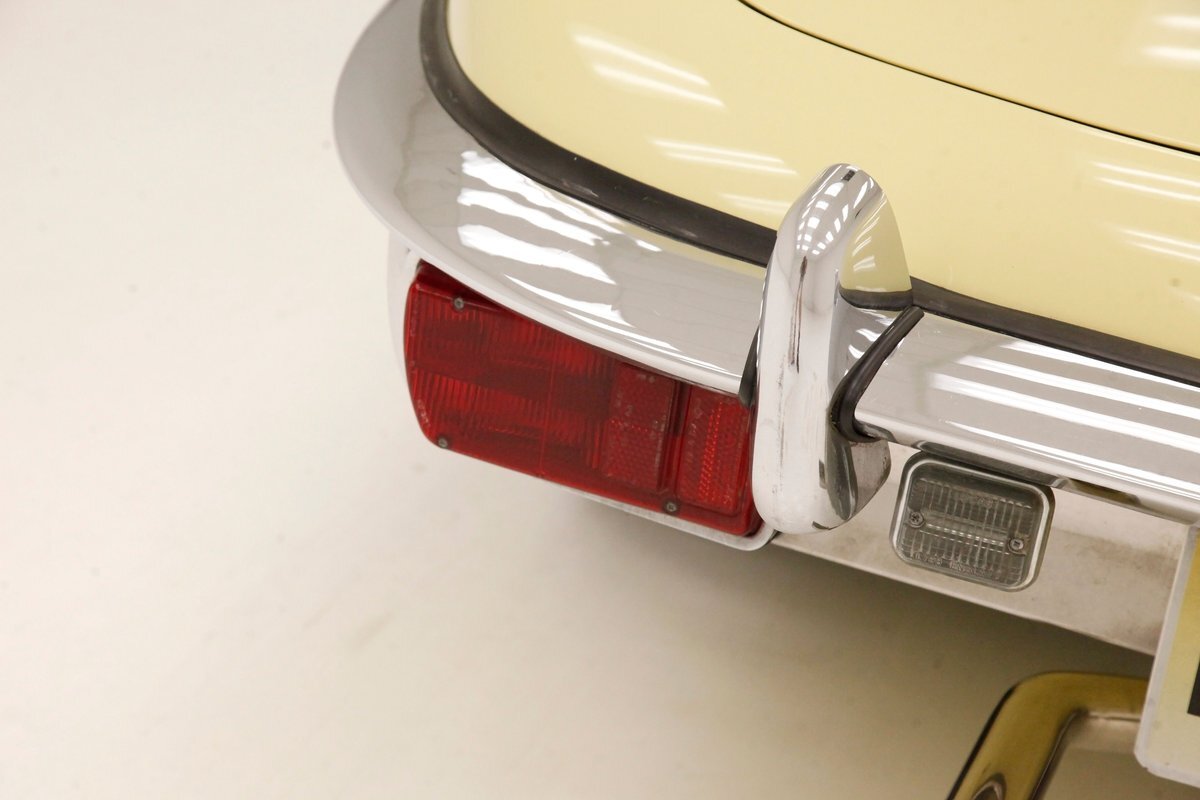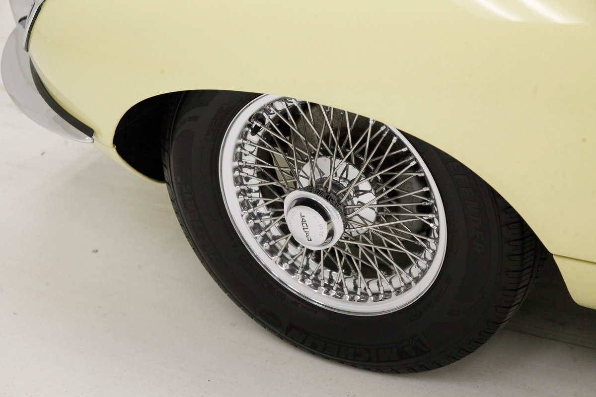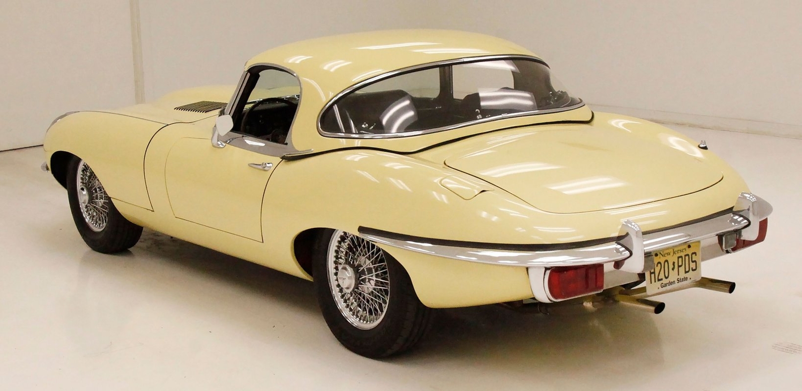 For consignment, shades of Austin Powers in the form of this very recognizable British Automobile, the XKE Jaguar. Treated to a full on restoration of this 46,131 title verified original mile rust free car in 2007 then bathed in the correct Pale Primrose Yellow this car falls into the driver quality plus condition. With its Jaguar Heritage Trust certificate and all the correct numbers throughout, you will be hard pressed to find a better example that you can drive without fear of ruining things. Add in the optional factory hardtop, factory AC, the original tonneau cover, tire jack, tools and tool roll as well as a reproduction owners and maintenance manual you'll be tooling about in high style governor...aye what?