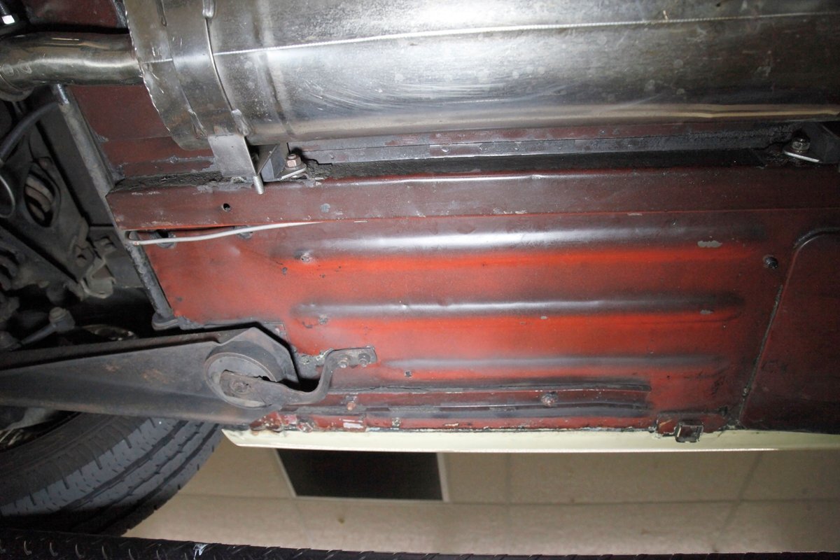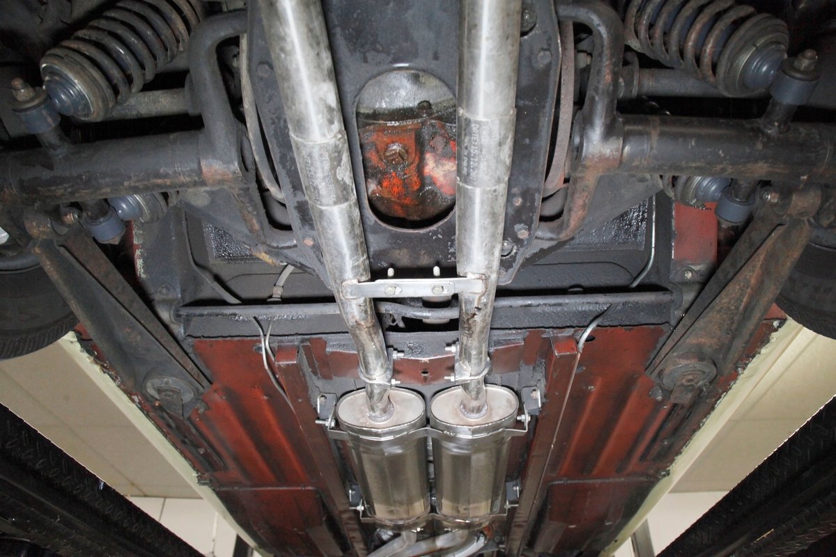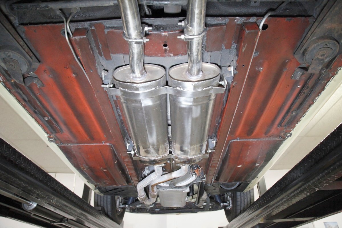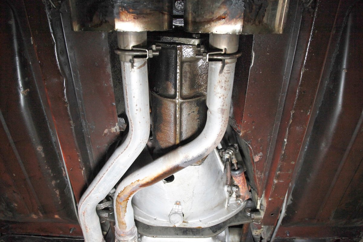 All clean and shiny underneath, reworked, and very clean independent torsion bar front suspension, and independent coil overs for the back. Disc brakes reside on all 4 corners and factory style dual exhaust is on the for exhale. No structural problems, and a very sturdy and clean frame.