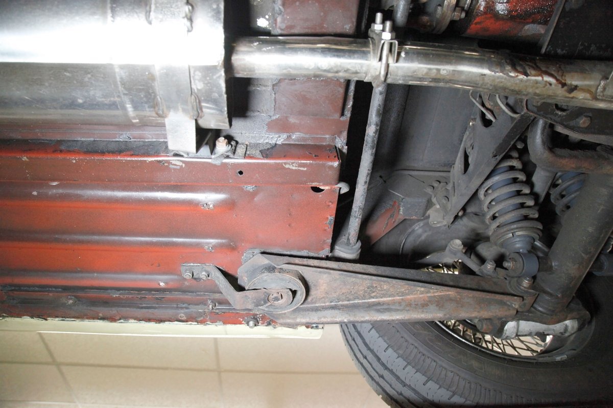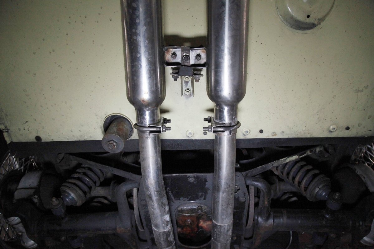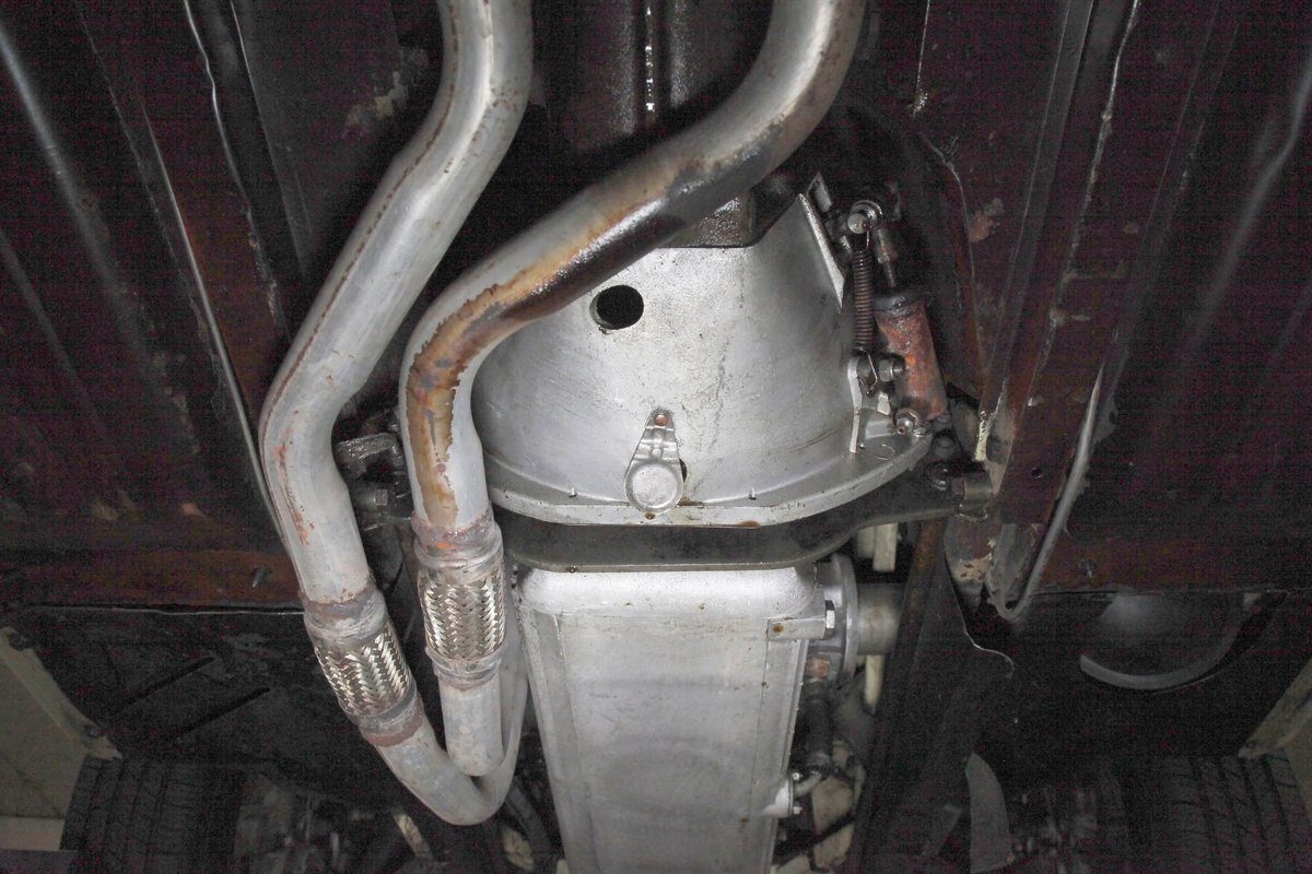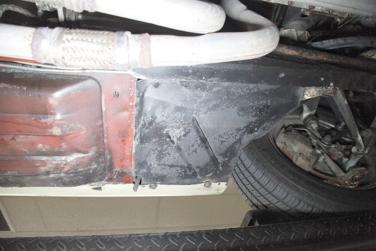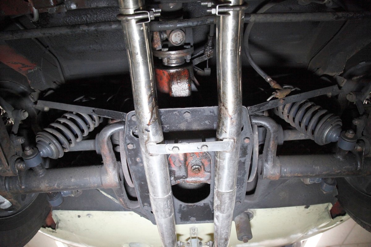 All clean and shiny underneath, reworked, and very clean independent torsion bar front suspension, and independent coil overs for the back. Disc brakes reside on all 4 corners and factory style dual exhaust is on the for exhale. No structural problems, and a very sturdy and clean frame.