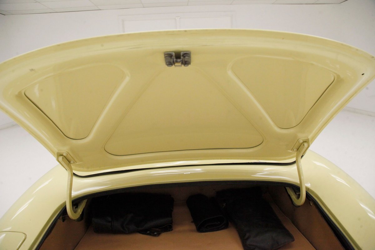 Jaguar motors nailed it when they penned this design which utilizes a long long bulbous bonnet, curvaceous fenders which wrap chrome wire knockoff wheels, and a curved to a pinched boot, framed by a chrome wrap around bumper. These bumpers are pre large rubber government mandated crash pads so they look great. The paint on this car is very good with only a few minor inclusions and dings. This is due to the 2007 restoration that took the rust free body down to bare metal, all panels repaired and some prior accident damage fixed on the passengers rear quarter panel. This has left us with a wonderfully consistent miles deep finish. The chrome and badging are all original as well as trim is all gleaming and nary any faults. Convertible top is very nicely preserved, and presents in a slightly faded black canvas with a lightly yellowed plastic window. A black tonneau cover wraps up the top nicely when it is in the down position and a rarely seen factory Pale Primrose Yellow hardtop can be installed for inclement weather driving. Chromed 15-inch wire wheels with knockoff hubs are seen on all 4 corners and these are wrapped in 205/70R15's in the front and 195/75R15 in the rear. No more Avons!!