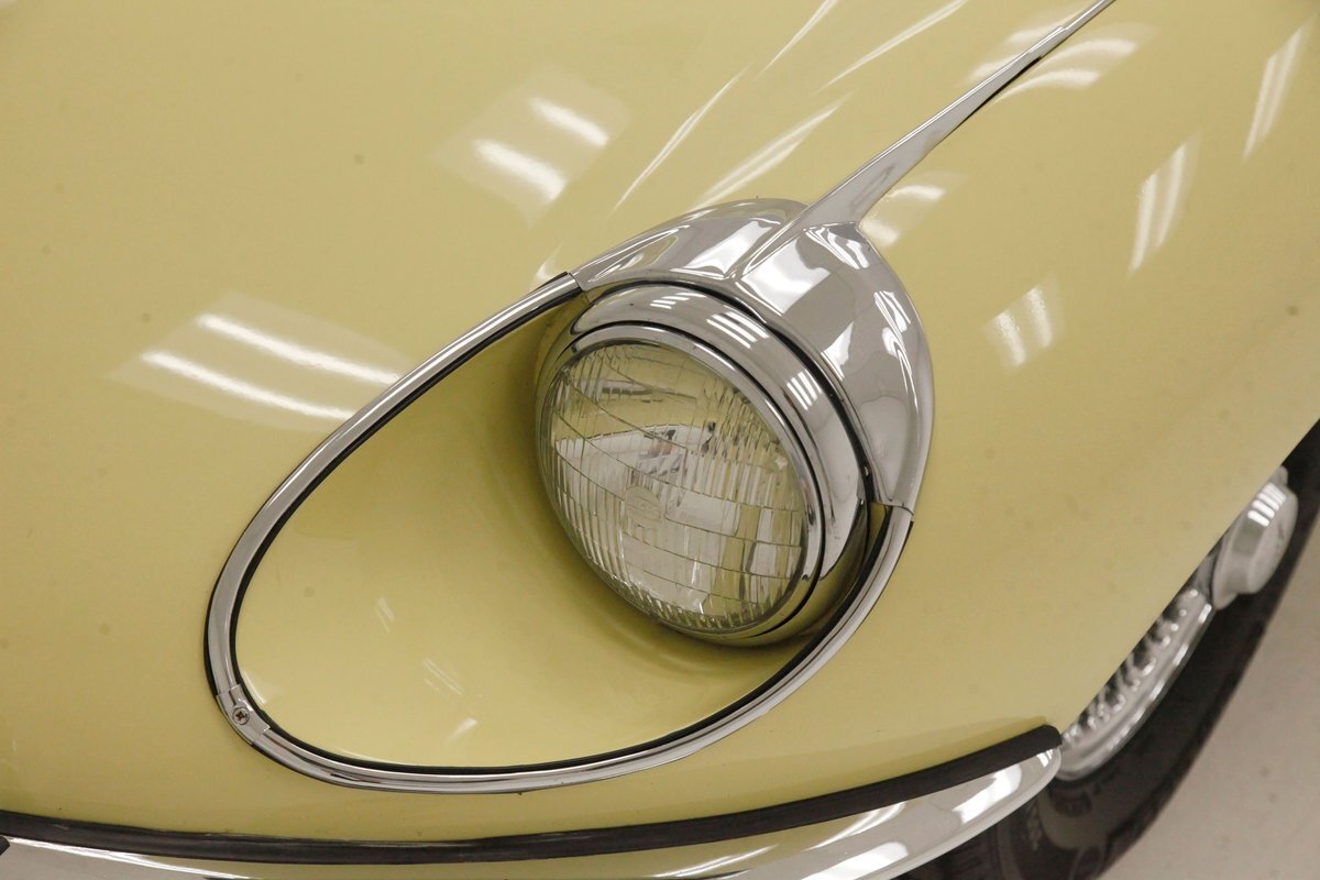 Jaguar motors nailed it when they penned this design which utilizes a long long bulbous bonnet, curvaceous fenders which wrap chrome wire knockoff wheels, and a curved to a pinched boot, framed by a chrome wrap around bumper. These bumpers are pre large rubber government mandated crash pads so they look great. The paint on this car is very good with only a few minor inclusions and dings. This is due to the 2007 restoration that took the rust free body down to bare metal, all panels repaired and some prior accident damage fixed on the passengers rear quarter panel. This has left us with a wonderfully consistent miles deep finish. The chrome and badging are all original as well as trim is all gleaming and nary any faults. Convertible top is very nicely preserved, and presents in a slightly faded black canvas with a lightly yellowed plastic window. A black tonneau cover wraps up the top nicely when it is in the down position and a rarely seen factory Pale Primrose Yellow hardtop can be installed for inclement weather driving. Chromed 15-inch wire wheels with knockoff hubs are seen on all 4 corners and these are wrapped in 205/70R15's in the front and 195/75R15 in the rear. No more Avons!!