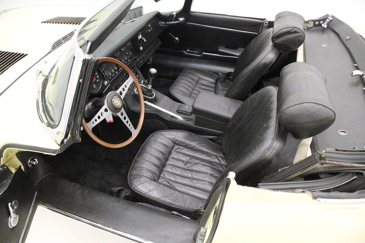 Jaguar motors nailed it when they penned this design which utilizes a long long bulbous bonnet, curvaceous fenders which wrap chrome wire knockoff wheels, and a curved to a pinched boot, framed by a chrome wrap around bumper. These bumpers are pre large rubber government mandated crash pads so they look great. The paint on this car is very good with only a few minor inclusions and dings. This is due to the 2007 restoration that took the rust free body down to bare metal, all panels repaired and some prior accident damage fixed on the passengers rear quarter panel. This has left us with a wonderfully consistent miles deep finish. The chrome and badging are all original as well as trim is all gleaming and nary any faults. Convertible top is very nicely preserved, and presents in a slightly faded black canvas with a lightly yellowed plastic window. A black tonneau cover wraps up the top nicely when it is in the down position and a rarely seen factory Pale Primrose Yellow hardtop can be installed for inclement weather driving. Chromed 15-inch wire wheels with knockoff hubs are seen on all 4 corners and these are wrapped in 205/70R15's in the front and 195/75R15 in the rear. No more Avons!!