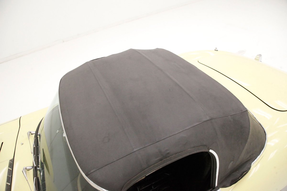Jaguar motors nailed it when they penned this design which utilizes a long long bulbous bonnet, curvaceous fenders which wrap chrome wire knockoff wheels, and a curved to a pinched boot, framed by a chrome wrap around bumper. These bumpers are pre large rubber government mandated crash pads so they look great. The paint on this car is very good with only a few minor inclusions and dings. This is due to the 2007 restoration that took the rust free body down to bare metal, all panels repaired and some prior accident damage fixed on the passengers rear quarter panel. This has left us with a wonderfully consistent miles deep finish. The chrome and badging are all original as well as trim is all gleaming and nary any faults. Convertible top is very nicely preserved, and presents in a slightly faded black canvas with a lightly yellowed plastic window. A black tonneau cover wraps up the top nicely when it is in the down position and a rarely seen factory Pale Primrose Yellow hardtop can be installed for inclement weather driving. Chromed 15-inch wire wheels with knockoff hubs are seen on all 4 corners and these are wrapped in 205/70R15's in the front and 195/75R15 in the rear. No more Avons!!