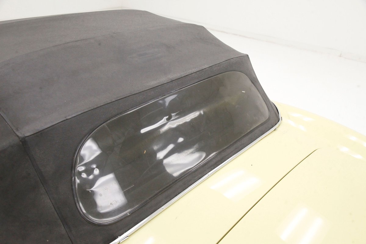 Jaguar motors nailed it when they penned this design which utilizes a long long bulbous bonnet, curvaceous fenders which wrap chrome wire knockoff wheels, and a curved to a pinched boot, framed by a chrome wrap around bumper. These bumpers are pre large rubber government mandated crash pads so they look great. The paint on this car is very good with only a few minor inclusions and dings. This is due to the 2007 restoration that took the rust free body down to bare metal, all panels repaired and some prior accident damage fixed on the passengers rear quarter panel. This has left us with a wonderfully consistent miles deep finish. The chrome and badging are all original as well as trim is all gleaming and nary any faults. Convertible top is very nicely preserved, and presents in a slightly faded black canvas with a lightly yellowed plastic window. A black tonneau cover wraps up the top nicely when it is in the down position and a rarely seen factory Pale Primrose Yellow hardtop can be installed for inclement weather driving. Chromed 15-inch wire wheels with knockoff hubs are seen on all 4 corners and these are wrapped in 205/70R15's in the front and 195/75R15 in the rear. No more Avons!!