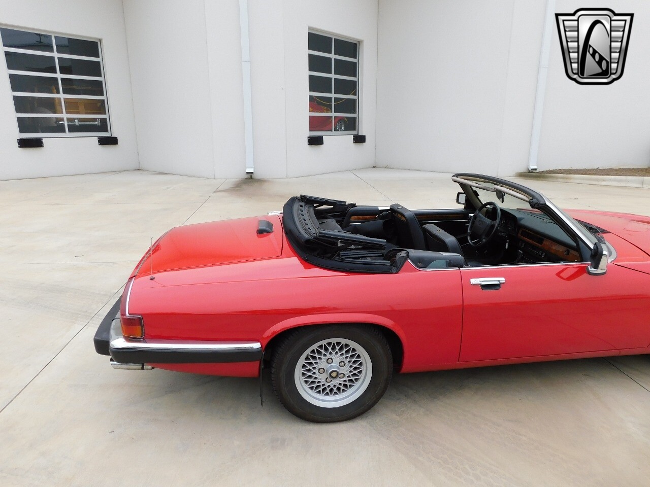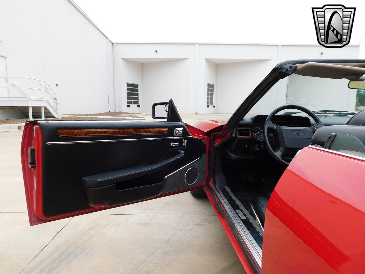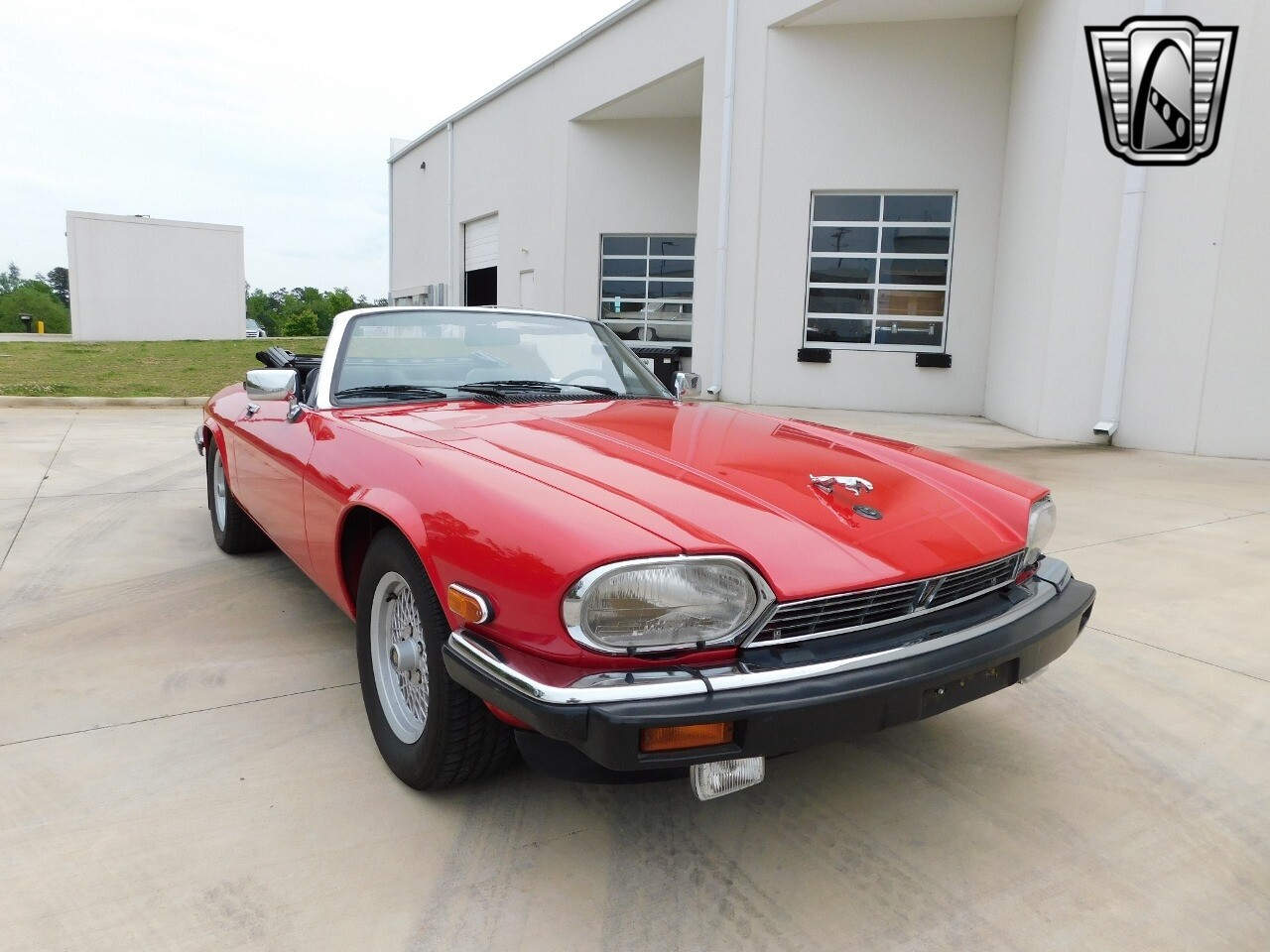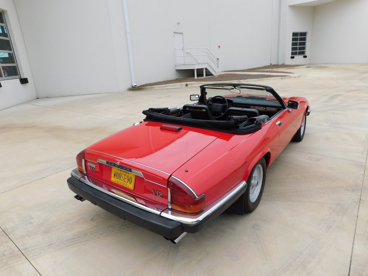 Introducing the 1990 Jaguar XJS V-12 Convertible, a classic beauty that combines timeless elegance with robust performance. This stunning vehicle is adorned in a striking red exterior, a color that totally complements its sleek design and hints at the power that lies beneath the hood.