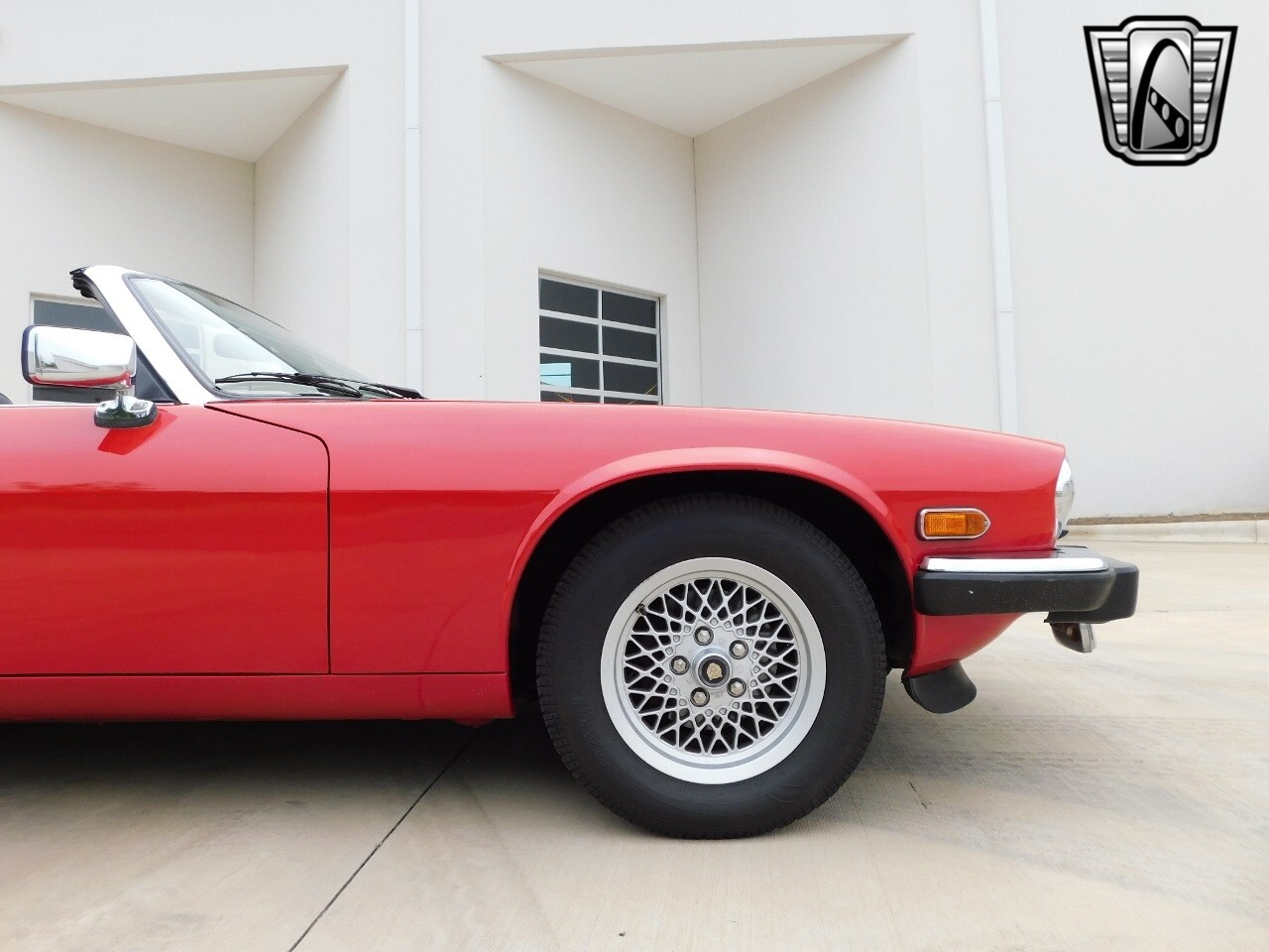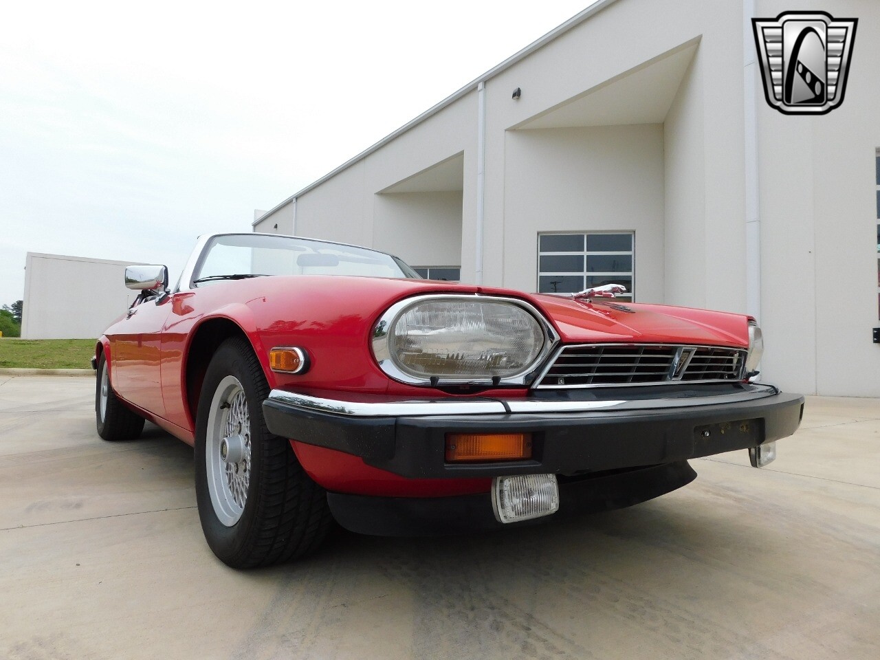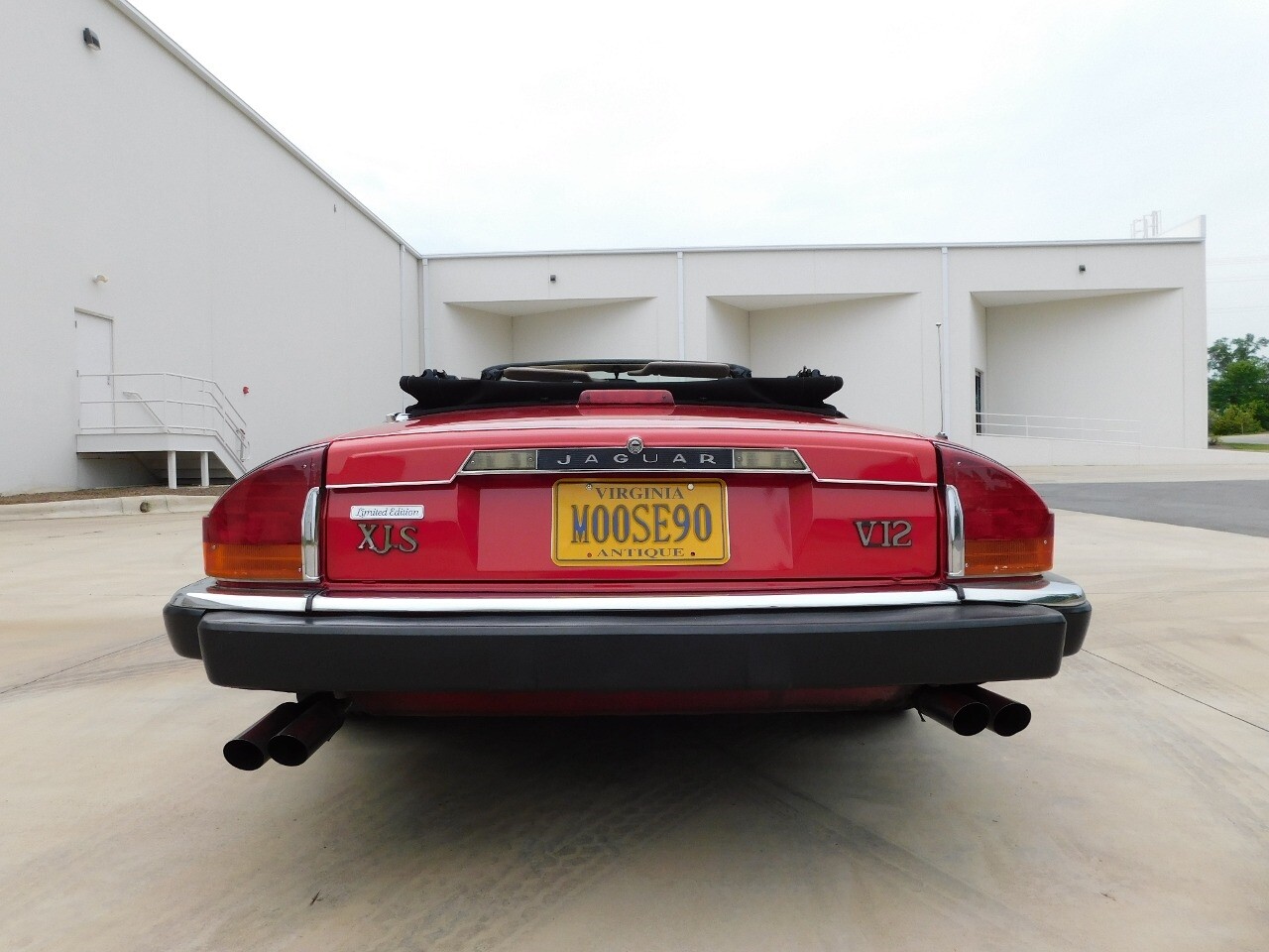 Introducing the 1990 Jaguar XJS V-12 Convertible, a classic beauty that combines timeless elegance with robust performance. This stunning vehicle is adorned in a striking red exterior, a color that totally complements its sleek design and hints at the power that lies beneath the hood.