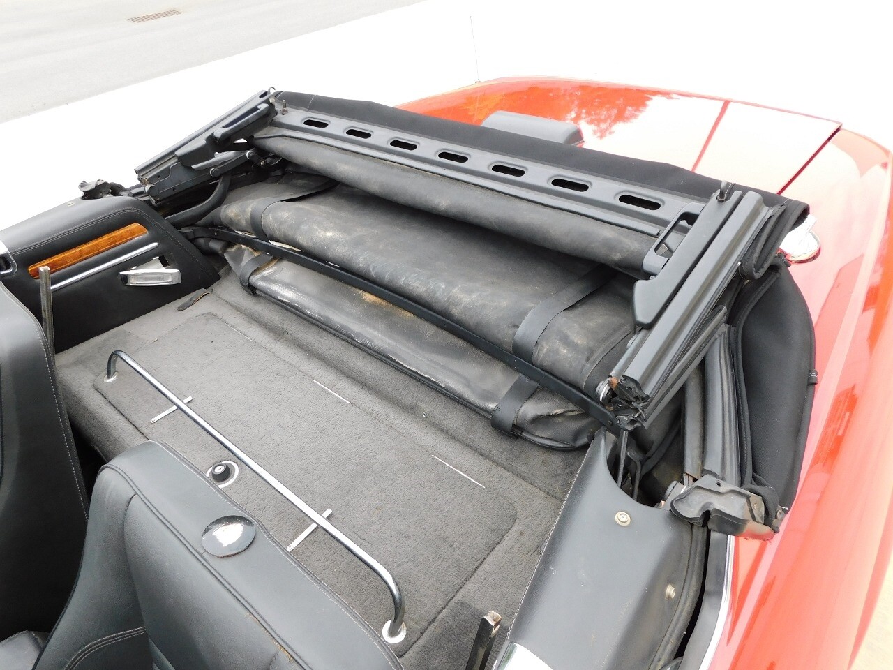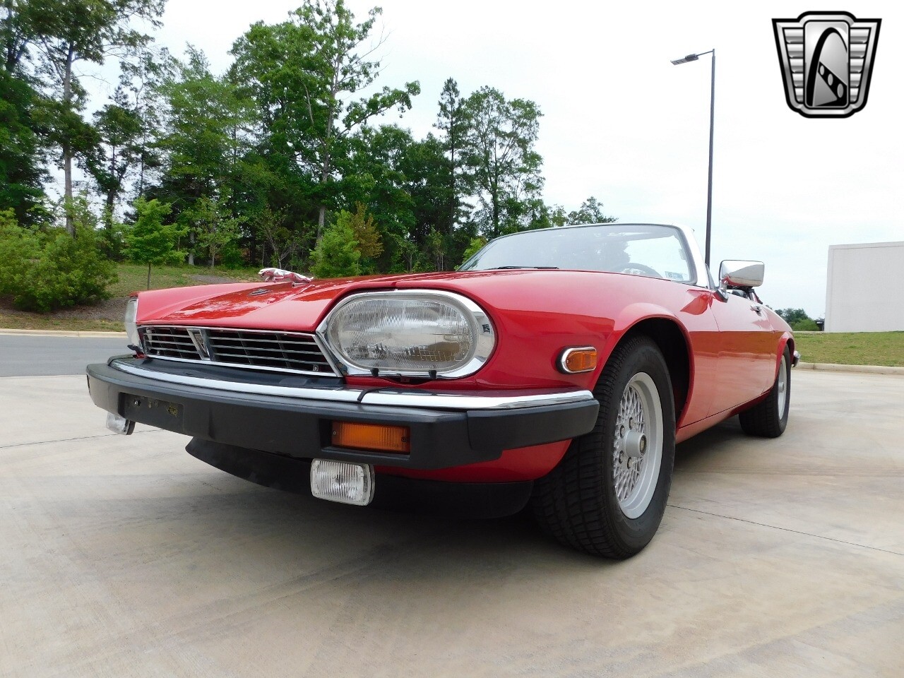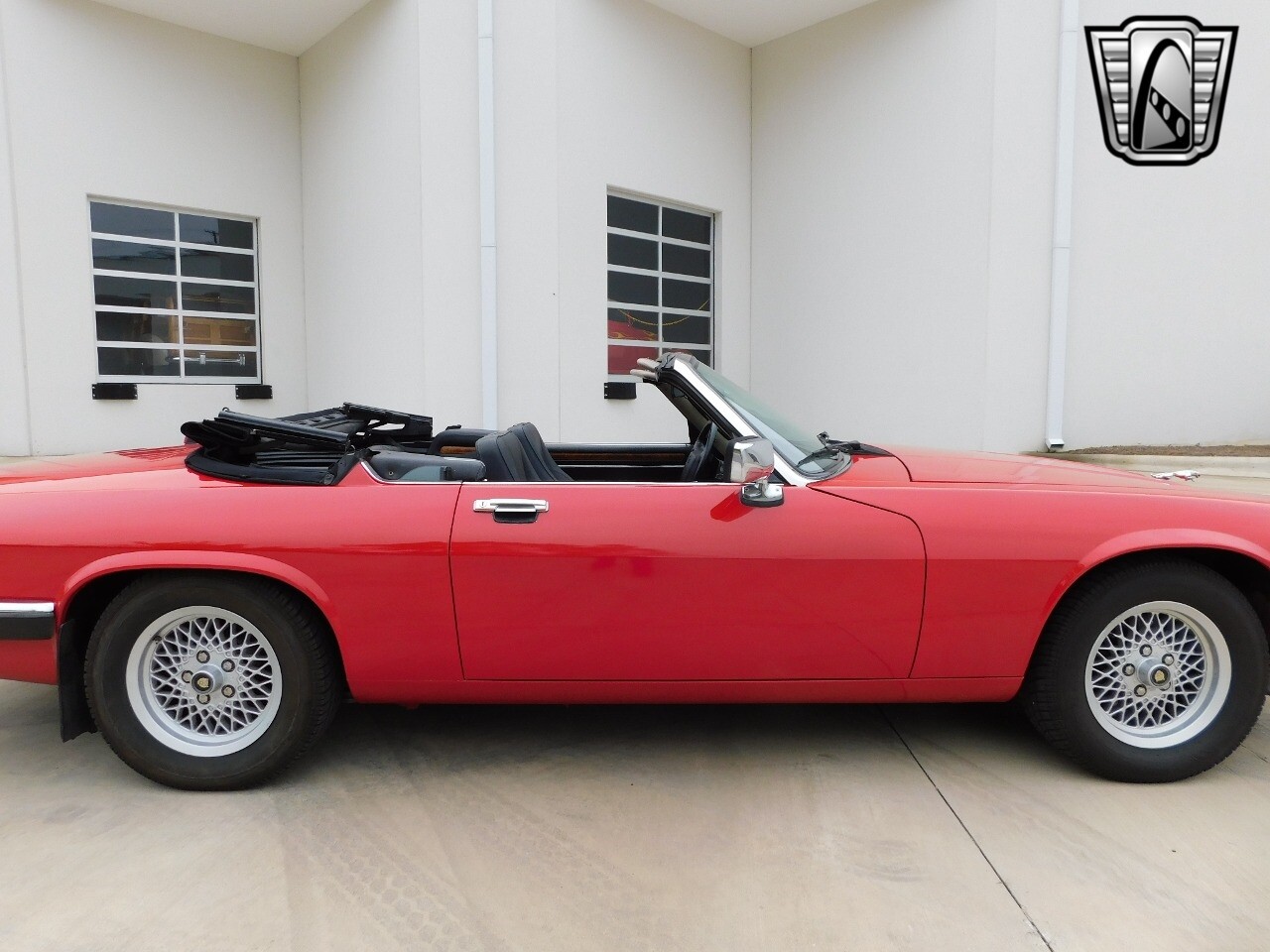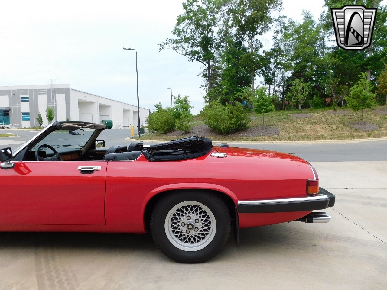 Introducing the 1990 Jaguar XJS V-12 Convertible, a classic beauty that combines timeless elegance with robust performance. This stunning vehicle is adorned in a striking red exterior, a color that totally complements its sleek design and hints at the power that lies beneath the hood.