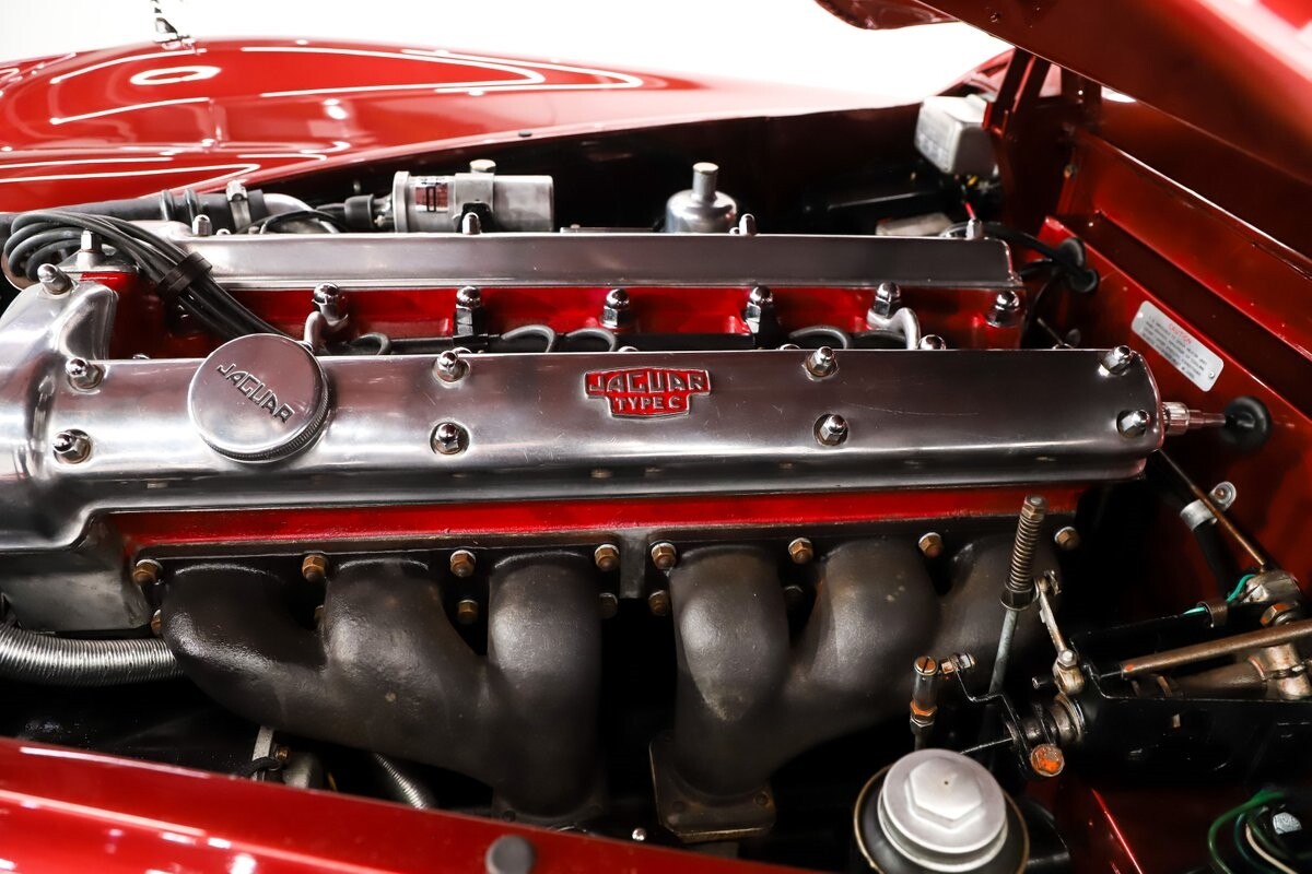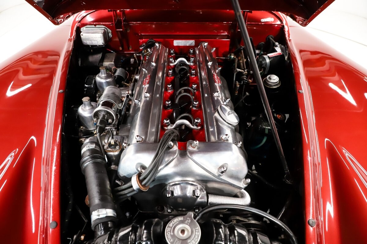 ENGINE COMPARTMENT: Under the hood you'll find the #'s matching performance Type C engine. It is a dual overhead cam straight six with the big valve cylinder head. Pushing the highest horsepower out of the XK model lineup at 210HP! This light little sports car gets up and goes. Overall, the engine bay is a work of art all by itself. Everything's been painted beautifully and shows like new.
