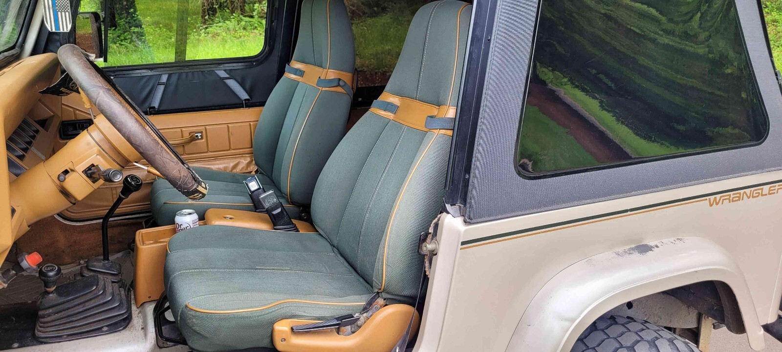 1995 Jeep Wrangler Sahara. 4.0 lnline 6 and 5 speed manual transmission. Runs and drives great. Only 133000 miles. Everything works. All stock except for bumpers, 2 inch lift and winch. Has a brand new Rampage soft top. Also have the factory framed soft top (Has a hole in the canvas). New battery. No leaks. Has a 9000 lb smittybuilt winch. 4WD works great. Has manual locking front differential. Paint and interior are in excellent condition. Comes with 2 Dickies seat covers for front seats. Absolutely zero rust, Clean title in hand.