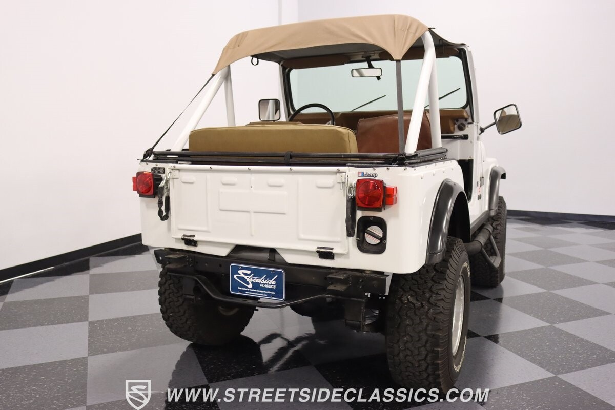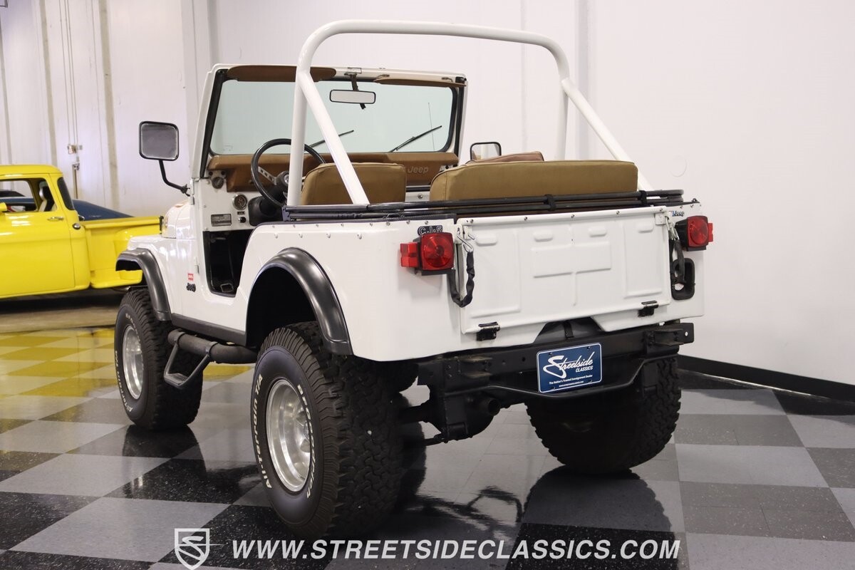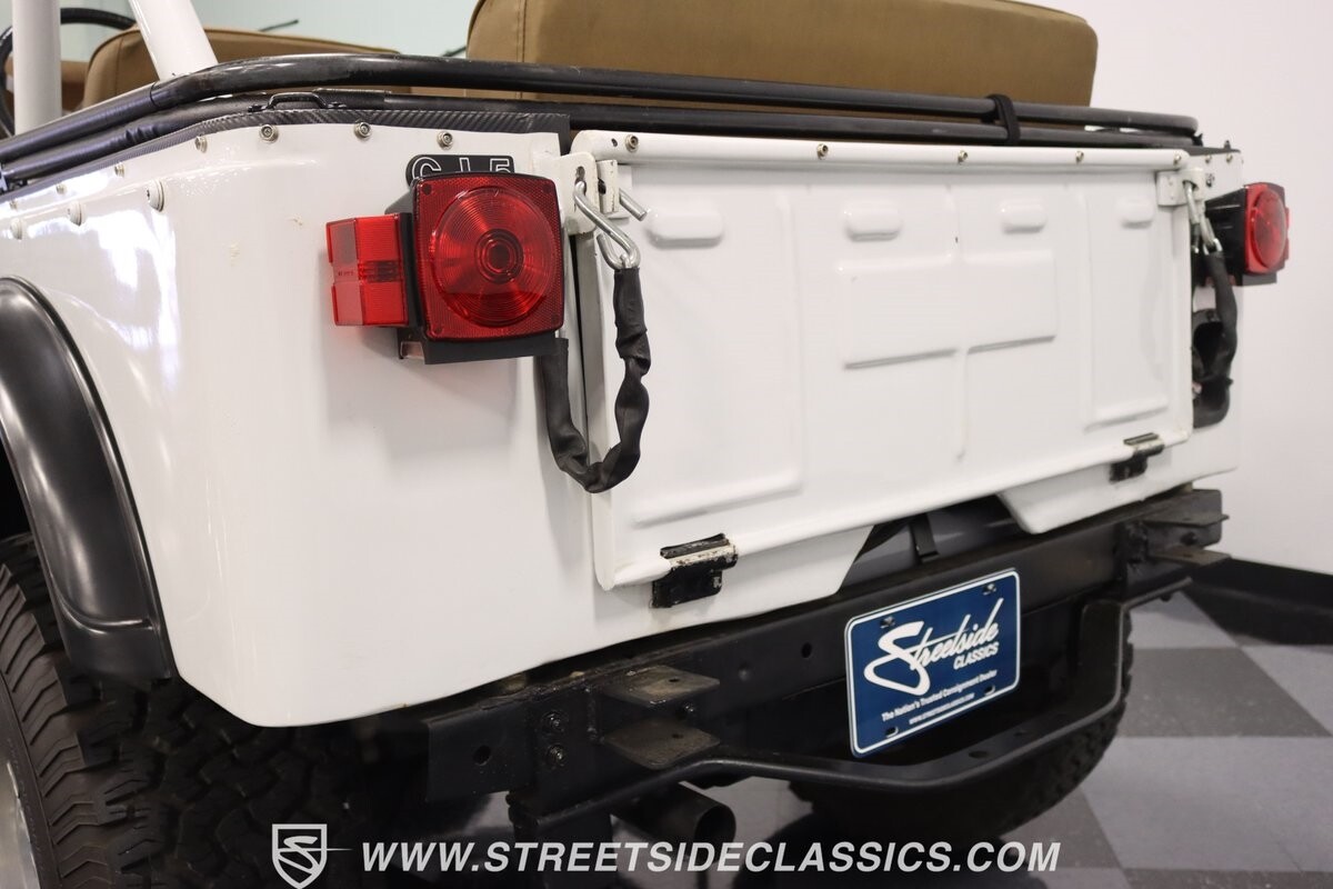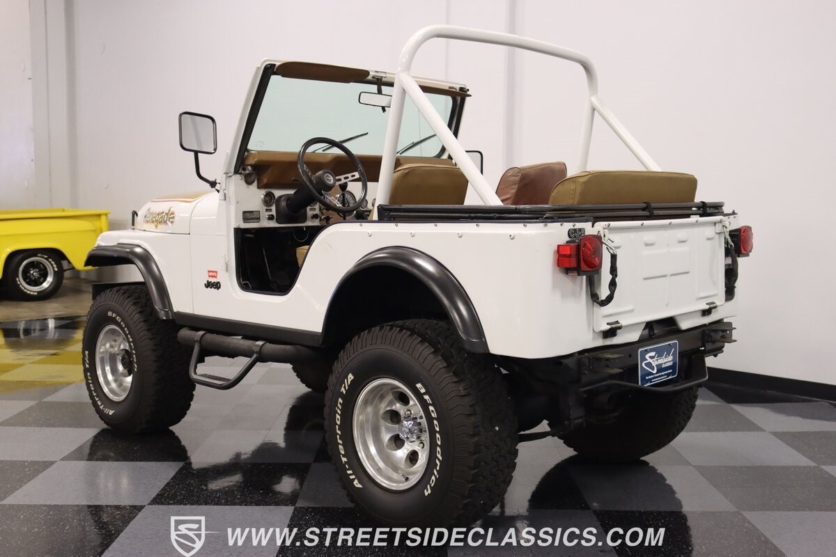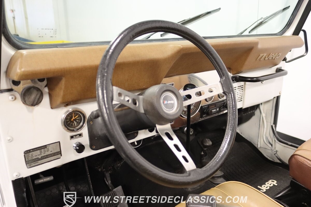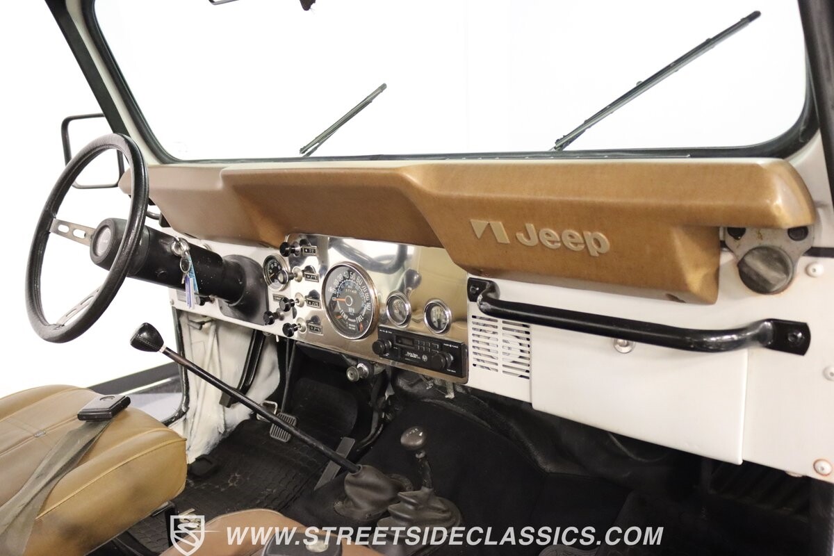 The 1978 Jeep CJ5 Renegade Levi Edition 4X4 is a celebration of the American outdoor spirit. With its 304 V8 engine, iconic Levi interior, rugged white exterior, mounted on 15" wheels and 33" BF Goodrich tires, it's poised to take you on adventures as boundless as the American landscape. Like a trusty pair of Levi's, this Jeep CJ5 seamlessly blends into any environment. Call today!
