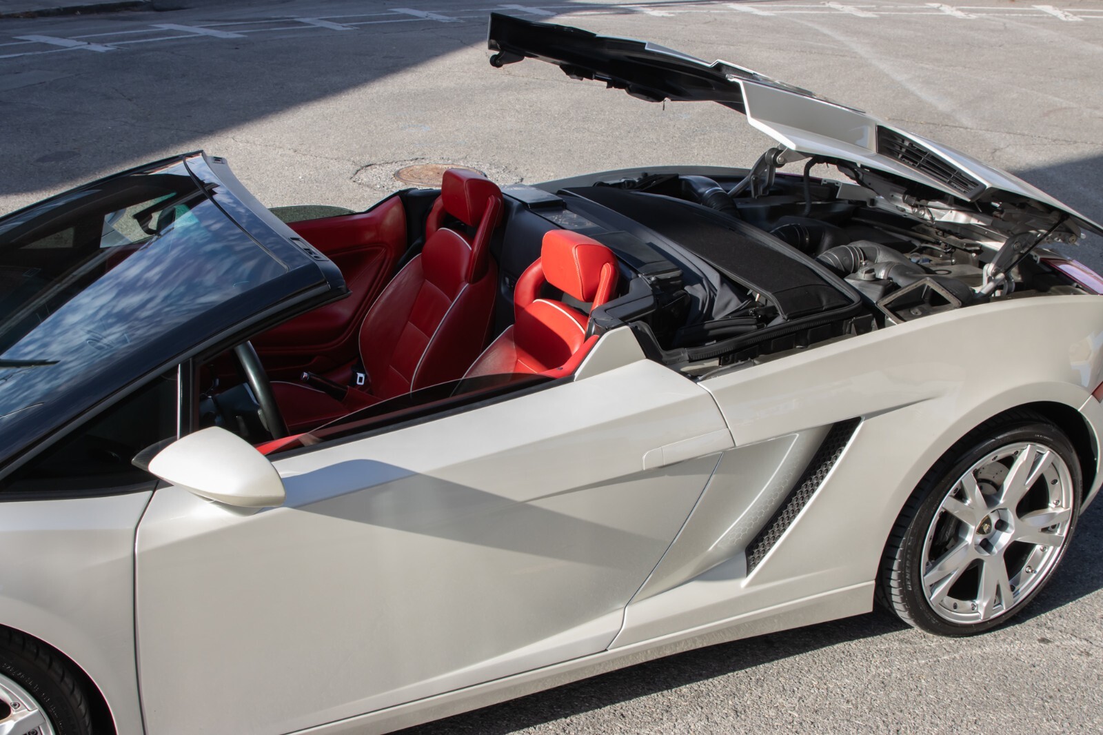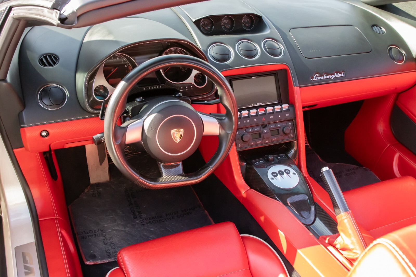2008 Lamborghini Gallardo Spyder with carbon fiber package, front lift, JL Audio aftermarket Stereo, Rare color combo!! All vehicle maintenance up to date, clutch was replaced in 2018 with around 28,000 miles on the car and still performs perfectly. I bought this car for my personal car on Christmas 2018 and have owned it since. I did title it to my dealership around a year or so ago but I have been the owner since 12/2018. I have videos of the top operation (works perfectly), cold starts, front lift operating (perfect as well) and full walk around with close ups of wheels etc. (wheels have no curb rash or flaws), and additional pictures upon request. Flaws on the car are one blown speaker in passenger door, tire pressure sensor that's gonna need replaced (comes and goes), minor accident reported in or around 2017 (no structural or other damage). Has been a great car, looking to upgrade to a Huracan is why I'm selling the car.