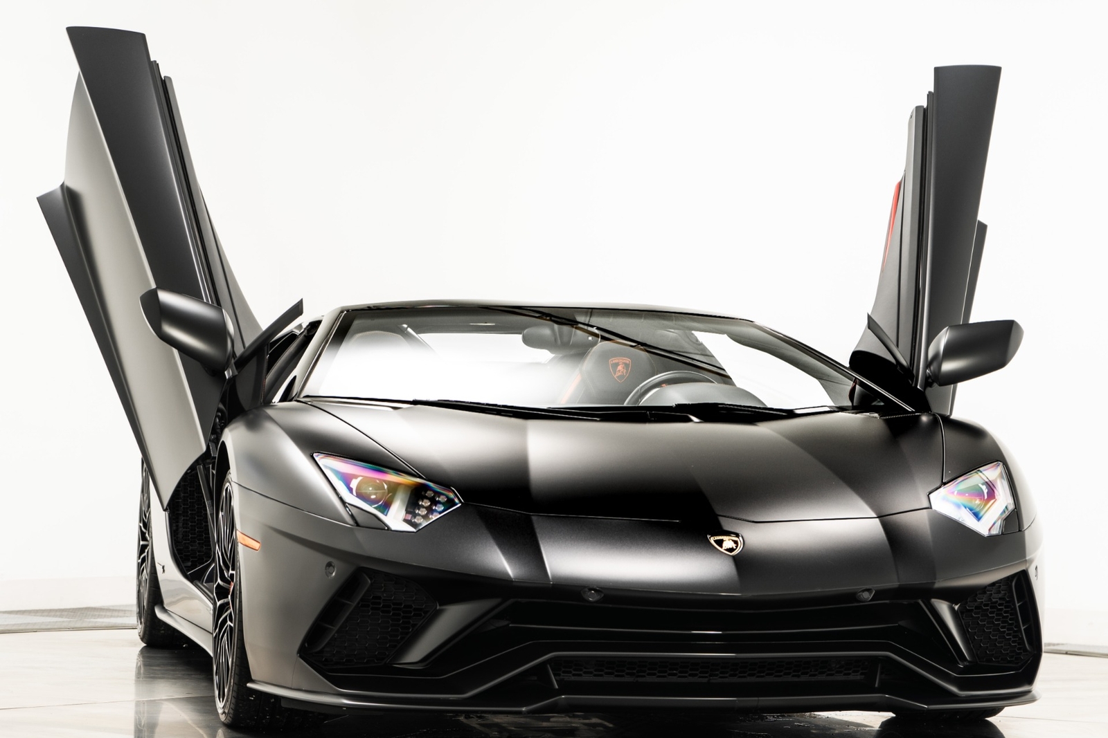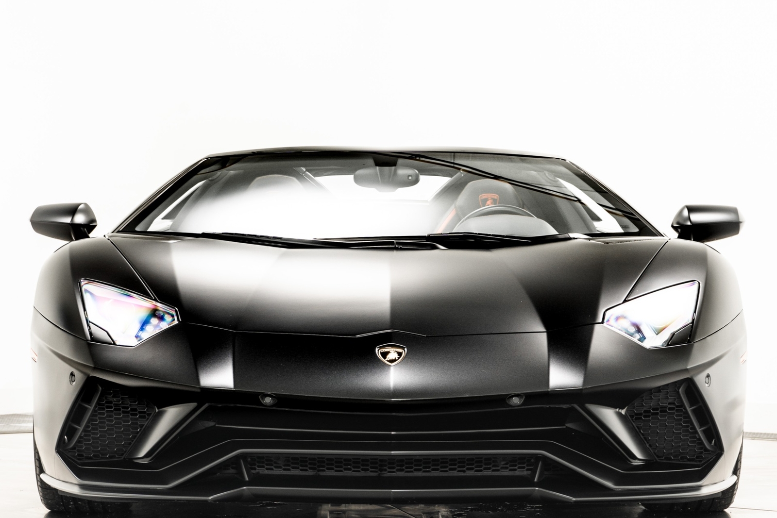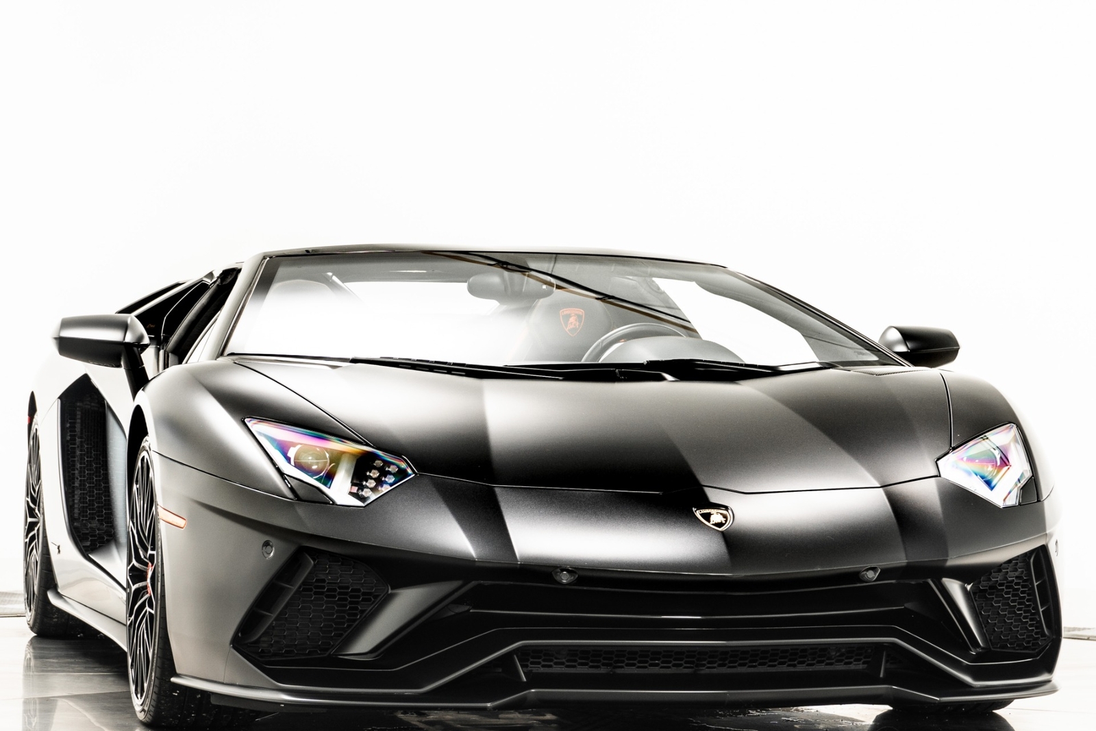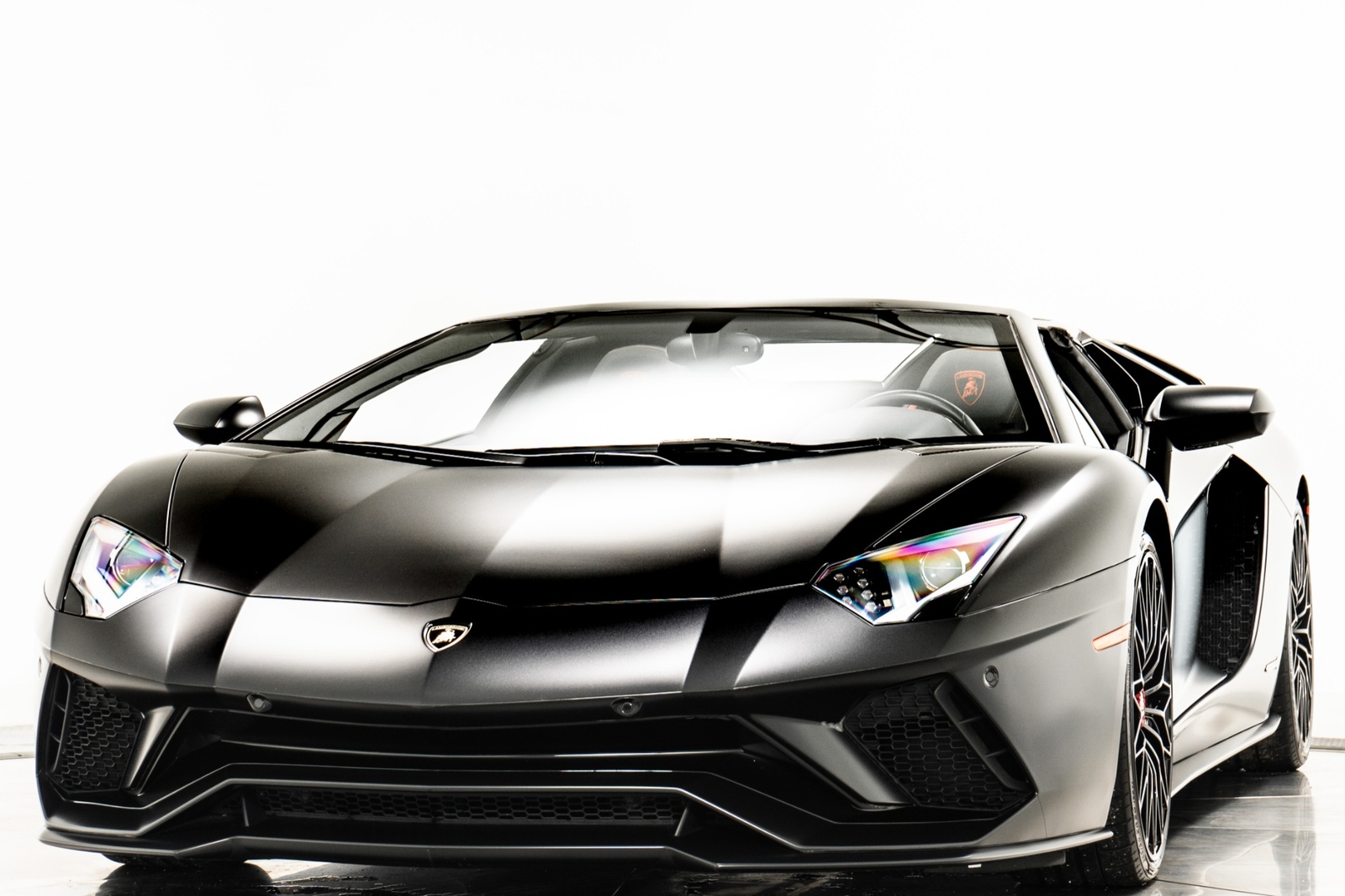 We have just added to our extensive exotic car inventory a beautiful 2018 Lamborghini Aventador S in gloss Nero Pegaso with a matte clear wrap over Nero Ade interior with only 3,421 miles. This Aventador S is loaded with a 6.5 Liter V12 with 730 horsepower, 7-speed ISR transmission, gloss black 20 inch Dianthus centerlock wheels, carbon ceramic brakes with red calipers, MR suspension, transparent engine bonnet, engine X frame in carbon fiber, T shaped engine trim in carbon fiber, hardtops in gloss black, mirrors in gloss black, pillars and windshield frame in gloss black, metallic paint color, visibility and light package, Lamborghini branding, full carbon fiber interior, gloss carbon interior trim, travel package, Sportivo interior with Rosso Alala trim, Lamborghini Sensonum audio, multifunction steering wheel, full power and heated seats, contrast stitching in Rosso Alala, style package, interior trim in leather, garage door opener, car cover and much more.