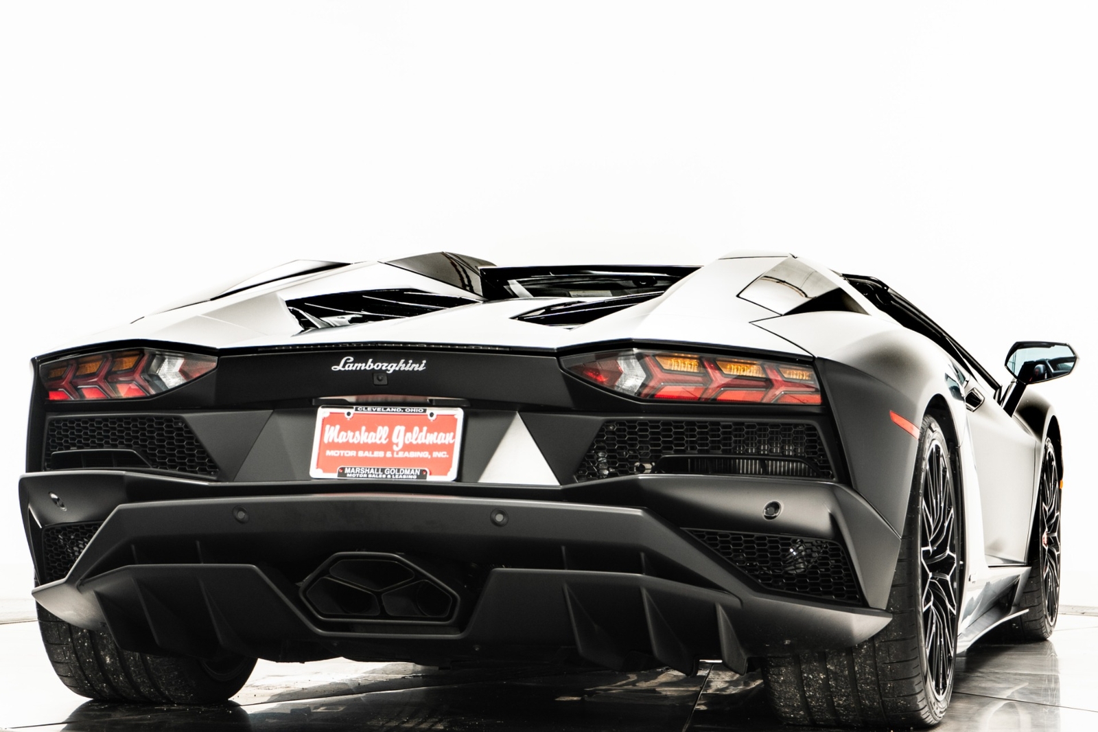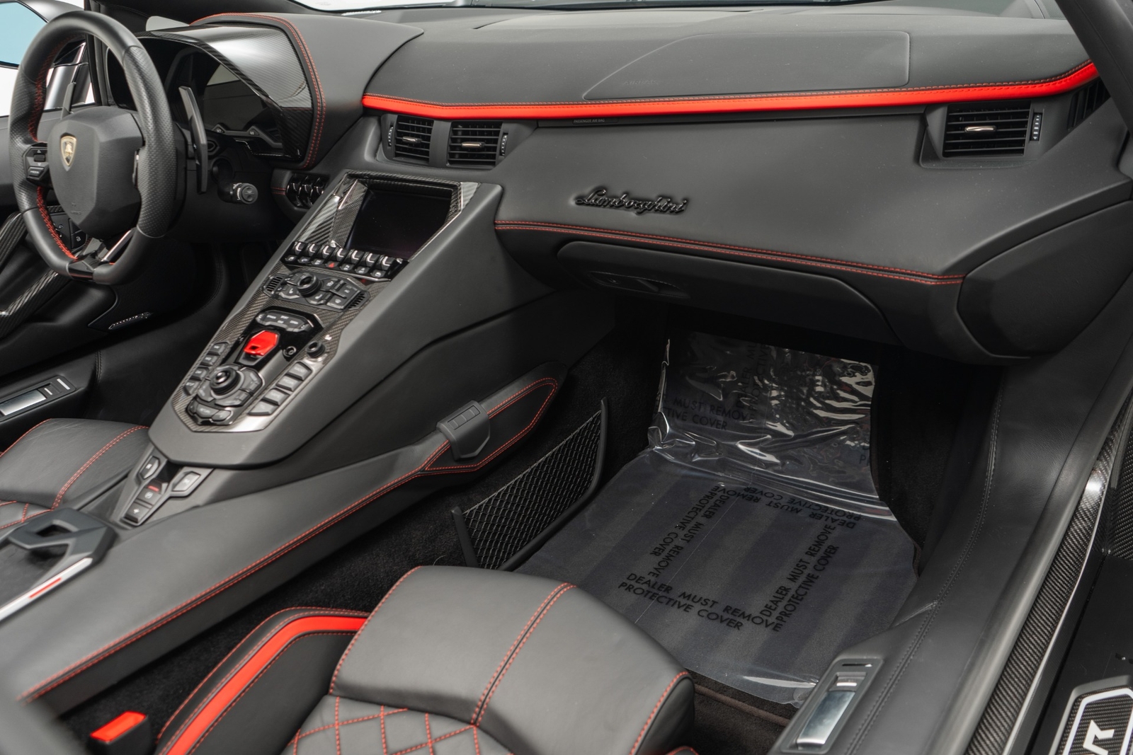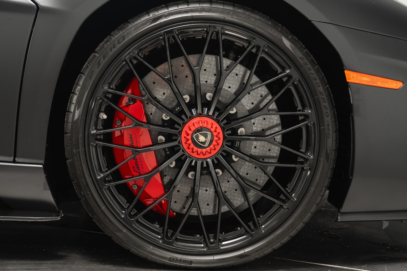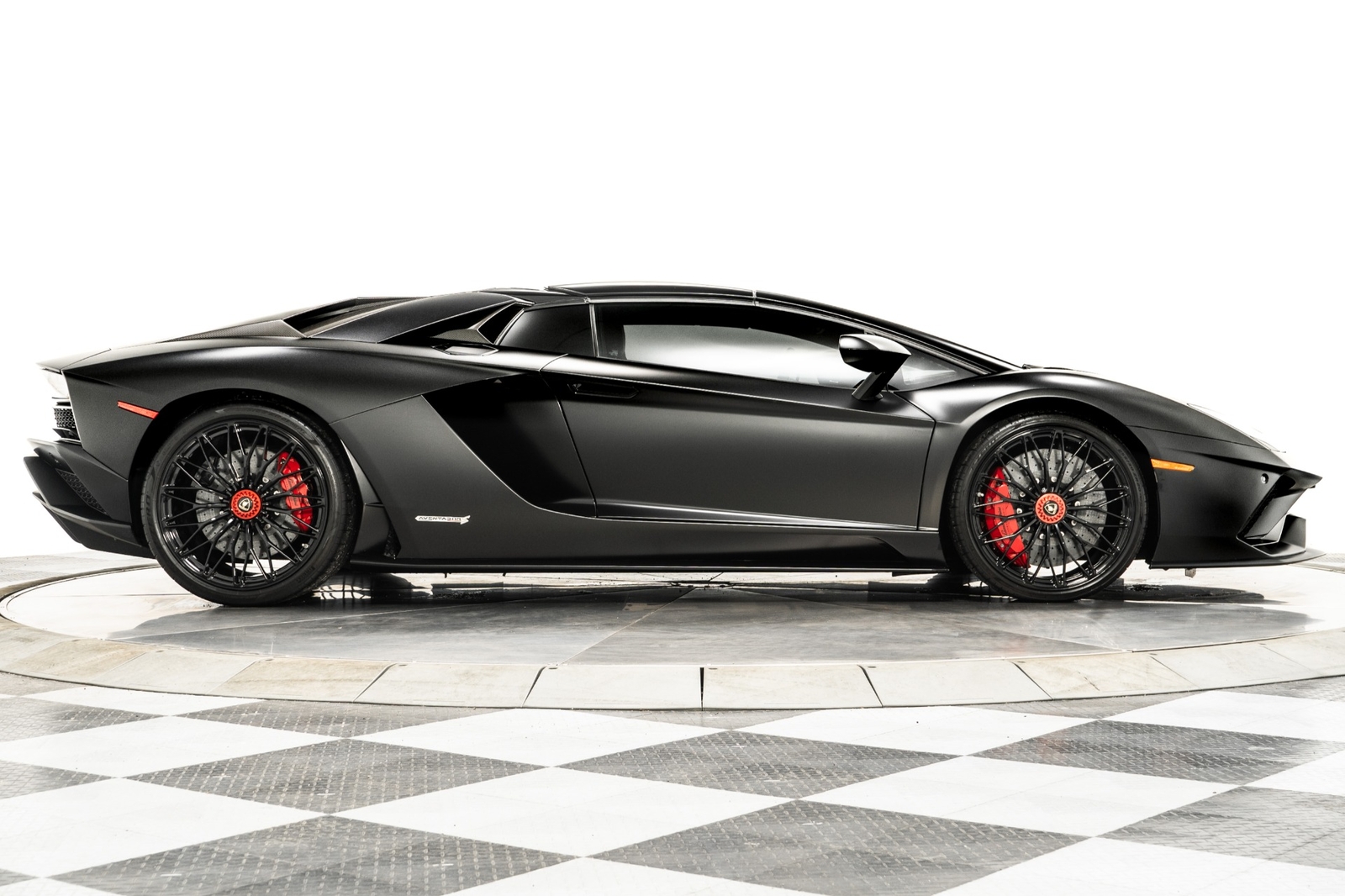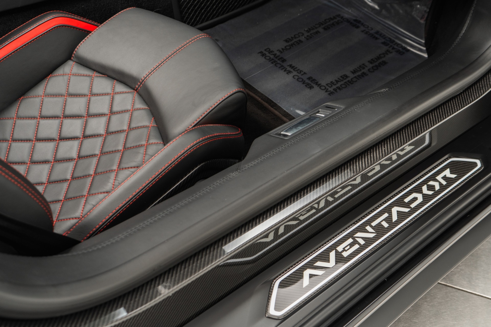 We have just added to our extensive exotic car inventory a beautiful 2018 Lamborghini Aventador S in gloss Nero Pegaso with a matte clear wrap over Nero Ade interior with only 3,421 miles. This Aventador S is loaded with a 6.5 Liter V12 with 730 horsepower, 7-speed ISR transmission, gloss black 20 inch Dianthus centerlock wheels, carbon ceramic brakes with red calipers, MR suspension, transparent engine bonnet, engine X frame in carbon fiber, T shaped engine trim in carbon fiber, hardtops in gloss black, mirrors in gloss black, pillars and windshield frame in gloss black, metallic paint color, visibility and light package, Lamborghini branding, full carbon fiber interior, gloss carbon interior trim, travel package, Sportivo interior with Rosso Alala trim, Lamborghini Sensonum audio, multifunction steering wheel, full power and heated seats, contrast stitching in Rosso Alala, style package, interior trim in leather, garage door opener, car cover and much more.