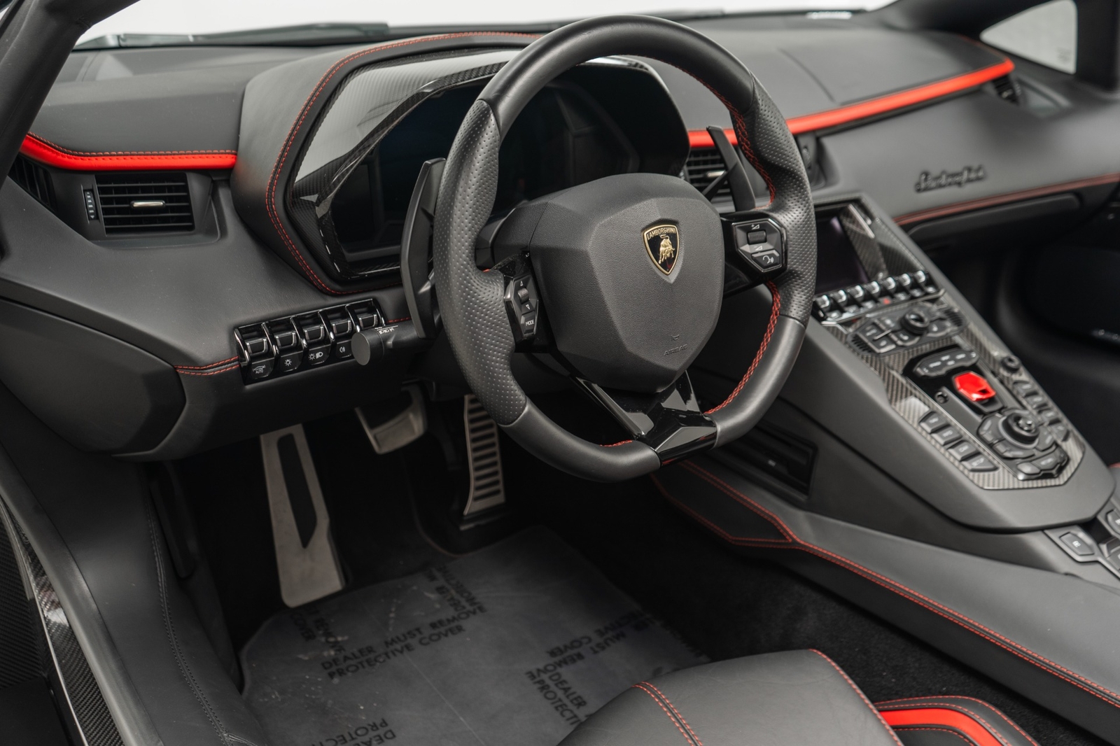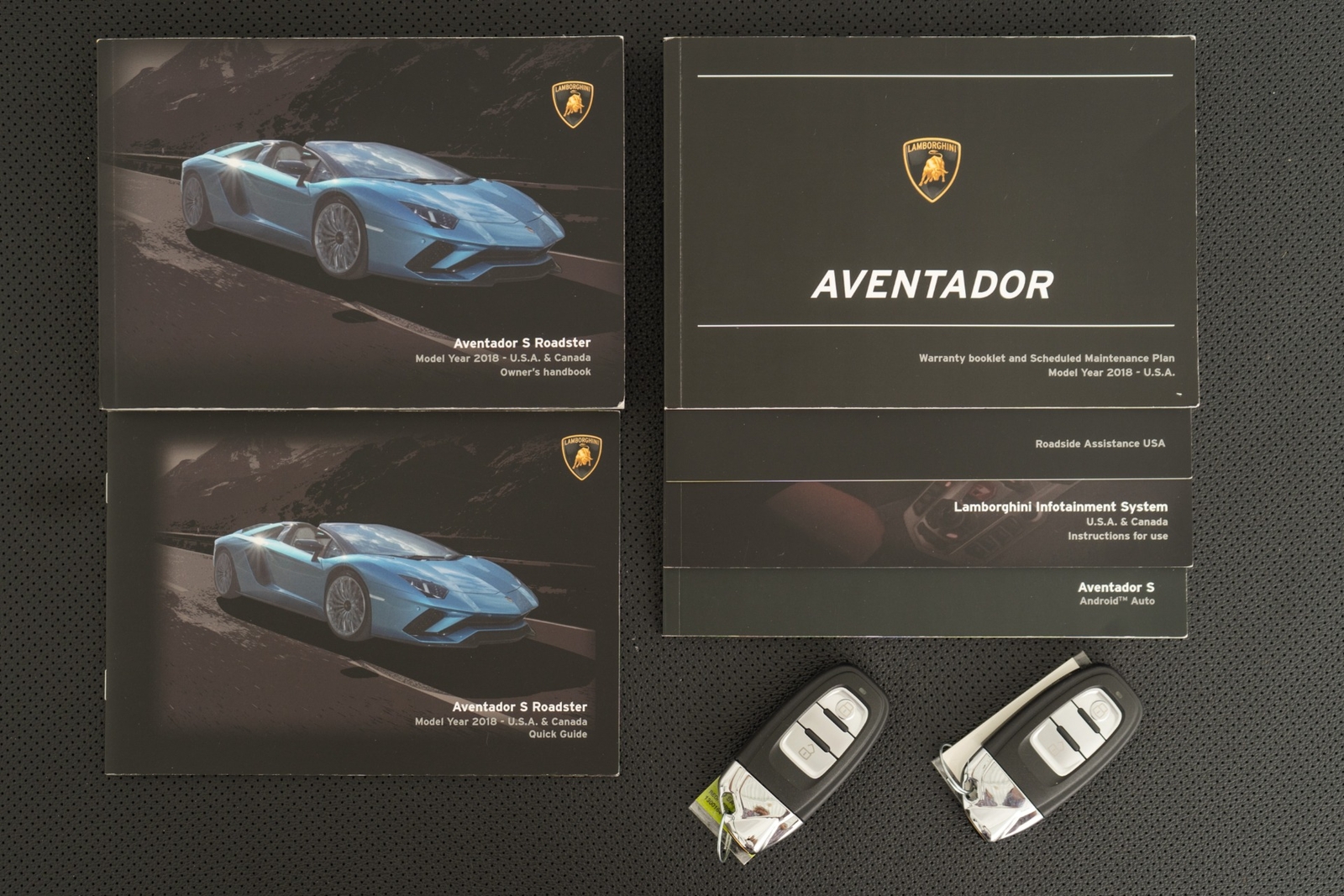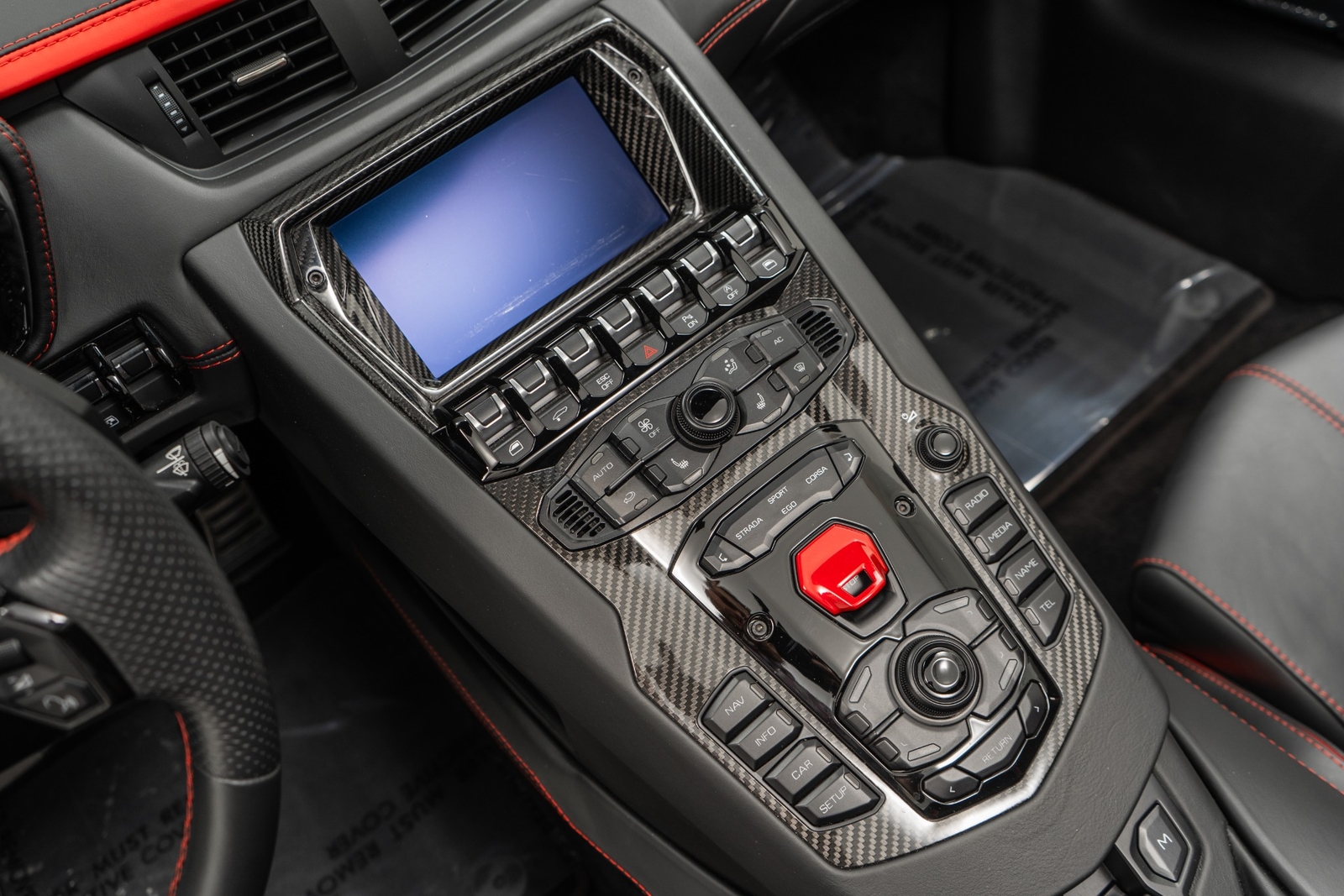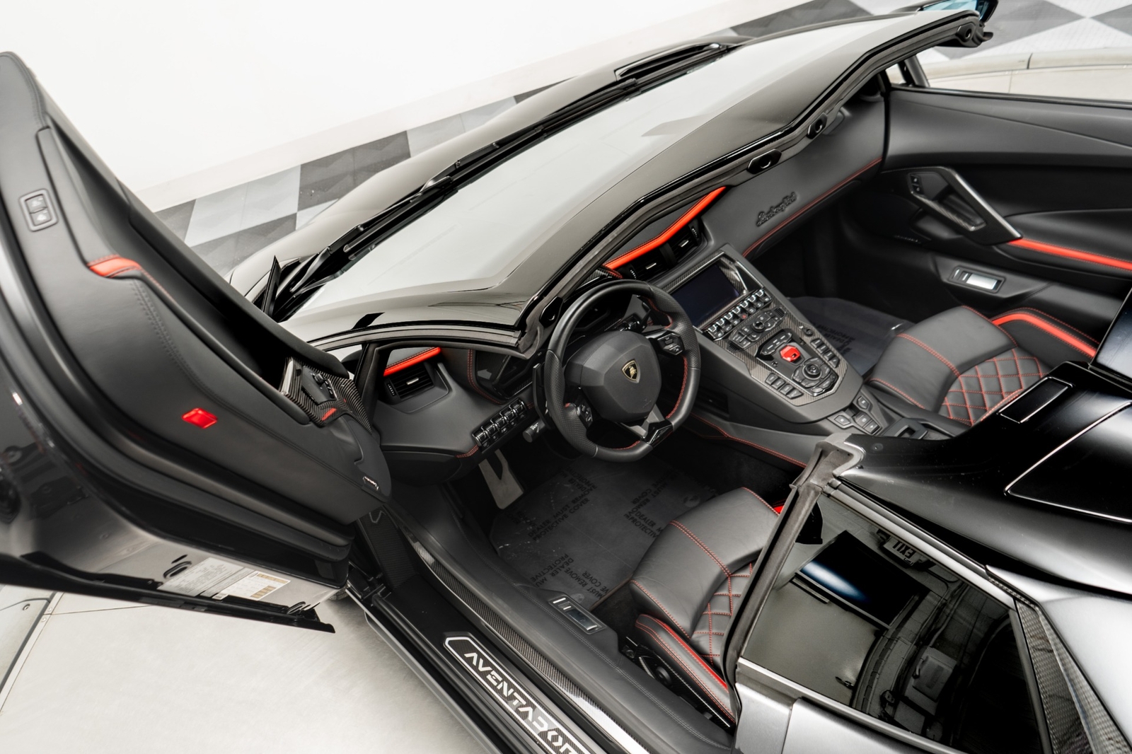 We have just added to our extensive exotic car inventory a beautiful 2018 Lamborghini Aventador S in gloss Nero Pegaso with a matte clear wrap over Nero Ade interior with only 3,421 miles. This Aventador S is loaded with a 6.5 Liter V12 with 730 horsepower, 7-speed ISR transmission, gloss black 20 inch Dianthus centerlock wheels, carbon ceramic brakes with red calipers, MR suspension, transparent engine bonnet, engine X frame in carbon fiber, T shaped engine trim in carbon fiber, hardtops in gloss black, mirrors in gloss black, pillars and windshield frame in gloss black, metallic paint color, visibility and light package, Lamborghini branding, full carbon fiber interior, gloss carbon interior trim, travel package, Sportivo interior with Rosso Alala trim, Lamborghini Sensonum audio, multifunction steering wheel, full power and heated seats, contrast stitching in Rosso Alala, style package, interior trim in leather, garage door opener, car cover and much more.