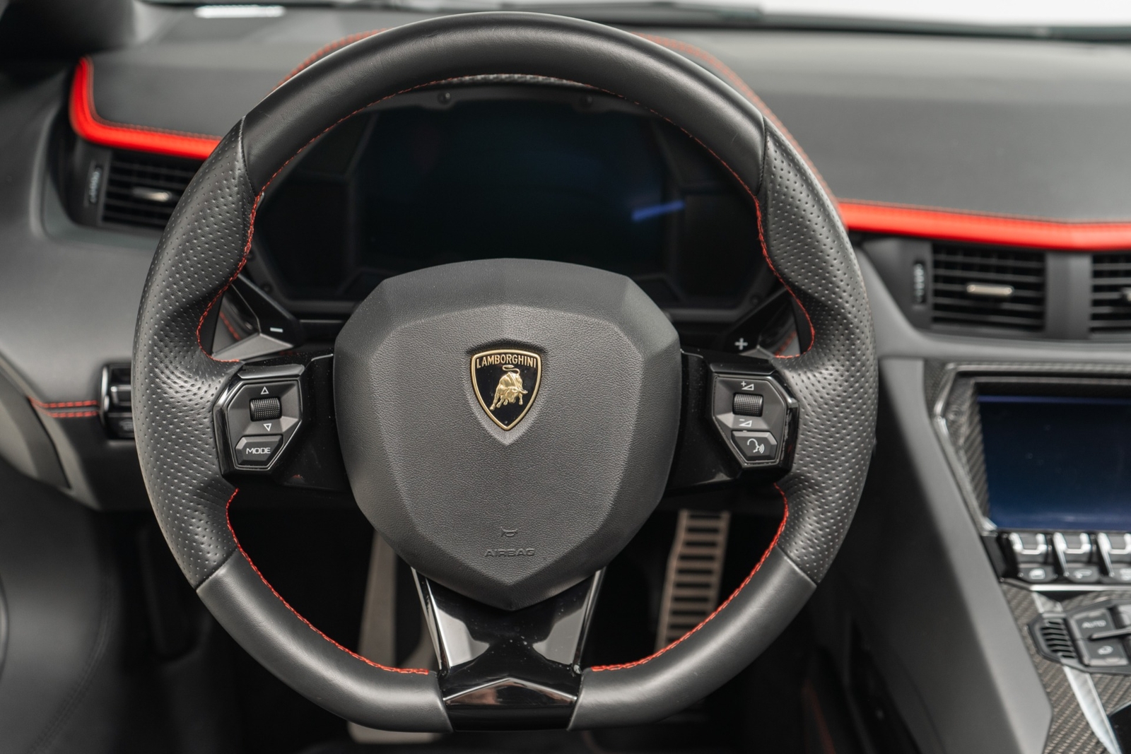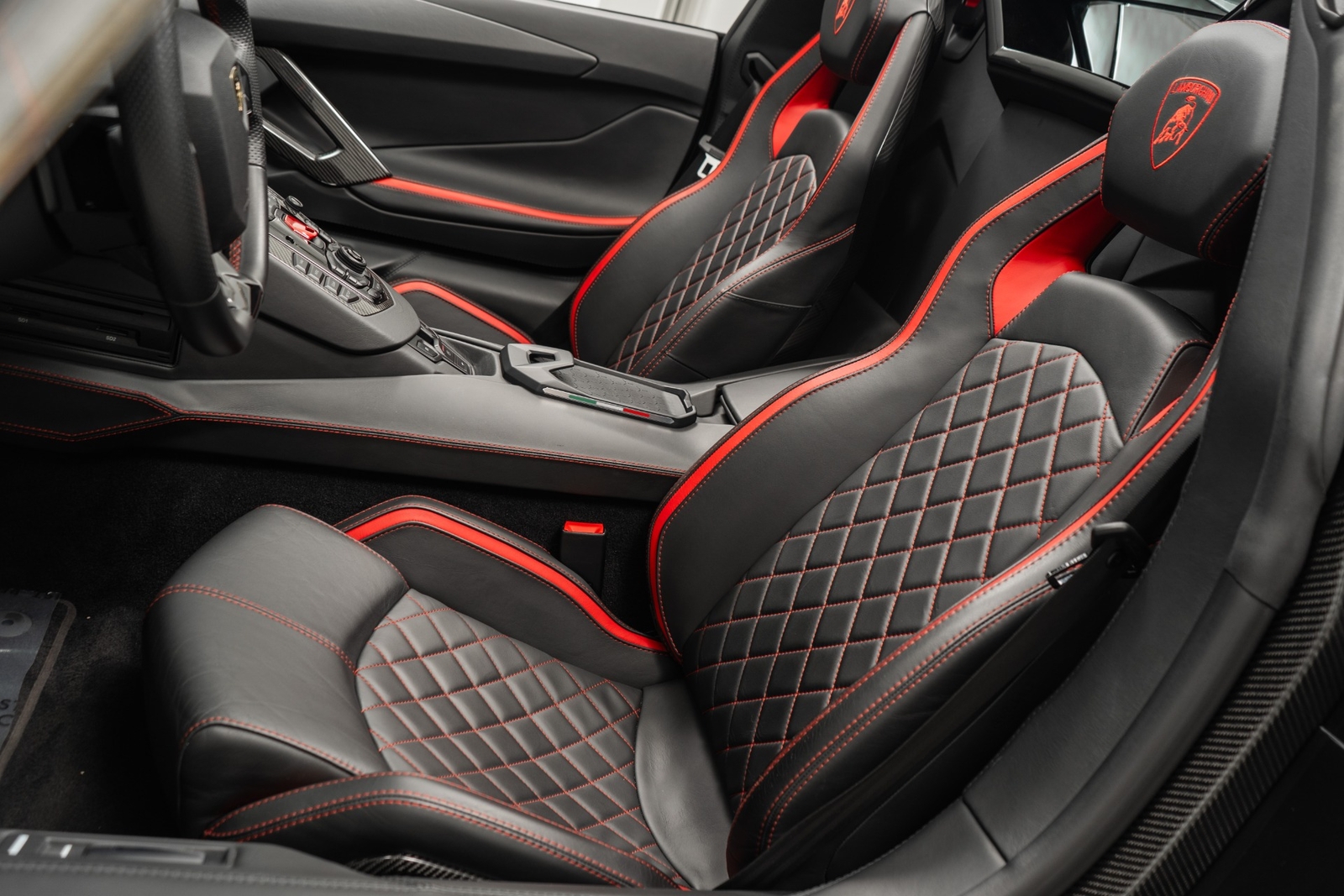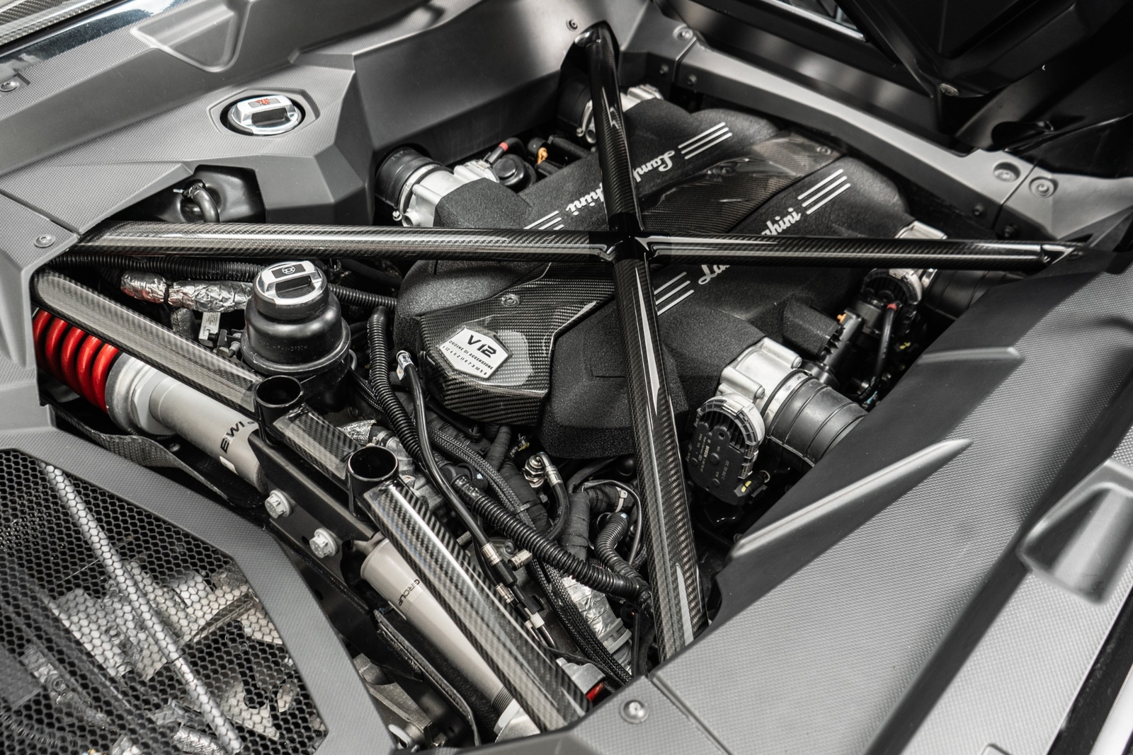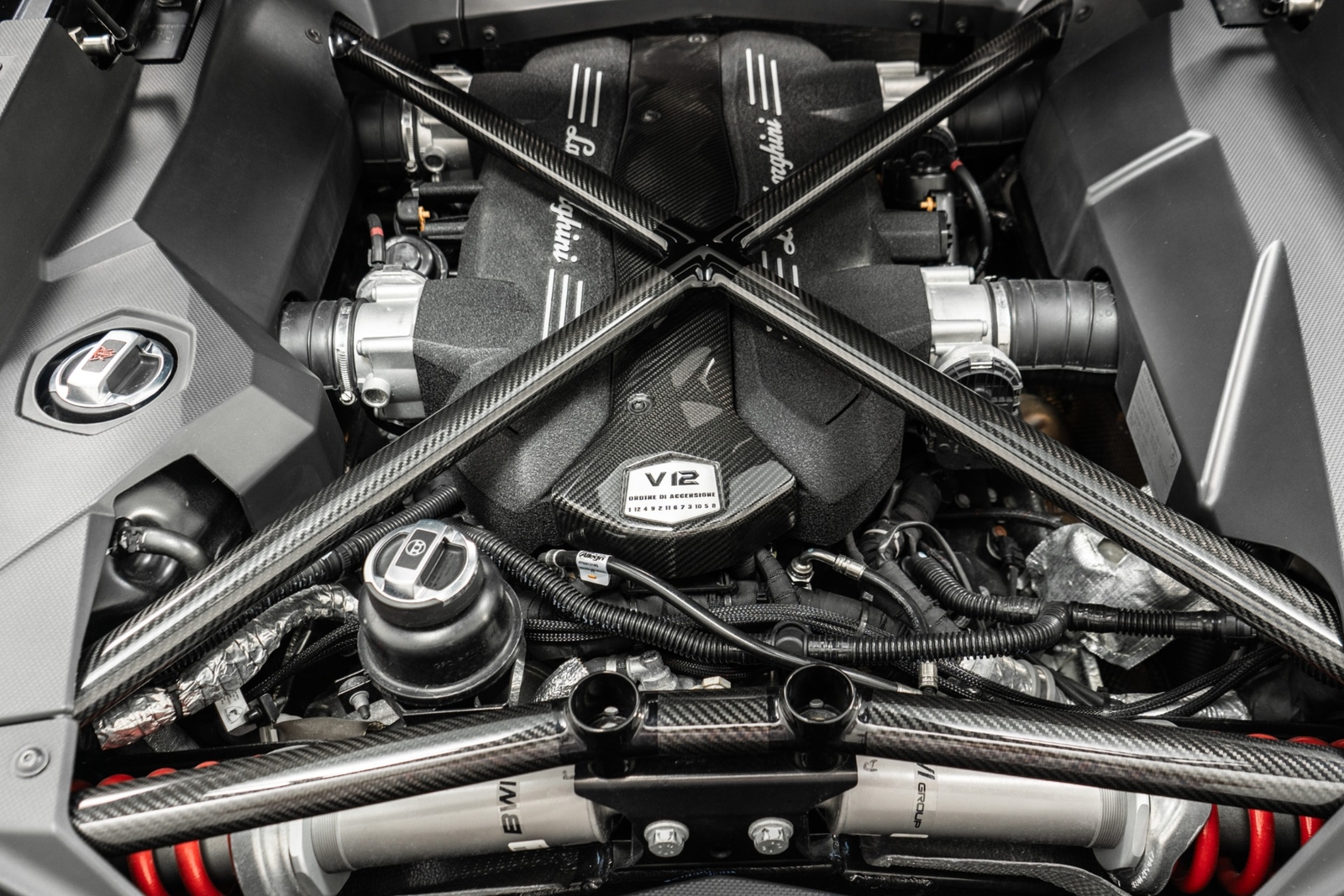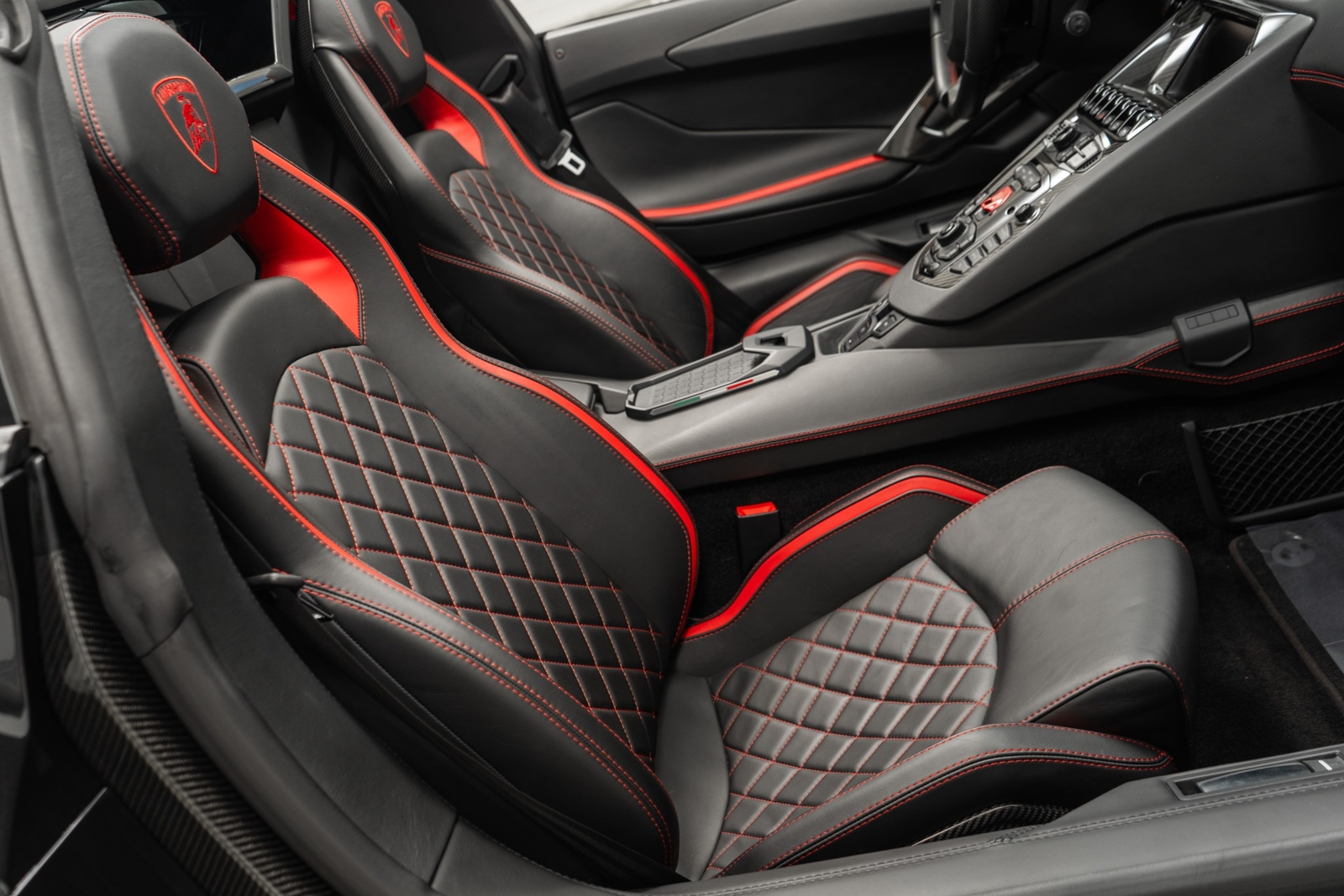 We have just added to our extensive exotic car inventory a beautiful 2018 Lamborghini Aventador S in gloss Nero Pegaso with a matte clear wrap over Nero Ade interior with only 3,421 miles. This Aventador S is loaded with a 6.5 Liter V12 with 730 horsepower, 7-speed ISR transmission, gloss black 20 inch Dianthus centerlock wheels, carbon ceramic brakes with red calipers, MR suspension, transparent engine bonnet, engine X frame in carbon fiber, T shaped engine trim in carbon fiber, hardtops in gloss black, mirrors in gloss black, pillars and windshield frame in gloss black, metallic paint color, visibility and light package, Lamborghini branding, full carbon fiber interior, gloss carbon interior trim, travel package, Sportivo interior with Rosso Alala trim, Lamborghini Sensonum audio, multifunction steering wheel, full power and heated seats, contrast stitching in Rosso Alala, style package, interior trim in leather, garage door opener, car cover and much more.
