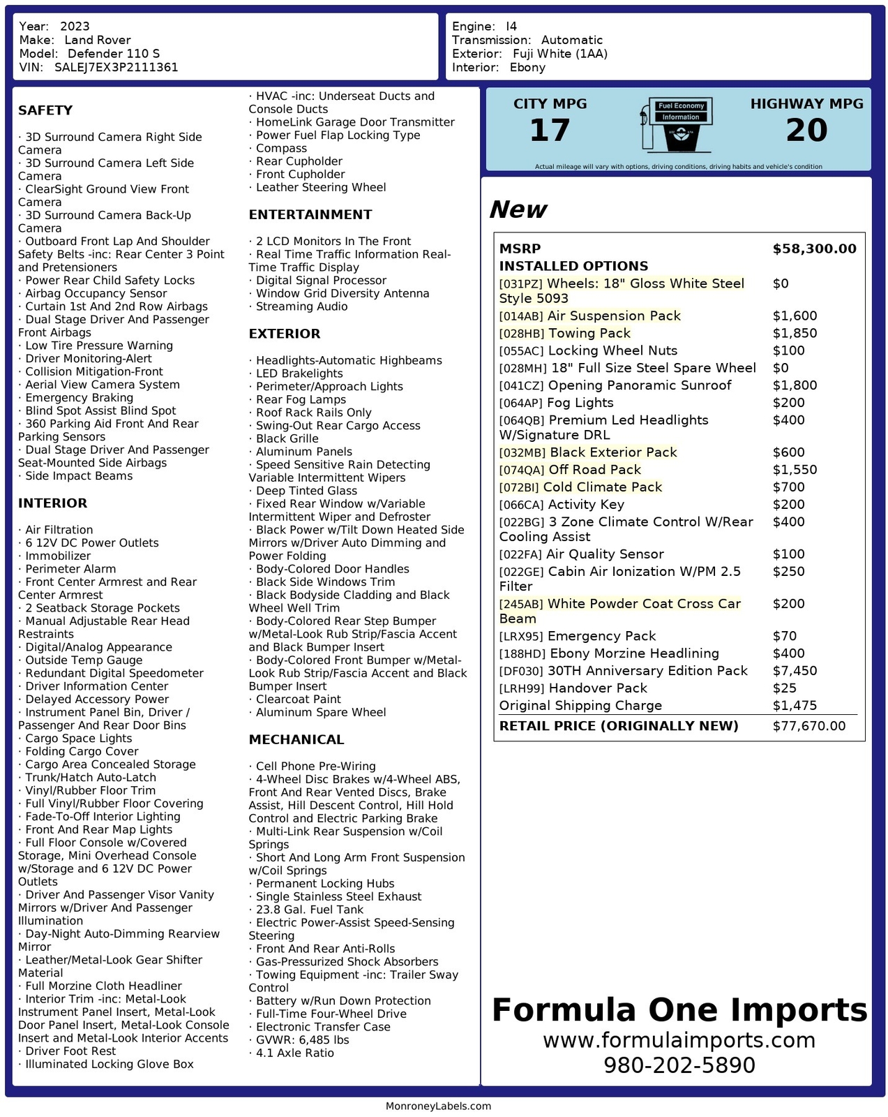2023 Land Rover Defender 110 S COLD CLIMATE PKG / OFFROAD PKG / AIR SUSP / BLACK