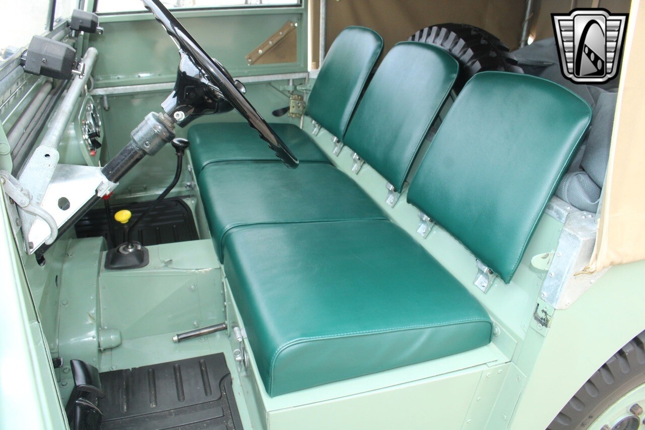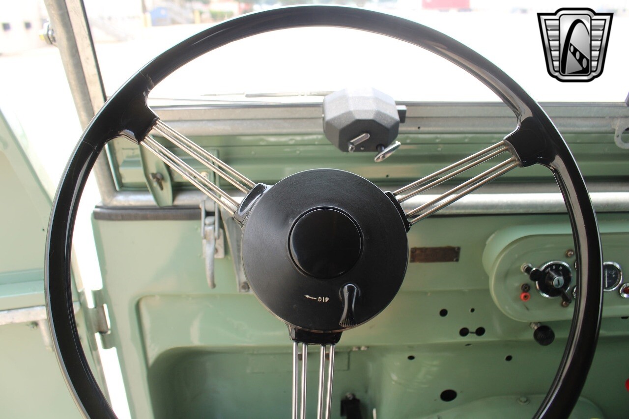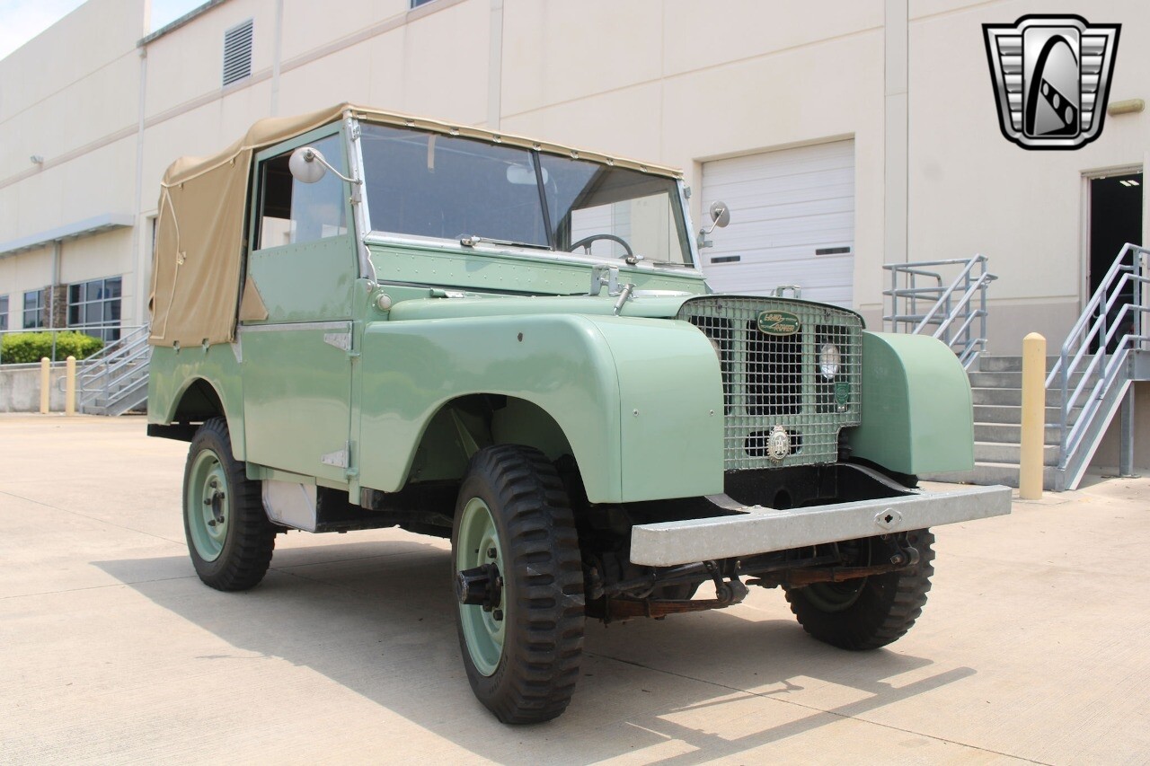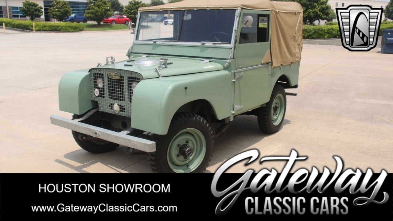 Gateway Classic Cars Houston showroom is excited to offer this rare 1950 Land Rover Series I for sale. This restored light green utility vehicle comes with a British Motor Industry Heritage Trust certificate, indicating it was ordered as a left-hand drive unit and exported to Goodwin Cocozza & Company in Brazil (dealer). Its body and drivetrain were recently restored, with the body's aluminum panels still intact, and refinished to its original light green color. Under the hood, you'll find a 1.6L petrol engine, which is backed by a 4-speed manual transmission (only 3rd and 4th are syncromesh). Inside, the green vinyl seating is in quite good shape, and the Smiths gauges include an ammeter, fuel gauge, and km/h speedometer. The canvas top appears to be new, but even if it isn't, it's also in great shape. This sweet Series I rides on original steel wheels, which are outfitted with 6.00-16 Firestone "Ground Grip" Military tube-type tires. These early Series I Land Rovers, especially in this condition, are not easy to find. [ omitted ].