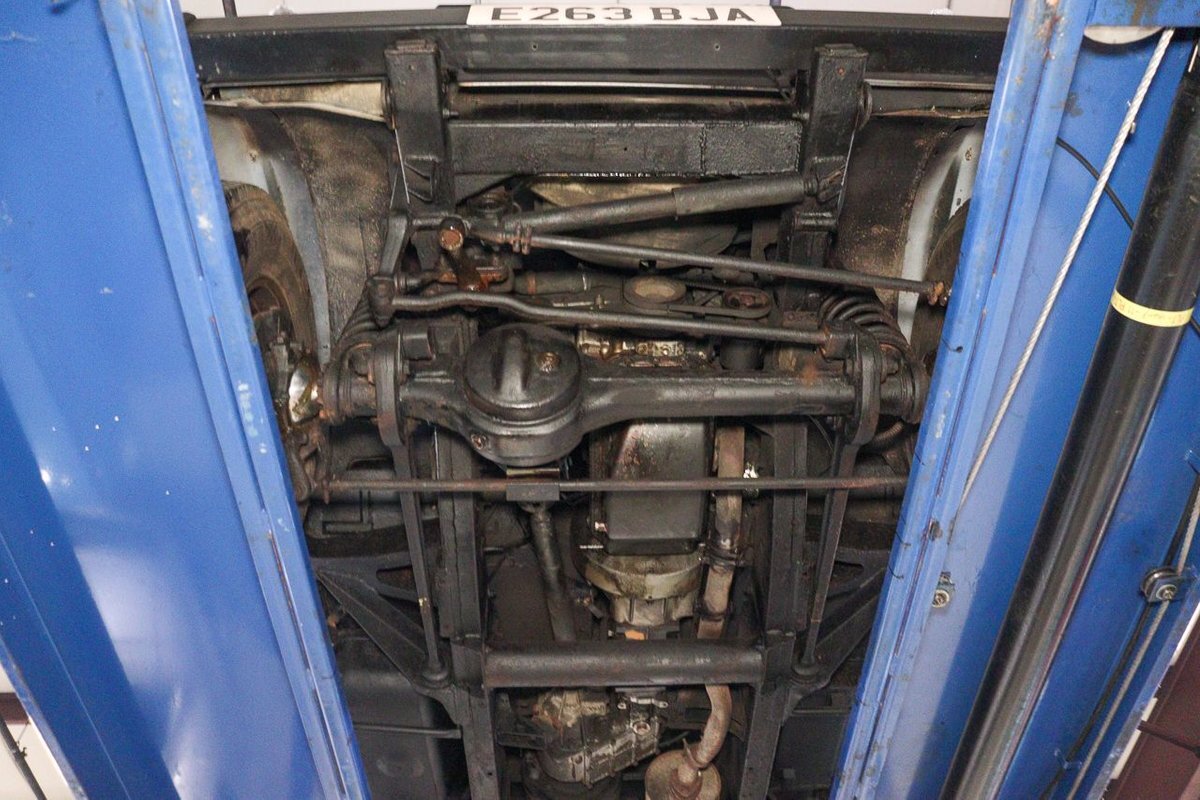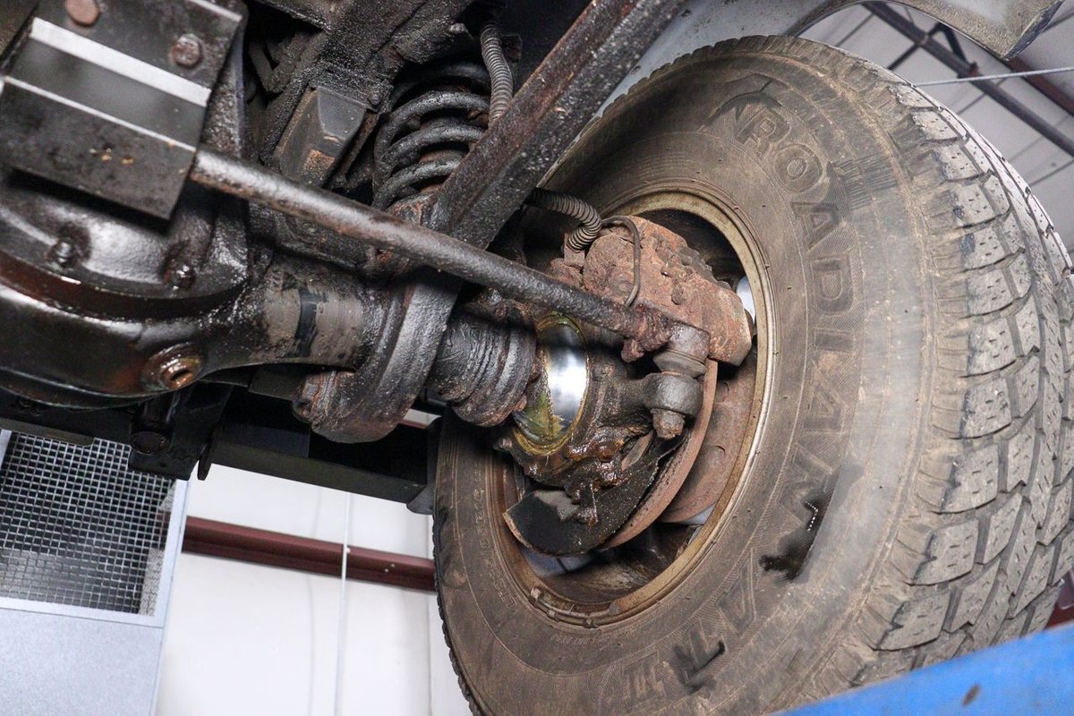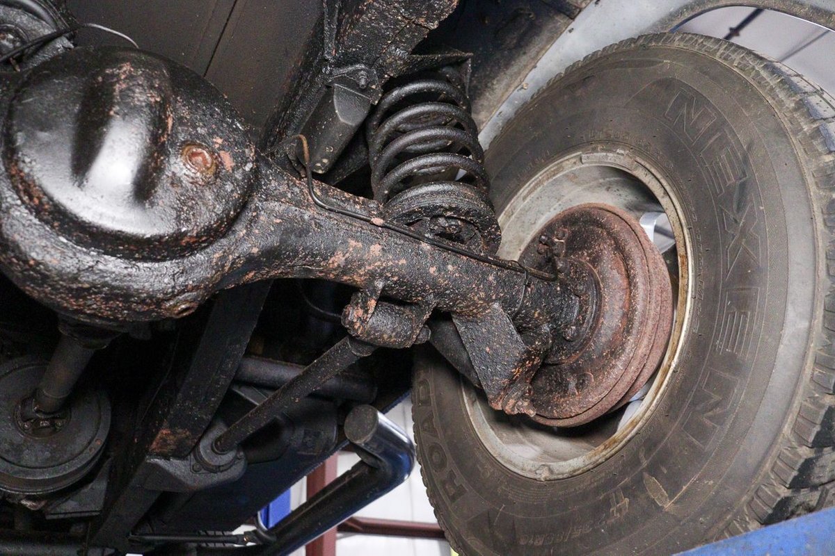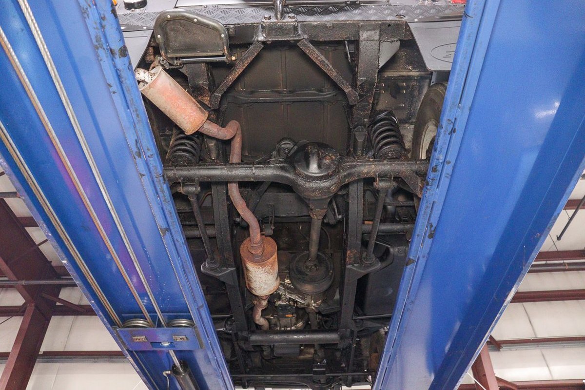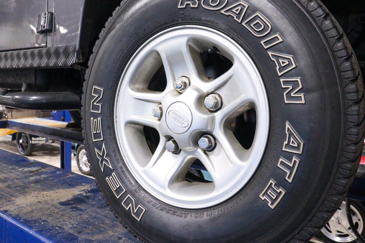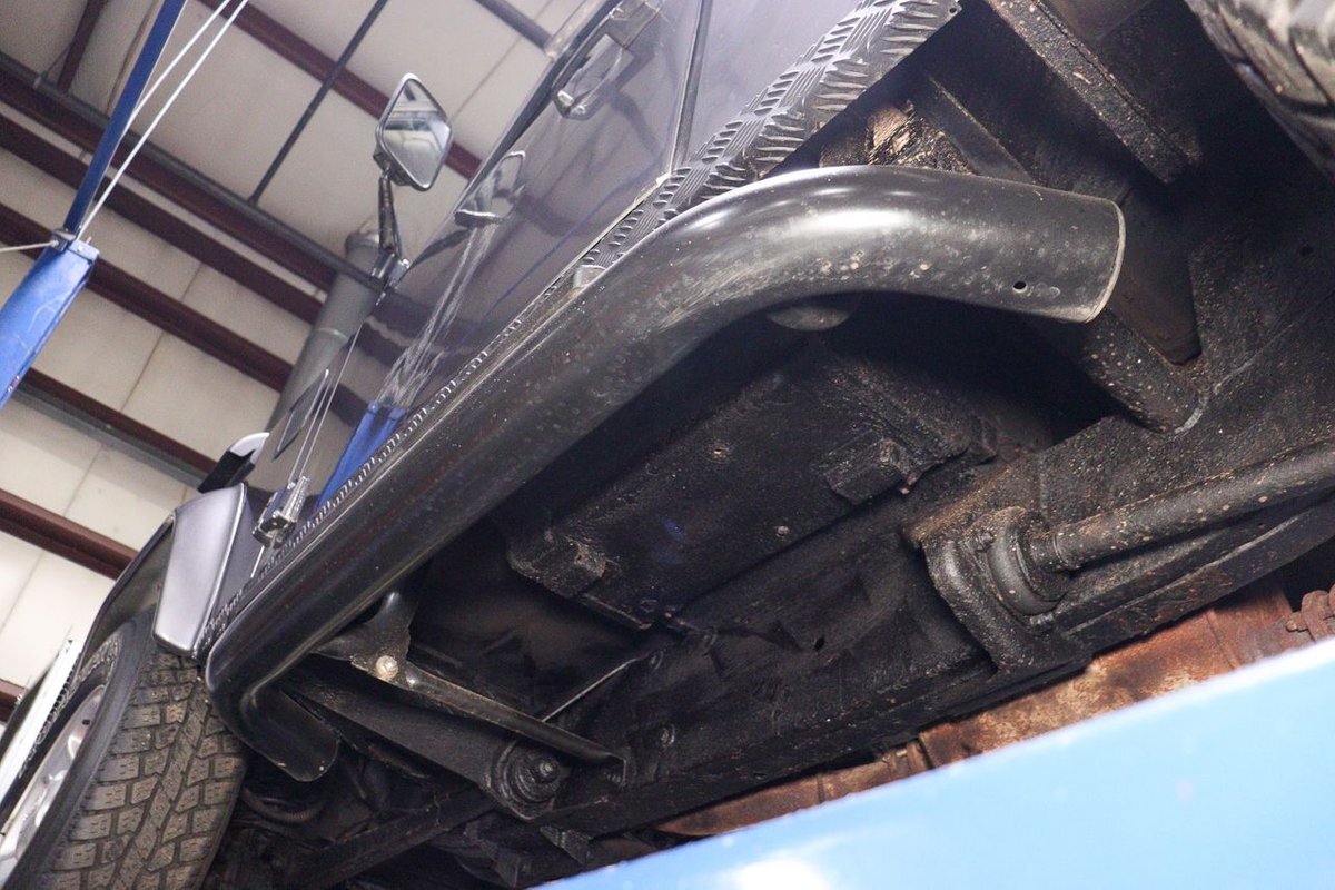 The Land Rover offered here is ready for anything you decide to throw at it. The Gray paint job shows very well and the body is straight and the gap fitment and doors alignment is good. The Defender has 4 rear jump seats allowing for more passengers. The SUV also has a rear spare tire, center console, power brakes.