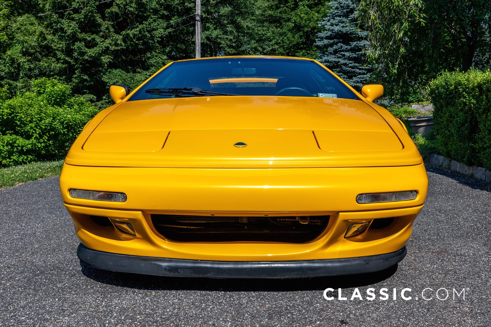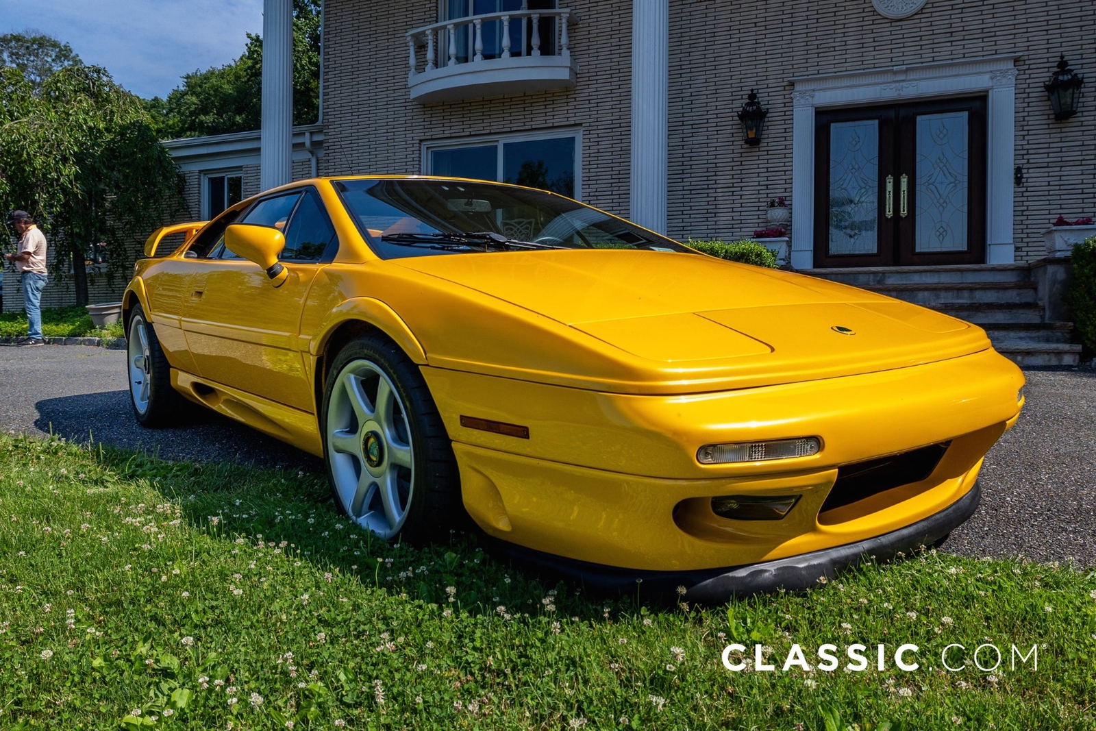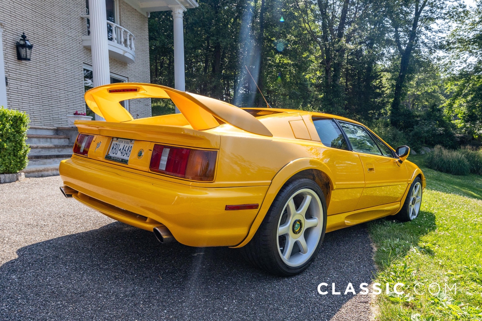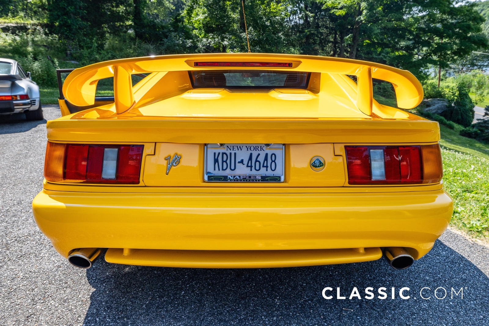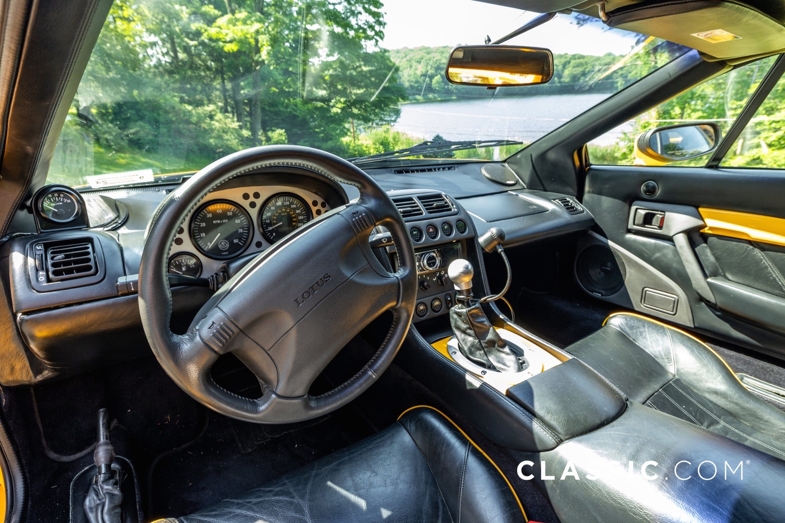 This 2000 Lotus Esprit V8 is a highly original example of one of the most coveted versions of the Esprit, and is presented in especially good condition based on its age. The Lotus yellow paint over black leather upholstery is an eye-catching combination. The OZ wheels give the car a modern look and feel, along with the rear spoiler.