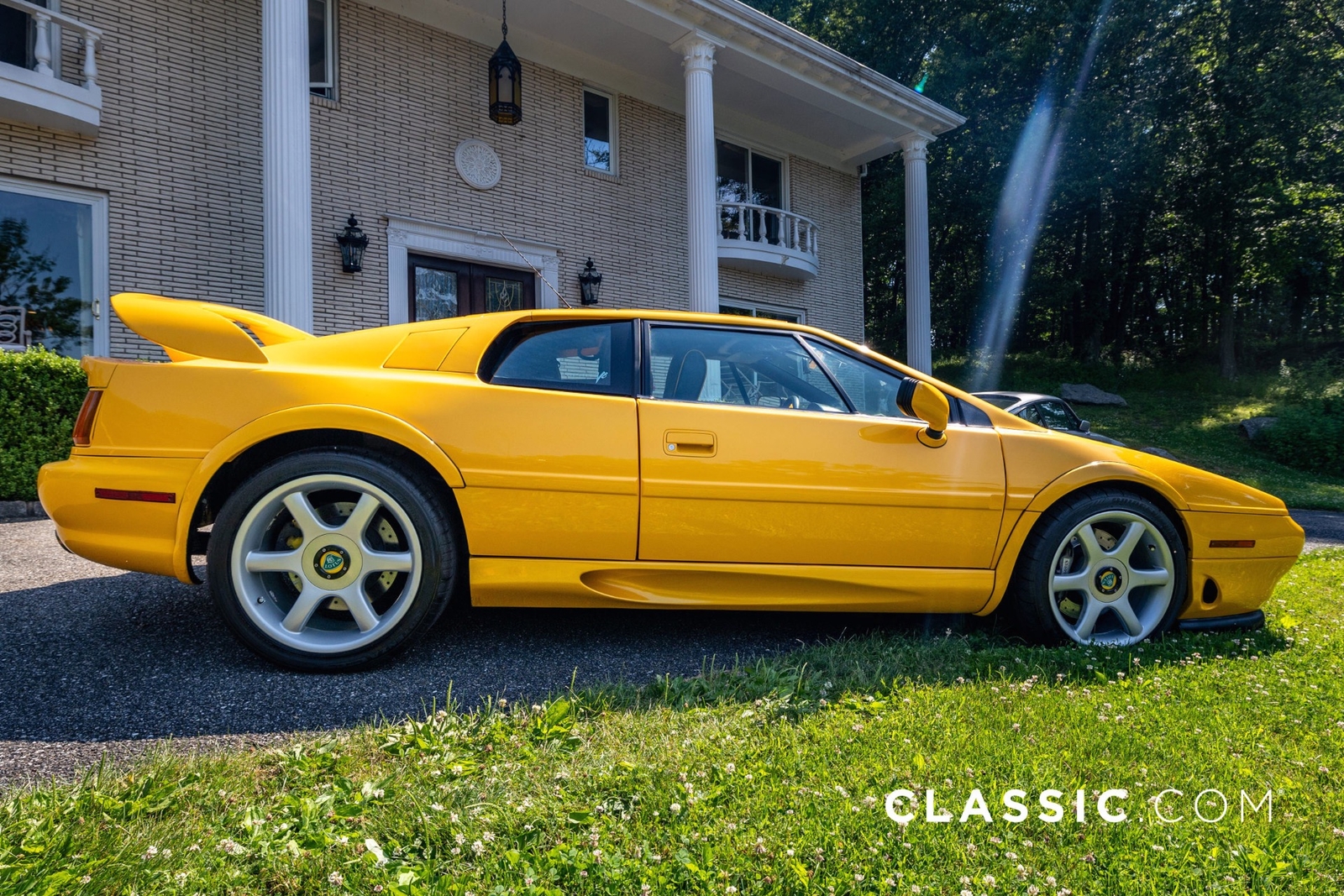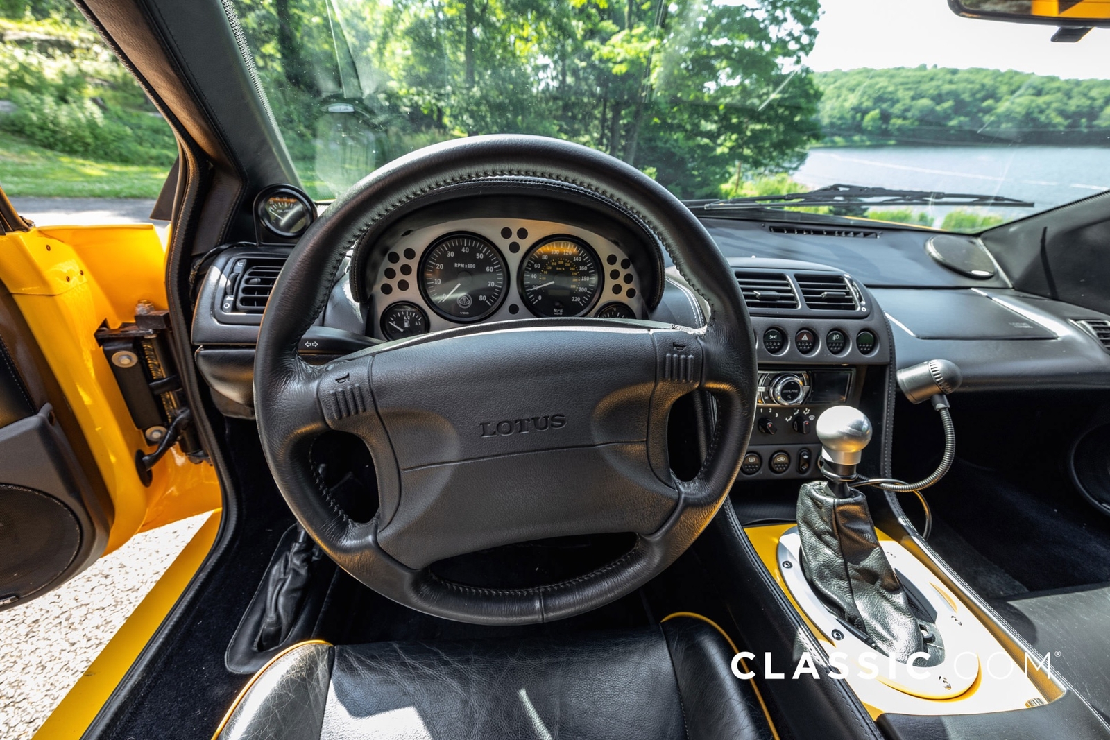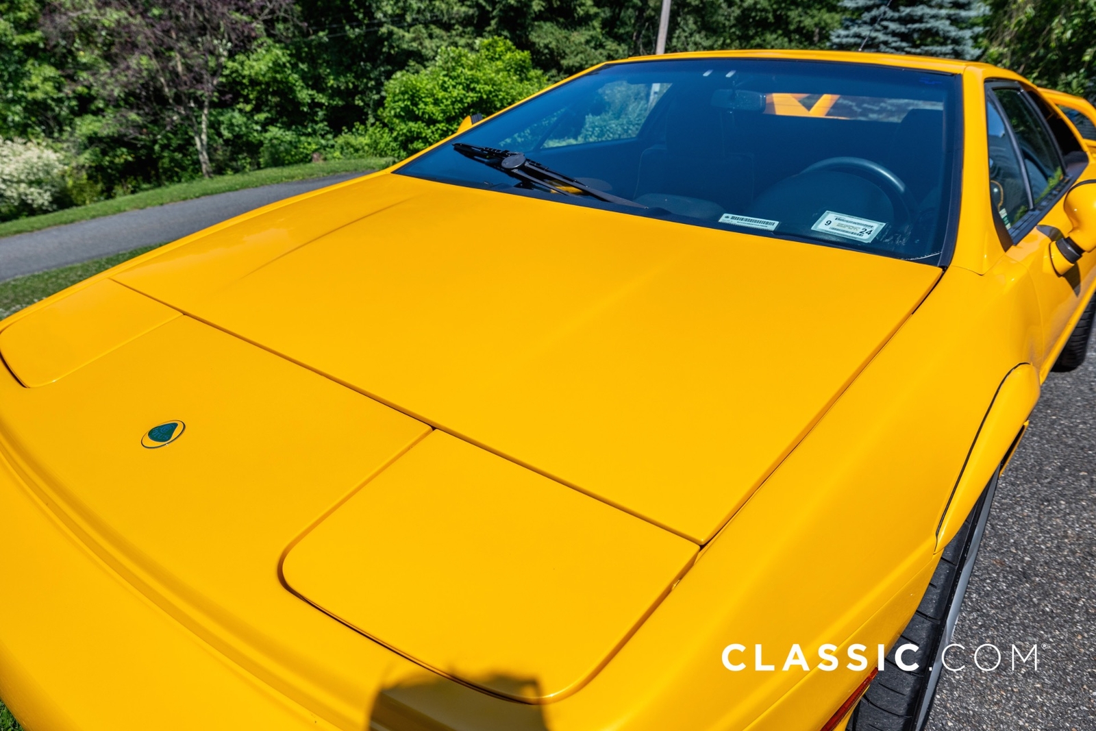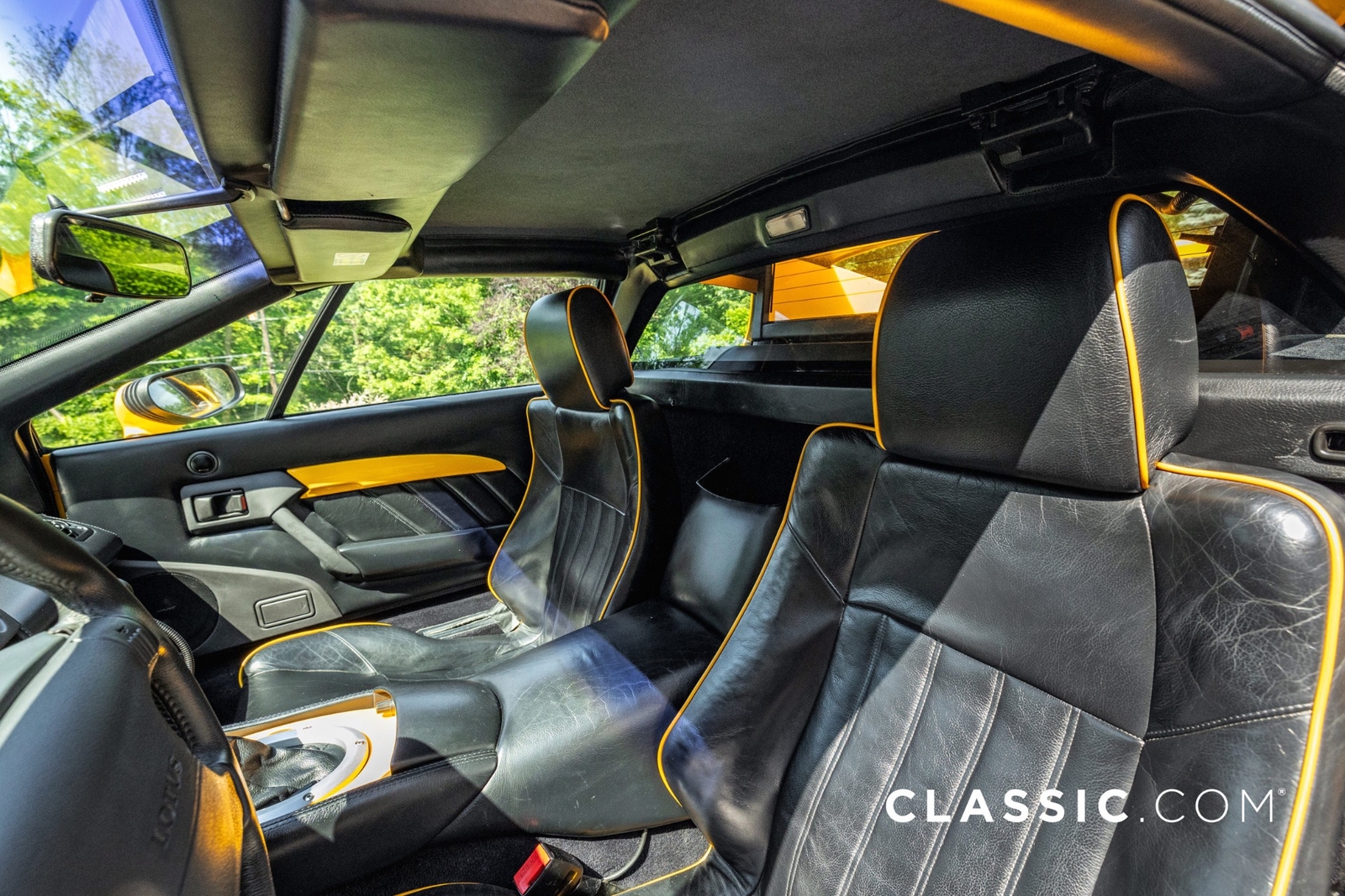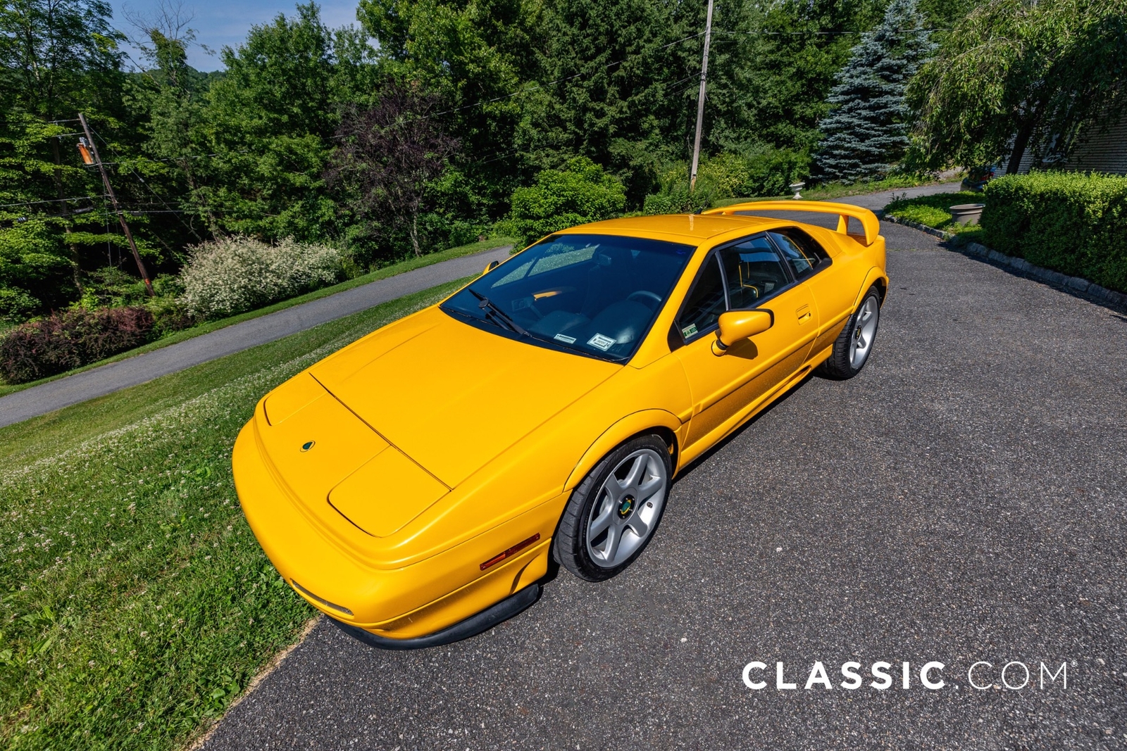 This 2000 Lotus Esprit V8 is a highly original example of one of the most coveted versions of the Esprit, and is presented in especially good condition based on its age. The Lotus yellow paint over black leather upholstery is an eye-catching combination. The OZ wheels give the car a modern look and feel, along with the rear spoiler.