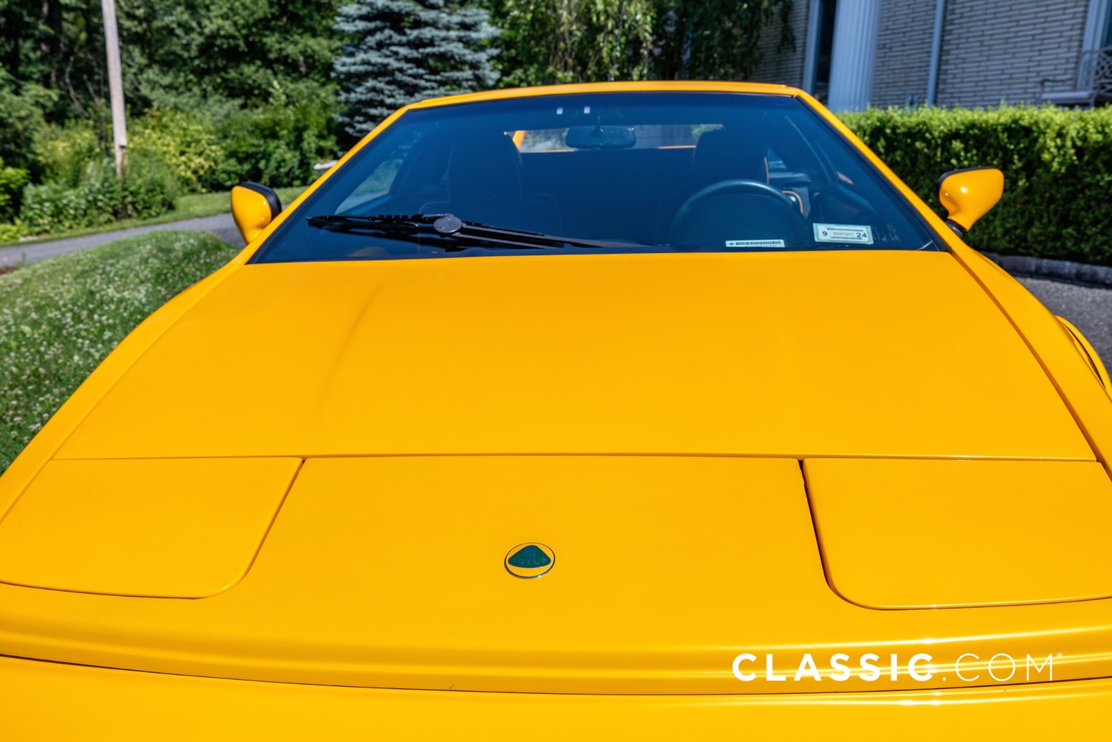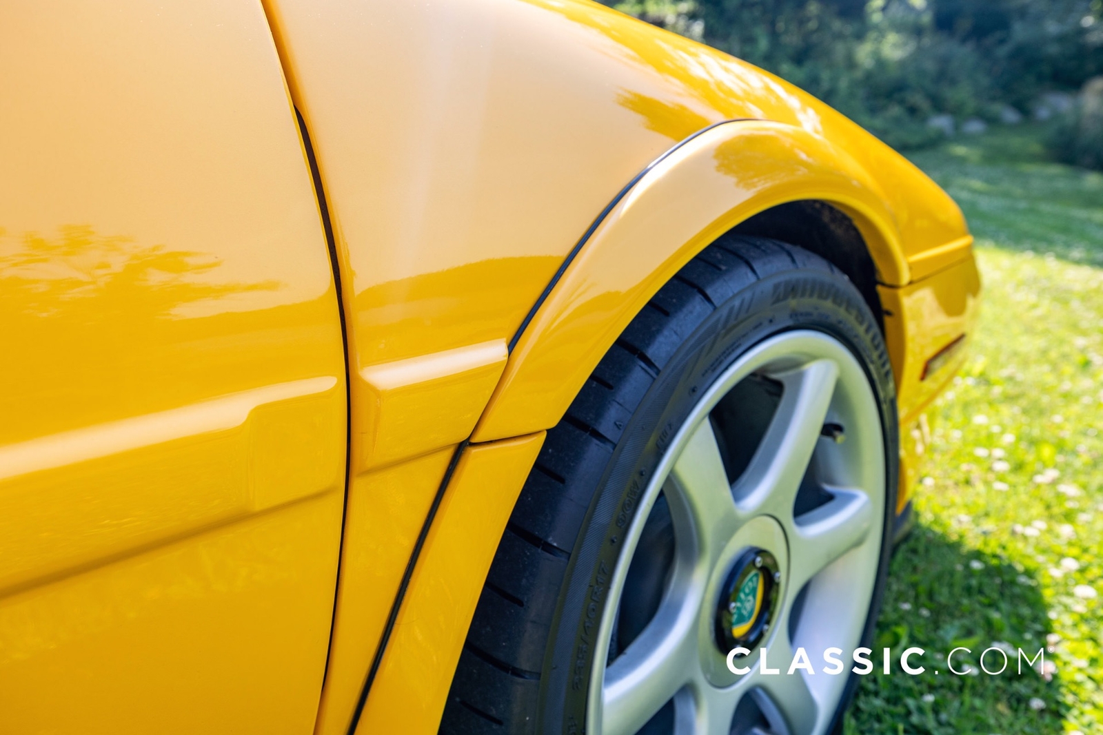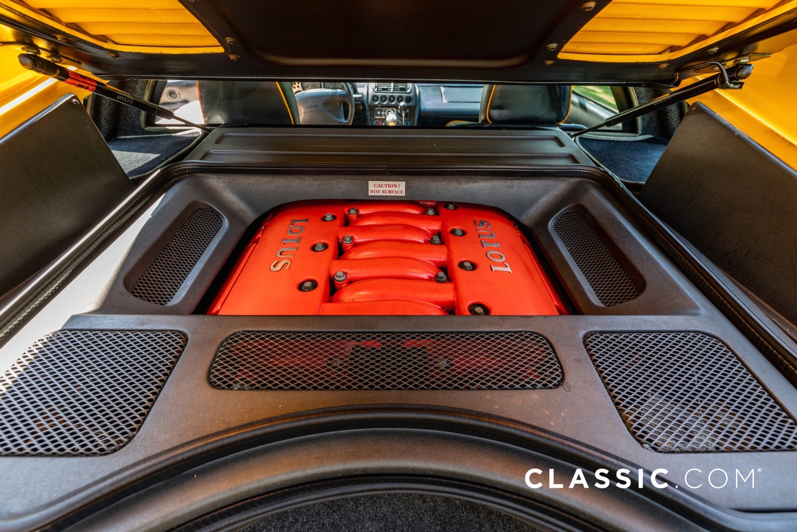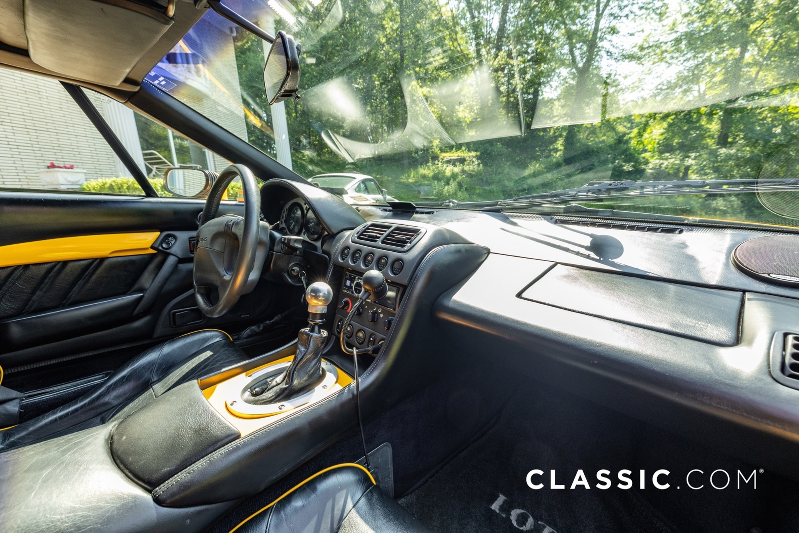 This 2000 Lotus Esprit V8 is a highly original example of one of the most coveted versions of the Esprit, and is presented in especially good condition based on its age. The Lotus yellow paint over black leather upholstery is an eye-catching combination. The OZ wheels give the car a modern look and feel, along with the rear spoiler.