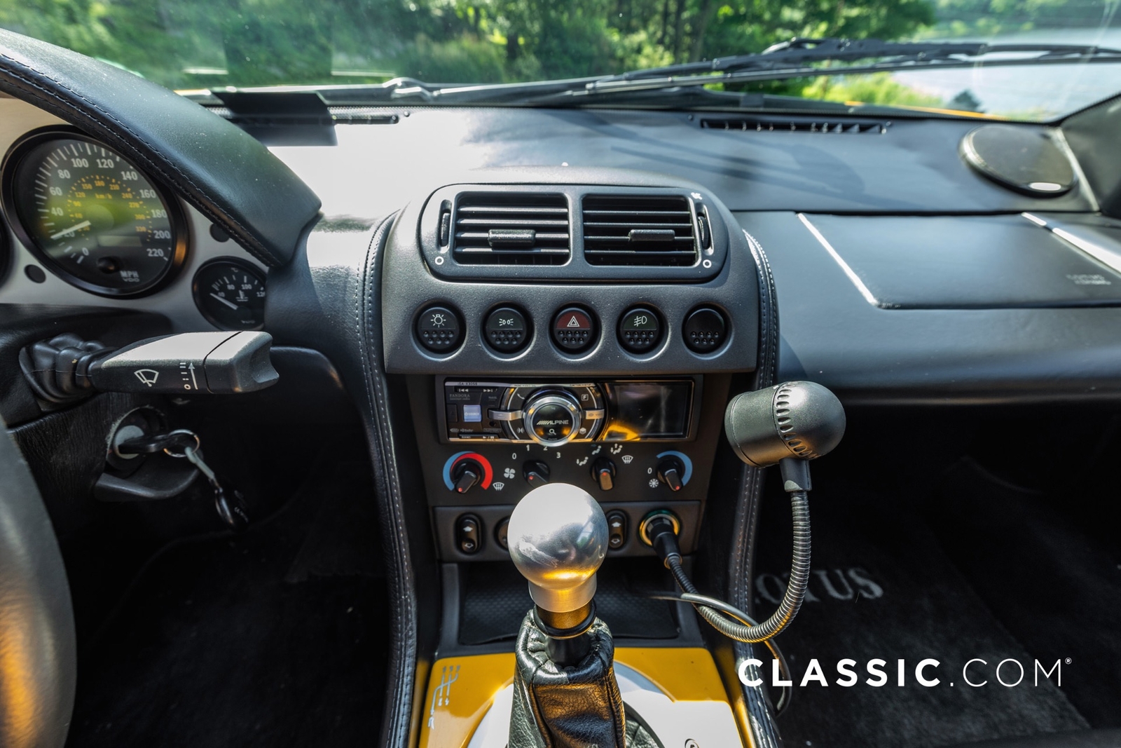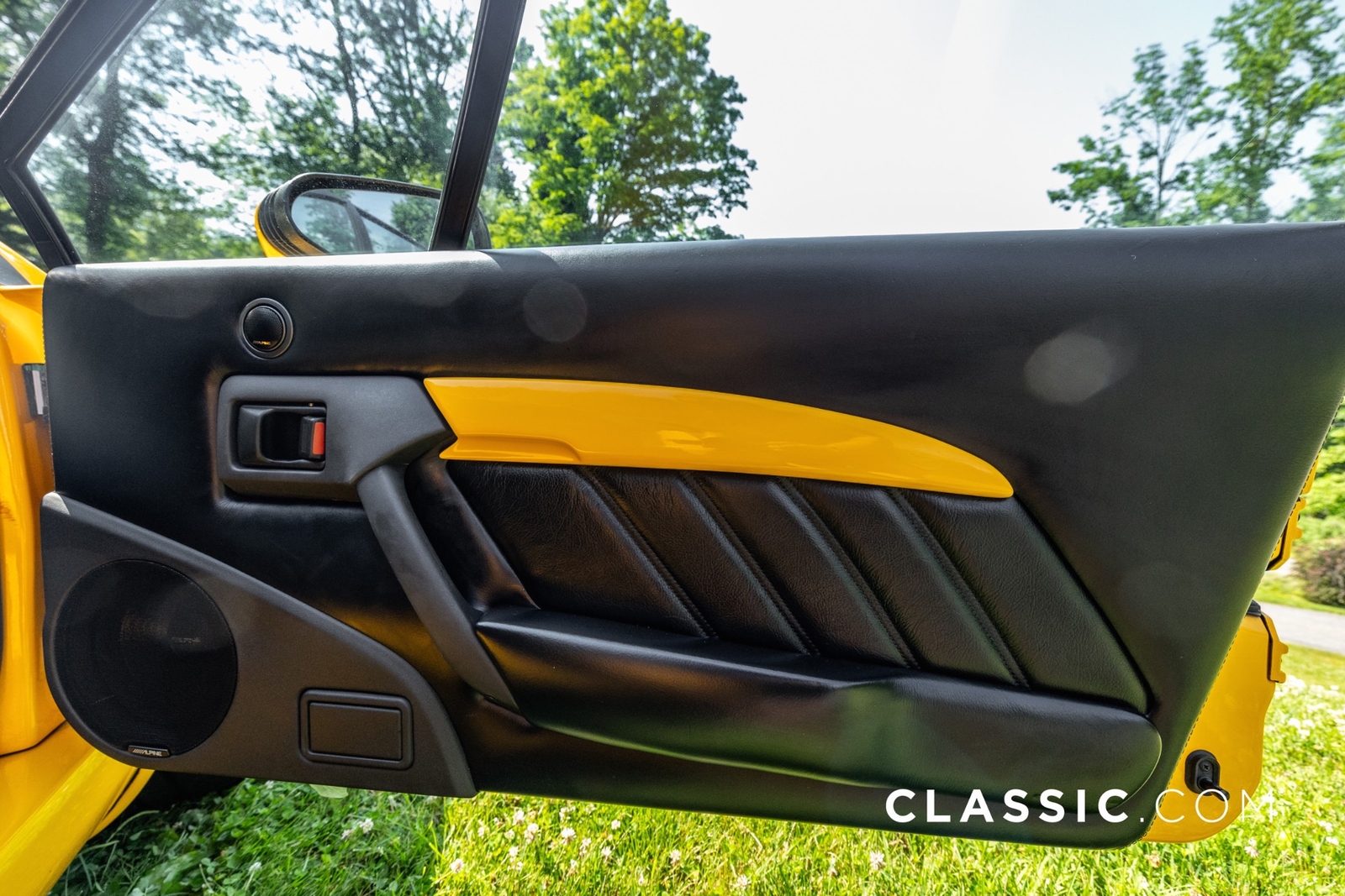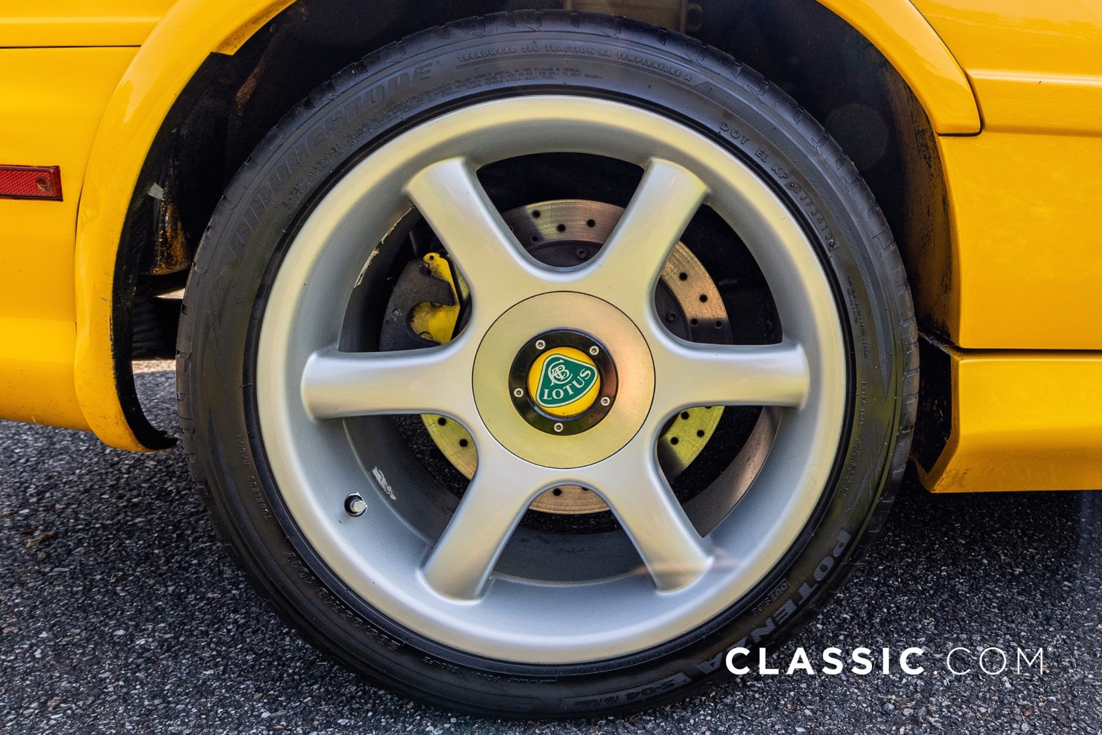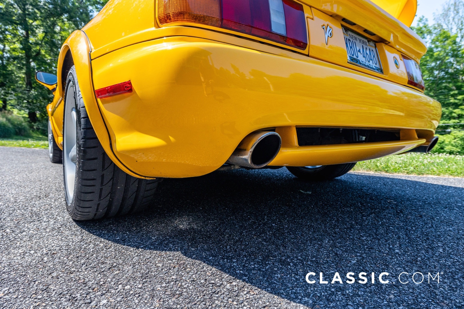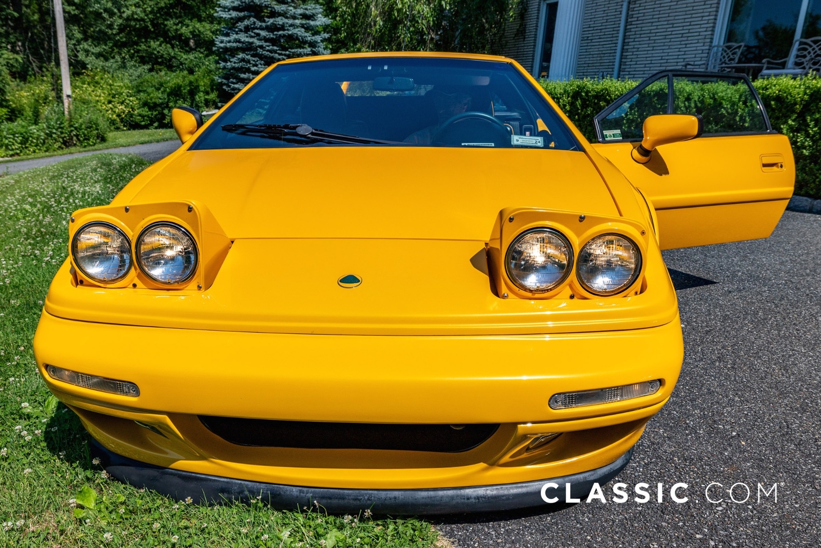 This 2000 Lotus Esprit V8 is a highly original example of one of the most coveted versions of the Esprit, and is presented in especially good condition based on its age. The Lotus yellow paint over black leather upholstery is an eye-catching combination. The OZ wheels give the car a modern look and feel, along with the rear spoiler.