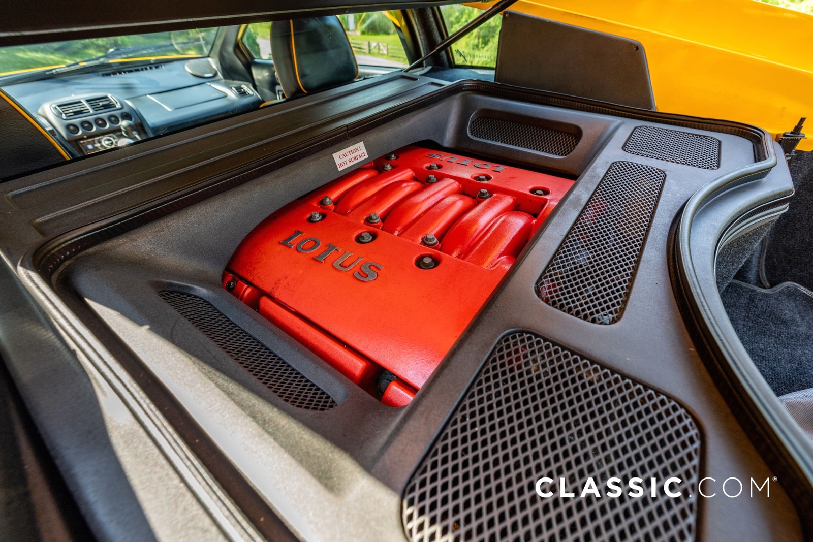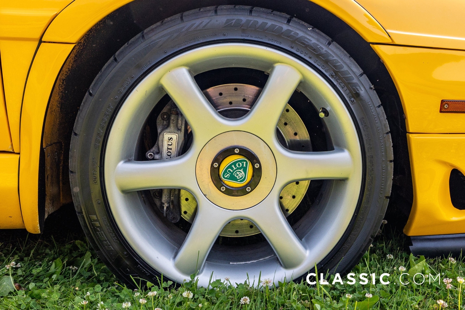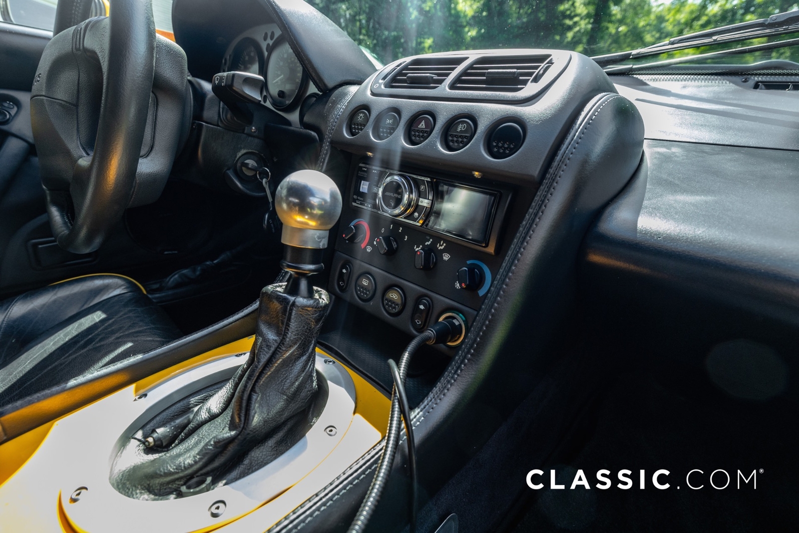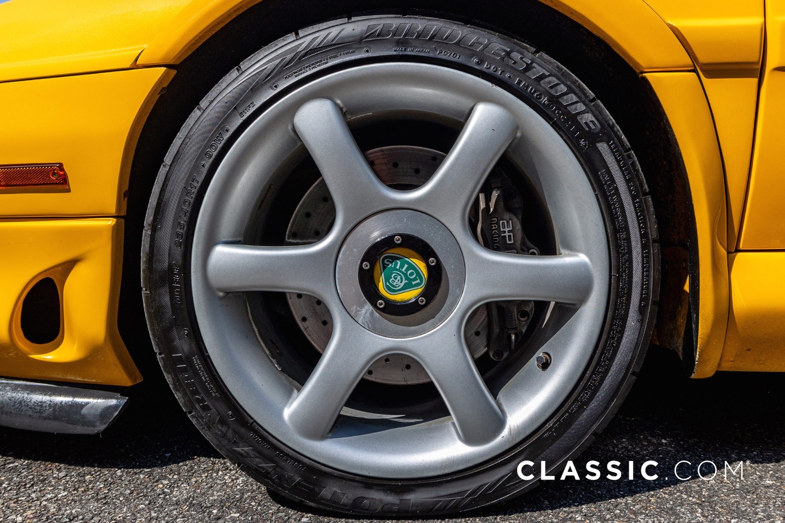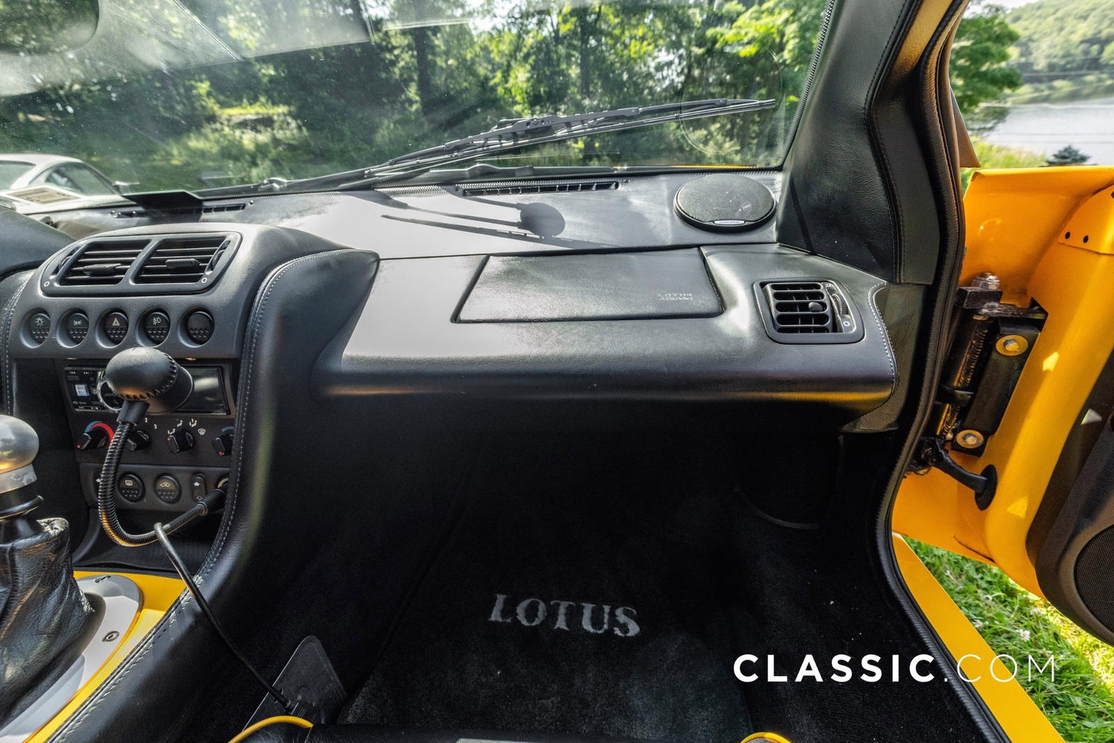 This 2000 Lotus Esprit V8 is a highly original example of one of the most coveted versions of the Esprit, and is presented in especially good condition based on its age. The Lotus yellow paint over black leather upholstery is an eye-catching combination. The OZ wheels give the car a modern look and feel, along with the rear spoiler.
