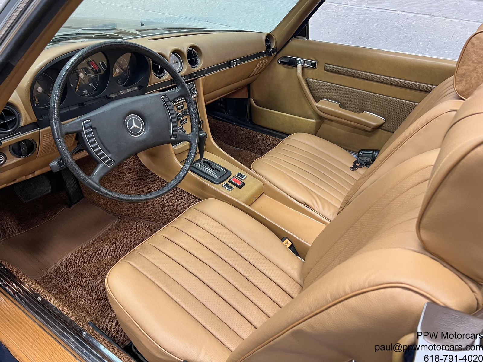 This particular example has been ordered with nearly every option available; fitted with Climate Control Air Conditioning, Bamboo Leather Seats, Power Windows, Hardtop, Right Outside Mirror, Becker Europa Stereo, Electric Antenna, and Classic Hubcap Wheels (Most all are Bundt Wheels). Setting this vehicle apart from all others, aside from mileage is the wonderful condition. Having been lovingly cared for by just two owners from new this example has been meticulously cared for with an ‘open checkbook philosophy’. This magnificent motorcar is incredibly correct, down to the crack free dash! Further, we just performed a Major Service to ensure this magnificent motorcar is ready to be enjoyed by the next owner! Retail cost on a service like this would eclipse $10,000. We are proud to offer what we believe to be one of, if not the best example of the coveted and first year 350SL Mercedes available anywhere. Offered to the collector, enthusiast, or investor who appreciates the magnificent investment potential of this magnificent motorcar! Bid with confidence-you will not be disappointed in this truly amazing motorcar!