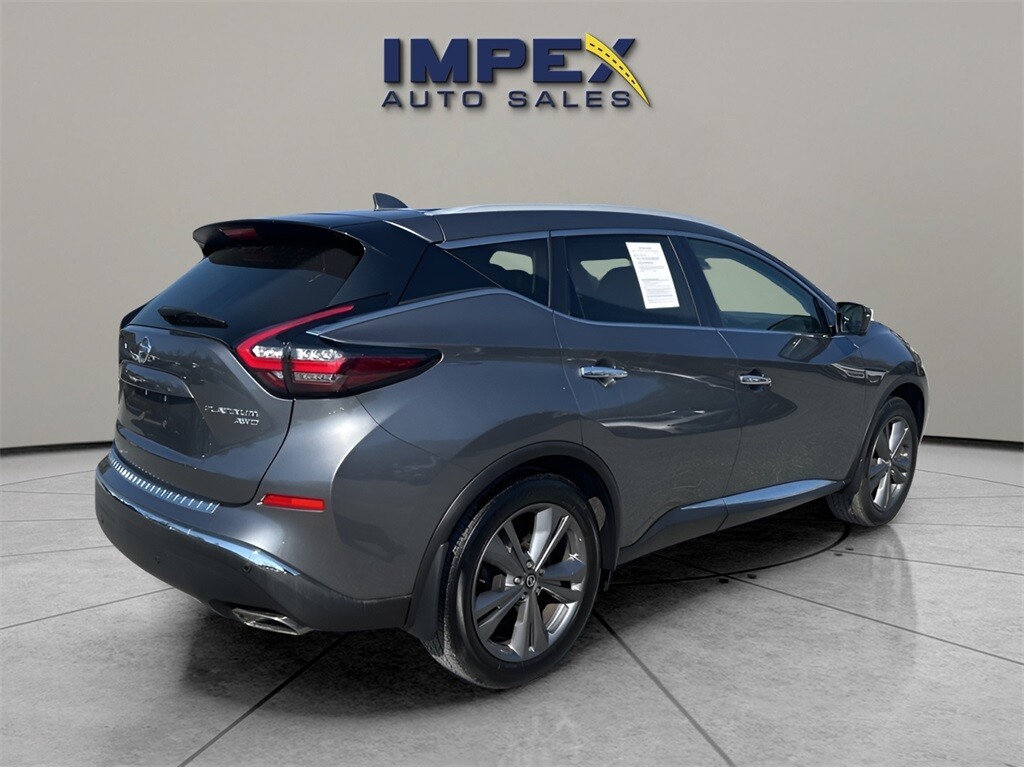 CARFAX One-Owner. This 2022 Nissan Murano Platinum AWD with 29498 miles was carefully inspected and reconditioned by our service team. Impex Auto Sales offers 7-Day/300-Mile Money-Back Guarantee, an exclusive 100+ Point Vehicle Inspection, Third-Party Price Validation, and a Vehicle History Report. Purchase your vehicle online for home delivery or pick it up at Impex Auto Sales. If you need to get rid of your current vehicle. You can trade it or we can buy it. Price excludes tax, tag, title and $799 administrative fee as regulated by N.C.G.S. 20-101.1.