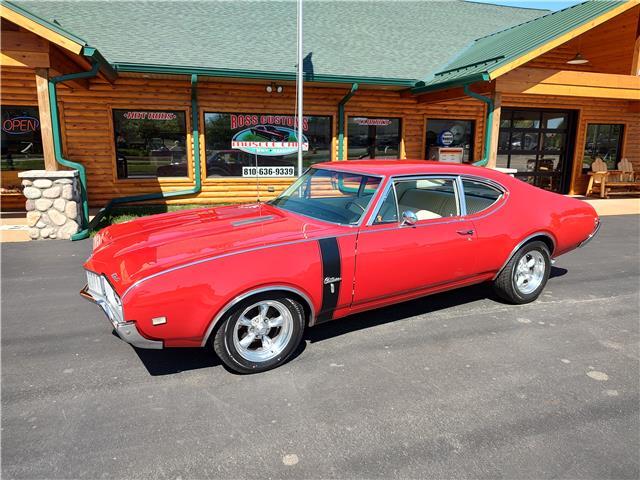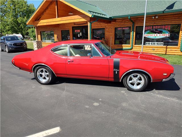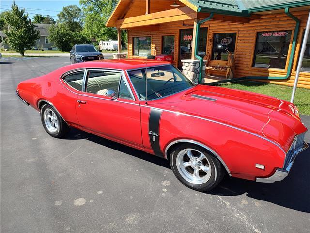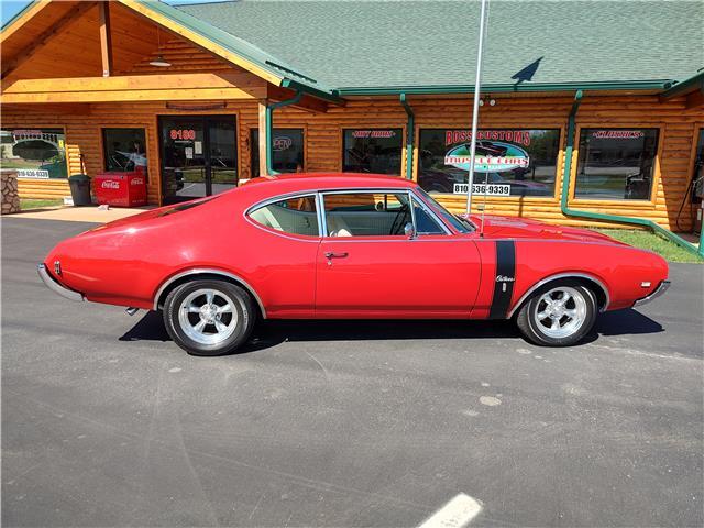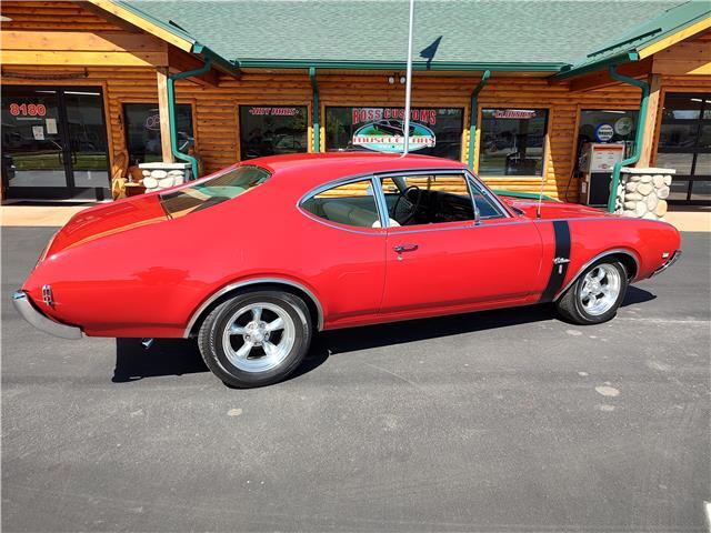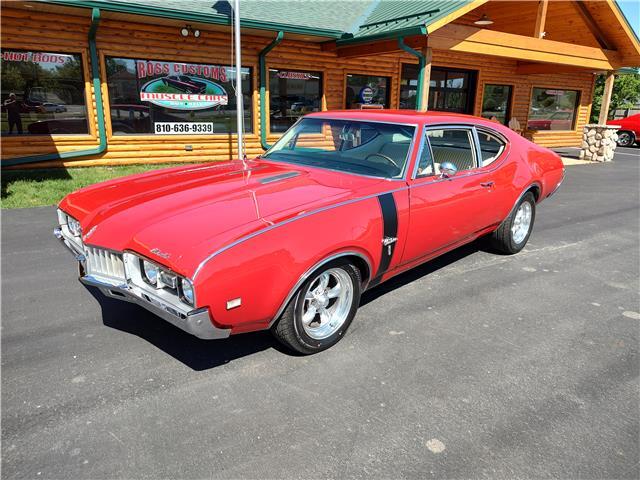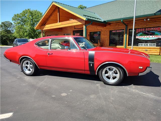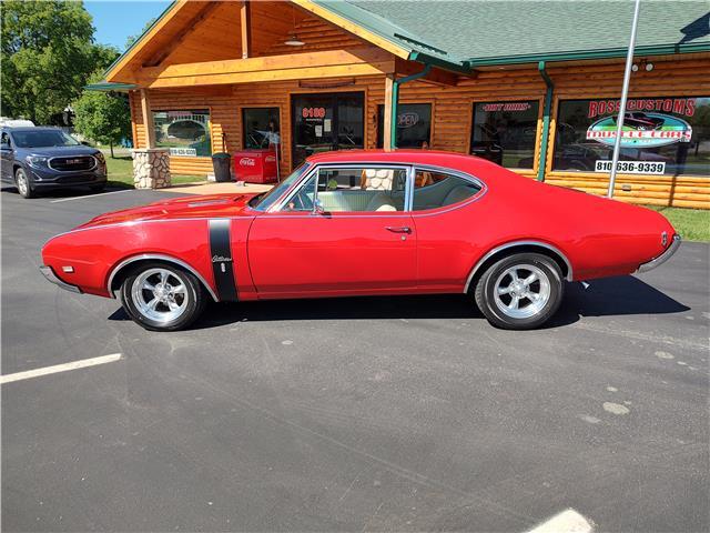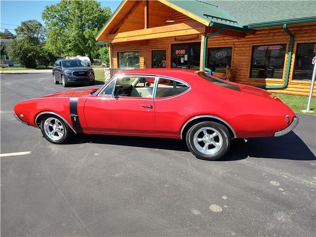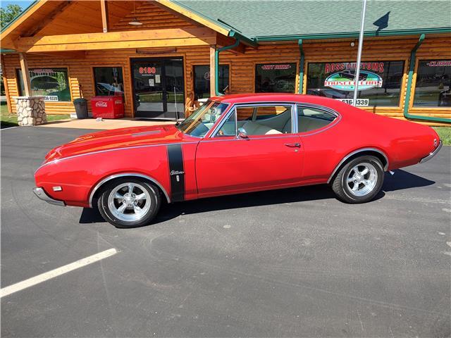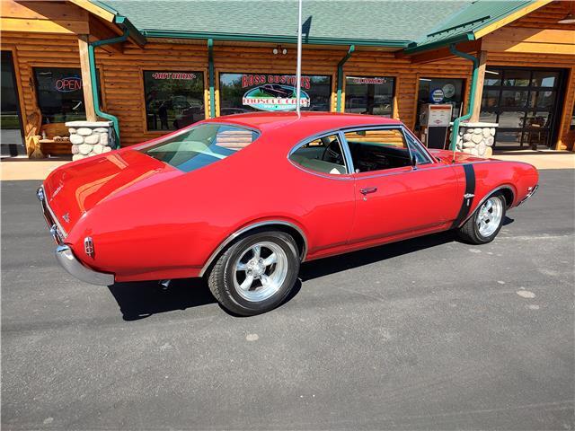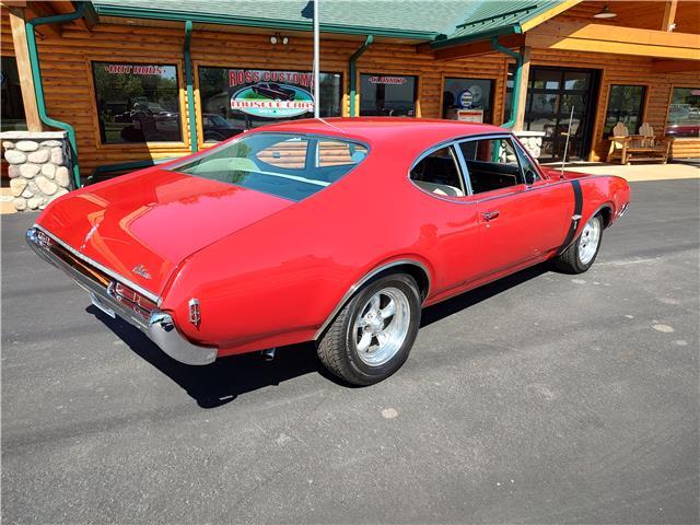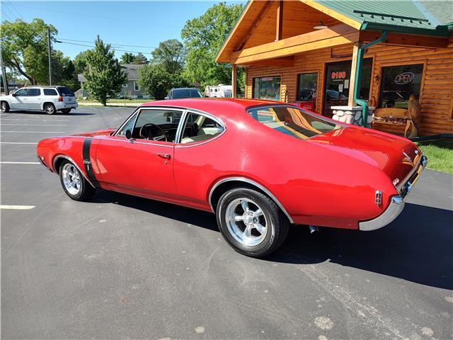 This is a rare 68 Oldsmobile Cutlass Sport Coupe, 4 speed with a lot of options, clean all original panel car, 49,000 actual miles, 1 exterior repaint its factory color Scarlet, at time of repaint had new weather stripping and window felts, retains all original factory softray glass with exception of new windshield; all glass is excellent condition, all window stainless is original in excellent condition, factory louver hood with air intake, exterior chrome package which includes; chrome side window frames, body moldings and wheel well moldings are original in excellent condition, original dual side view mirrors in excellent condition, door handles look like new, sport hood, original grills, headlight bezels, headlight surrounds and parking lights in excellent condition, original T3 headlights, grill, fender eyebrows and hood molding are in excellent condition; no dings, original re-chromed front bumper, all emblems appear to be original in excellent condition, deck lid applique is original in excellent condition, original taillights also in excellent condition, re-chromed factory original rear bumper.