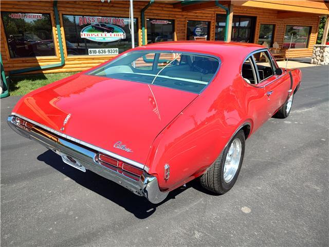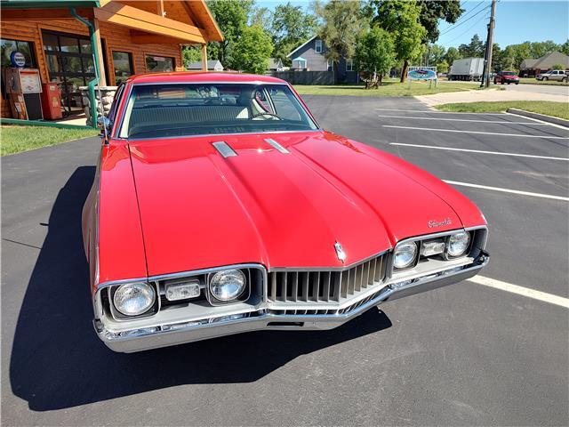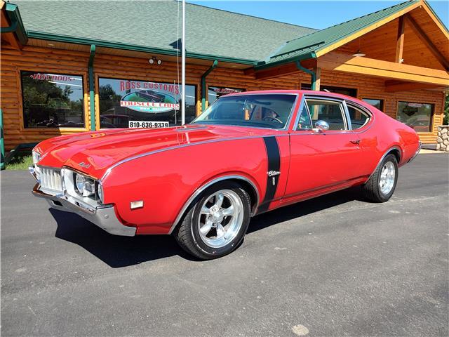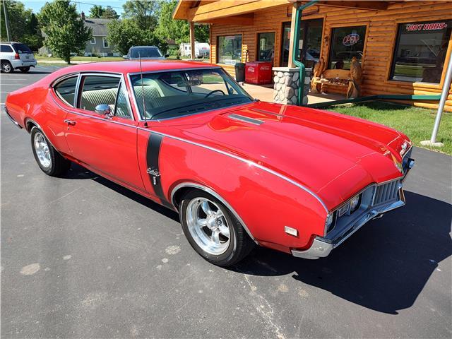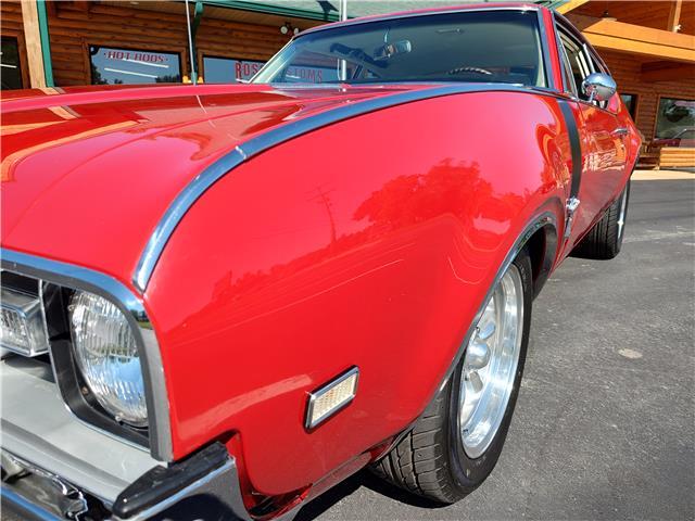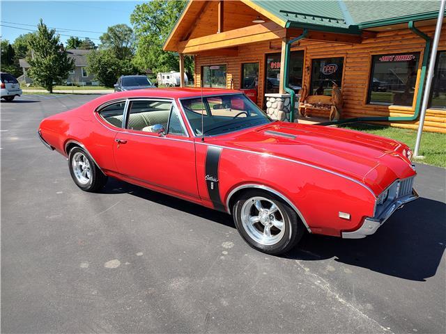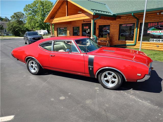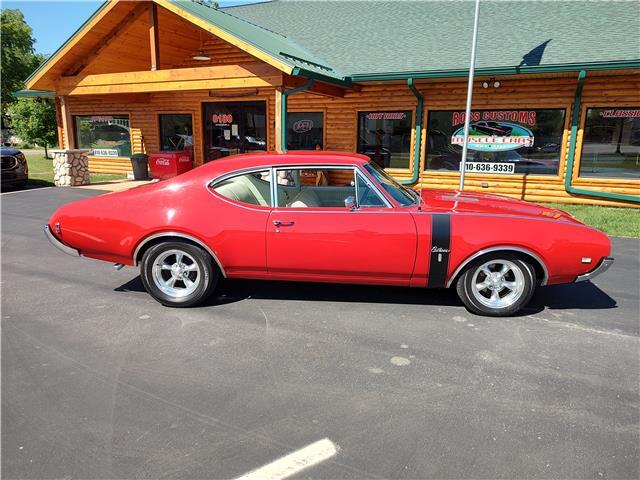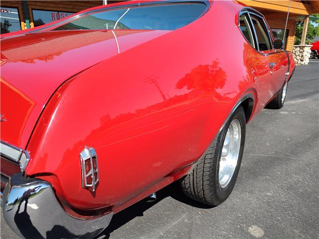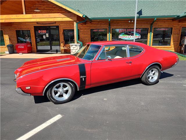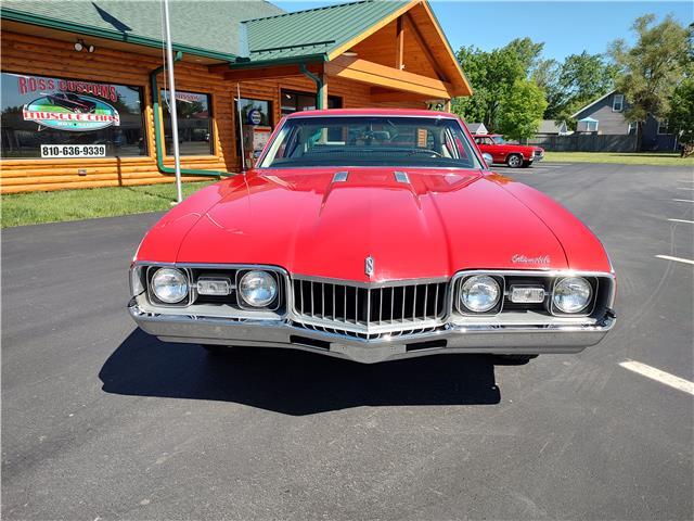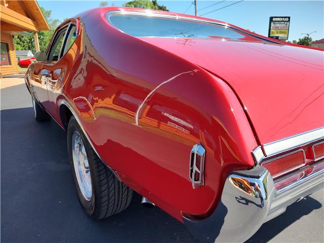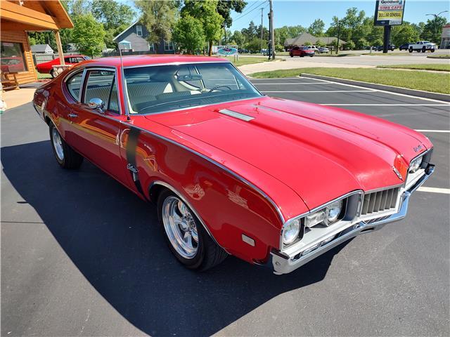 This is a rare 68 Oldsmobile Cutlass Sport Coupe, 4 speed with a lot of options, clean all original panel car, 49,000 actual miles, 1 exterior repaint its factory color Scarlet, at time of repaint had new weather stripping and window felts, retains all original factory softray glass with exception of new windshield; all glass is excellent condition, all window stainless is original in excellent condition, factory louver hood with air intake, exterior chrome package which includes; chrome side window frames, body moldings and wheel well moldings are original in excellent condition, original dual side view mirrors in excellent condition, door handles look like new, sport hood, original grills, headlight bezels, headlight surrounds and parking lights in excellent condition, original T3 headlights, grill, fender eyebrows and hood molding are in excellent condition; no dings, original re-chromed front bumper, all emblems appear to be original in excellent condition, deck lid applique is original in excellent condition, original taillights also in excellent condition, re-chromed factory original rear bumper.