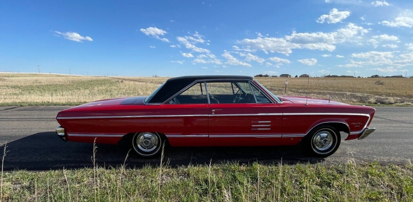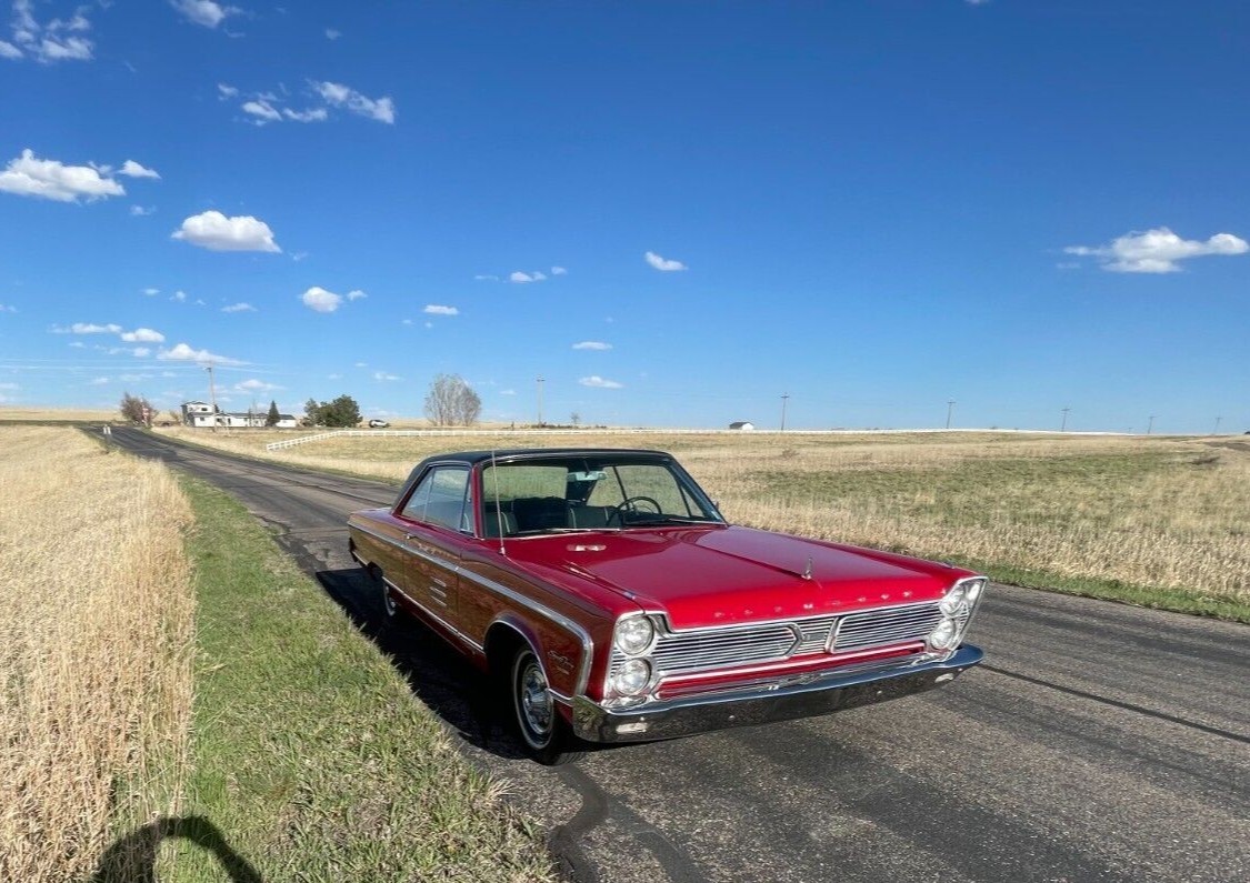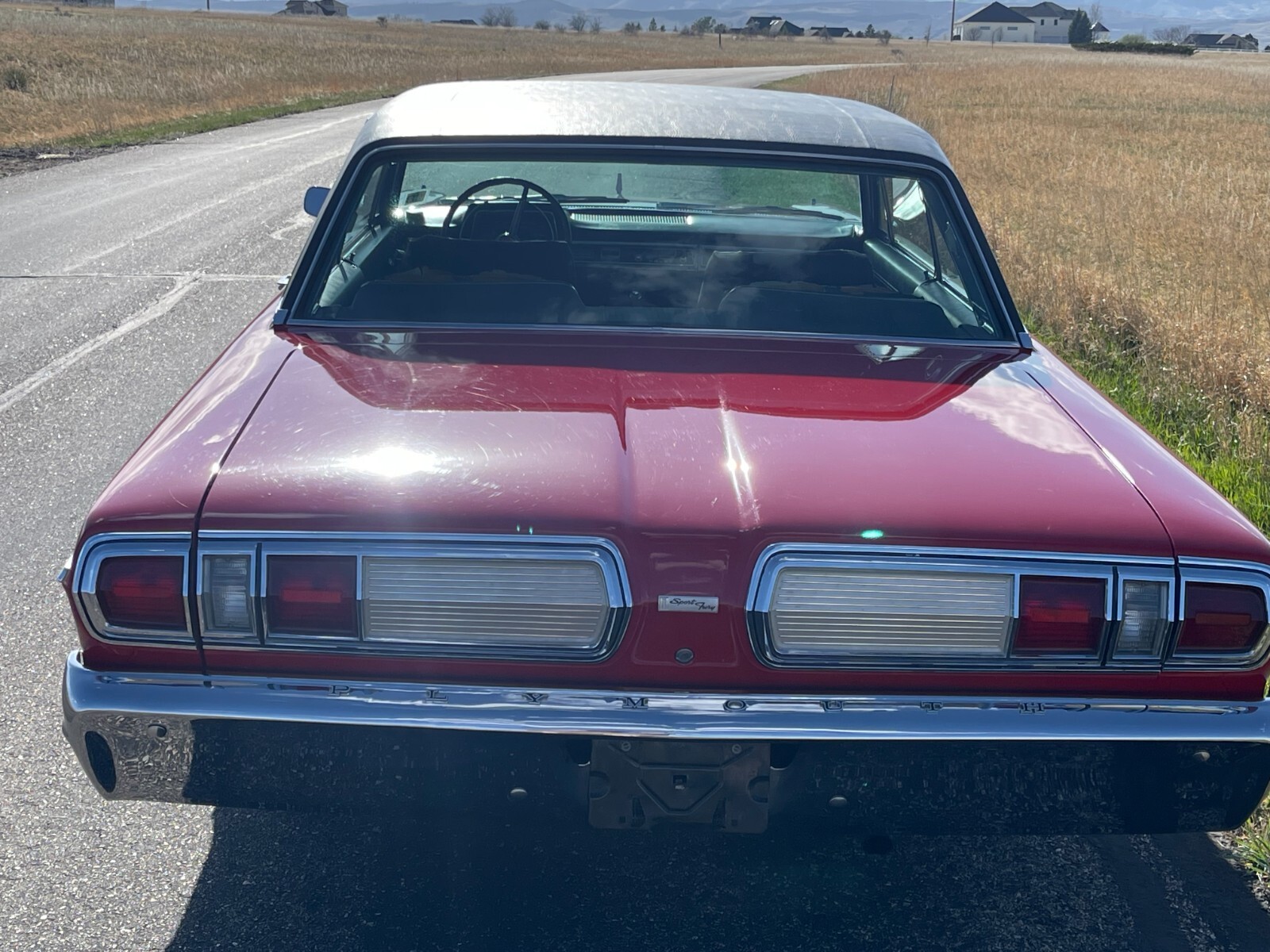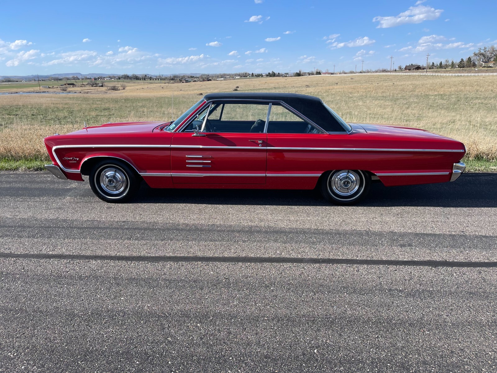 1966 Sport Fury 2 Door Hardtop, 383 Engine, 4 Barrel, Automatic With console, Bucket Seats, Excellent paint (painted original color by Coopers Auto Body) Runs Nicely, Drum Brakes, Would recommend updates to those disc brakes. Interior original, Car does have the original fender skirts that are just as nice as the car. V8 Red Exterior and black interior. Comes with factory wheels and the wheels shown shown in the pictures.