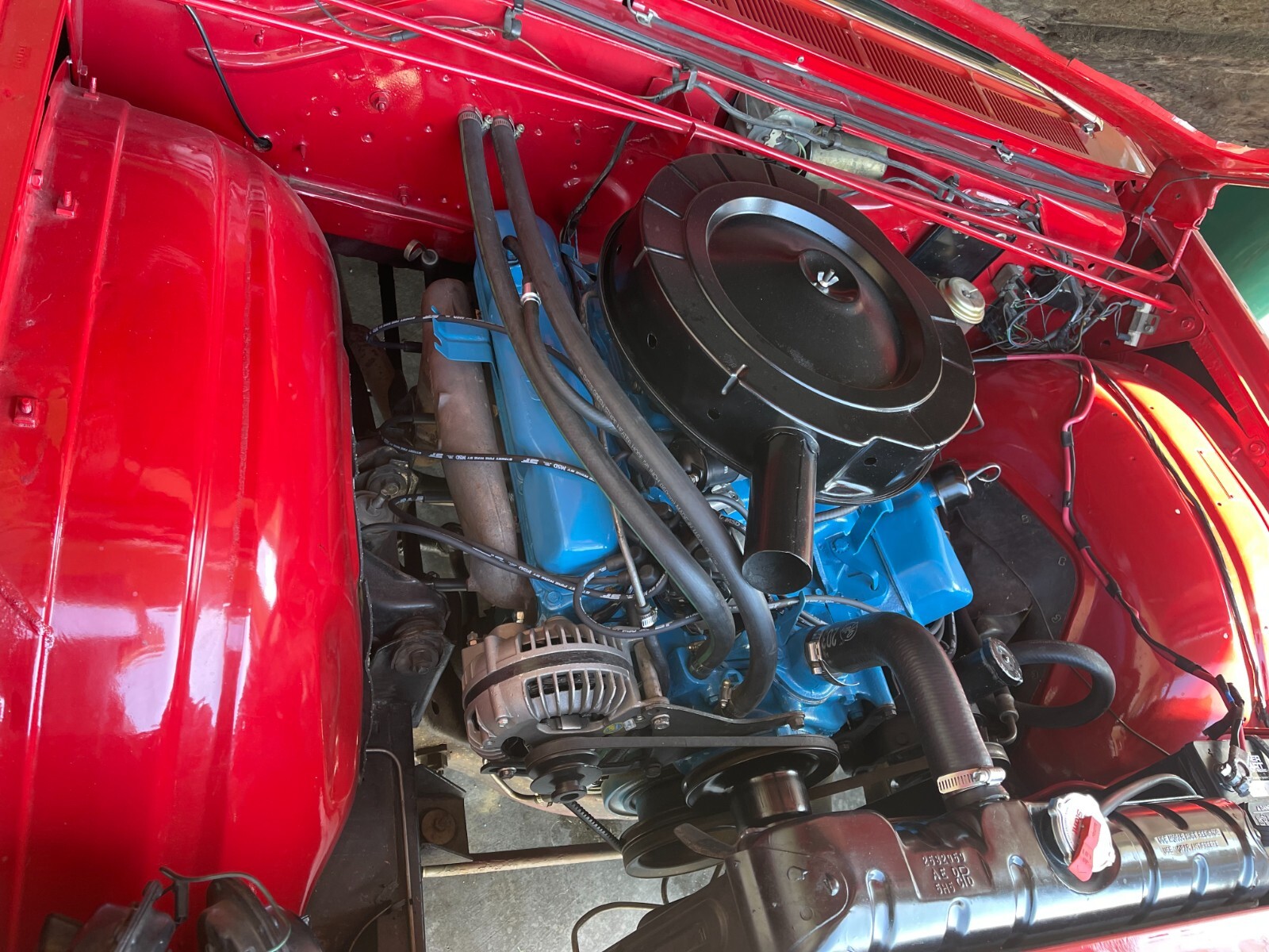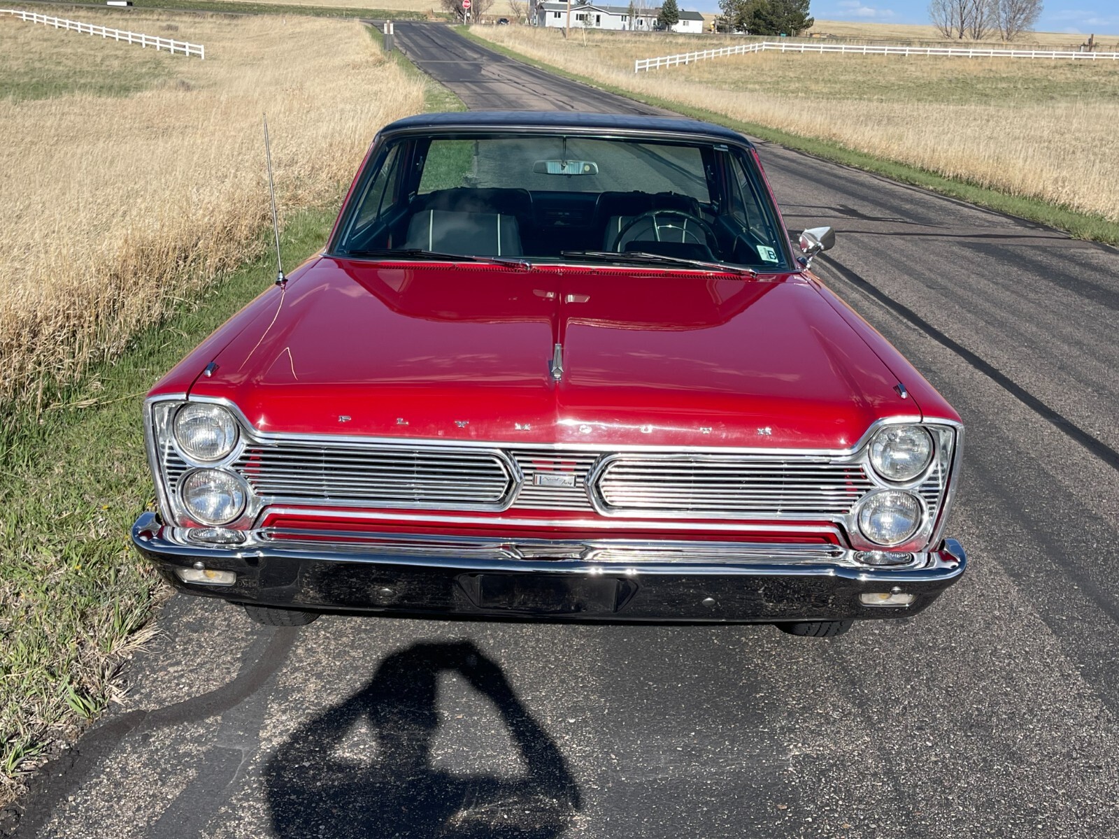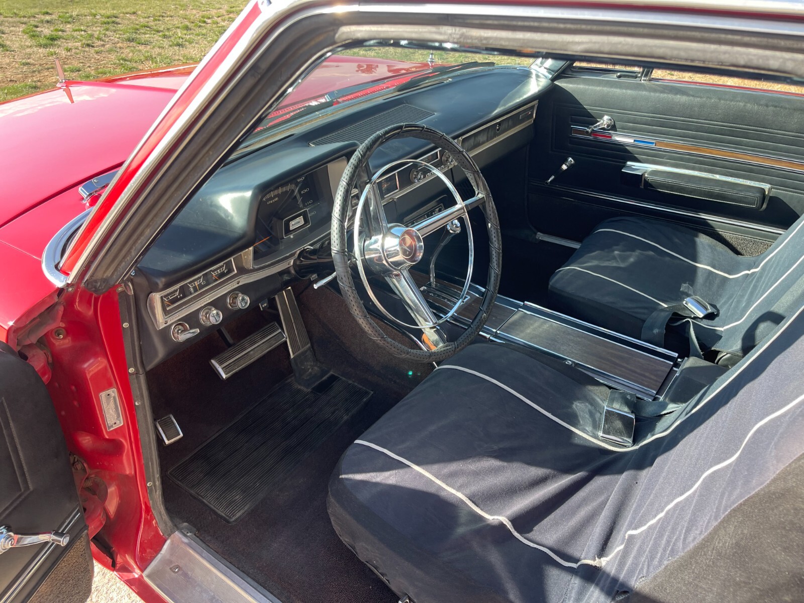 1966 Sport Fury 2 Door Hardtop, 383 Engine, 4 Barrel, Automatic With console, Bucket Seats, Excellent paint (painted original color by Coopers Auto Body) Runs Nicely, Drum Brakes, Would recommend updates to those disc brakes. Interior original, Car does have the original fender skirts that are just as nice as the car. V8 Red Exterior and black interior. Comes with factory wheels and the wheels shown shown in the pictures.