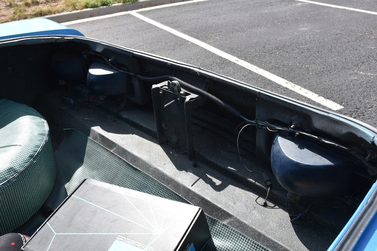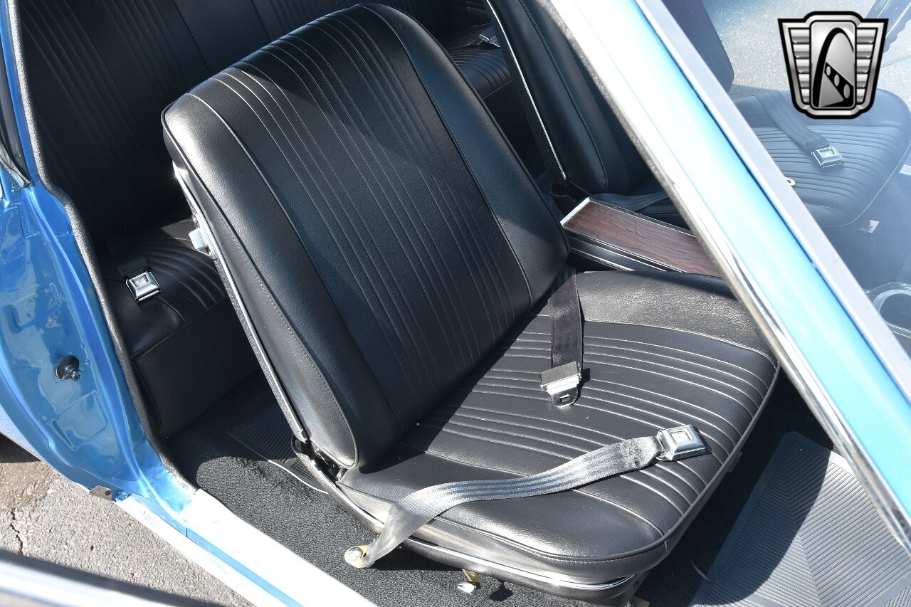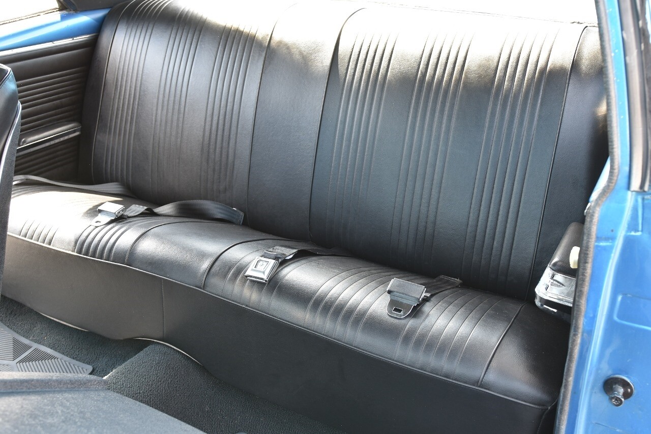 The interior of this GTO is as impressive as its exterior, featuring a sleek black vinyl finish that nicely complements the blue exterior. The car is equipped with seatbelts for your safety, ensuring you can enjoy the ride with peace of mind.