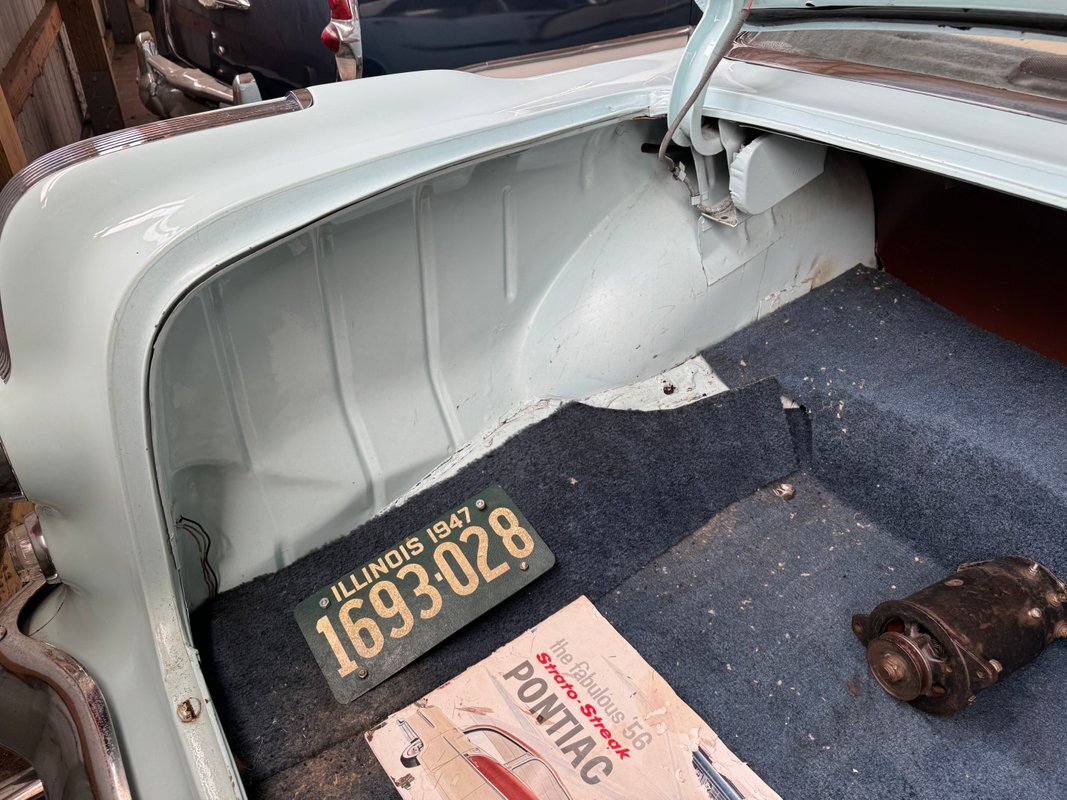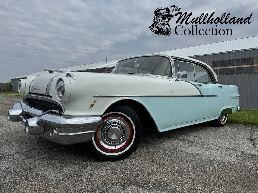 Available now on consignment out of the Mulholland collection is this 1956 Pontiac Chieftain 4-door hard top finished in a two tone blue and white exterior covering a similar color schemed interior. This Pontiac is powered by a V8 engine mated to an automatic transmission and dual exhaust. This Chieftain drives very well and is coming out of a long term ownership in the Mulholland Collection.