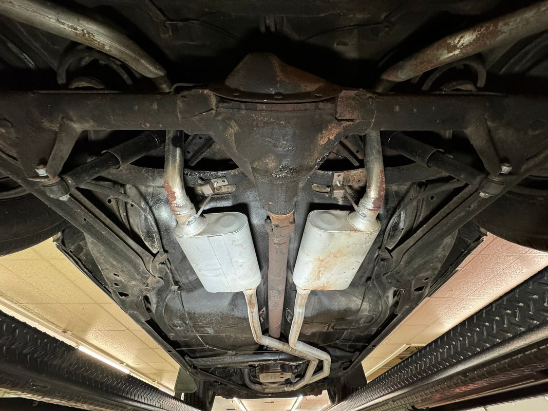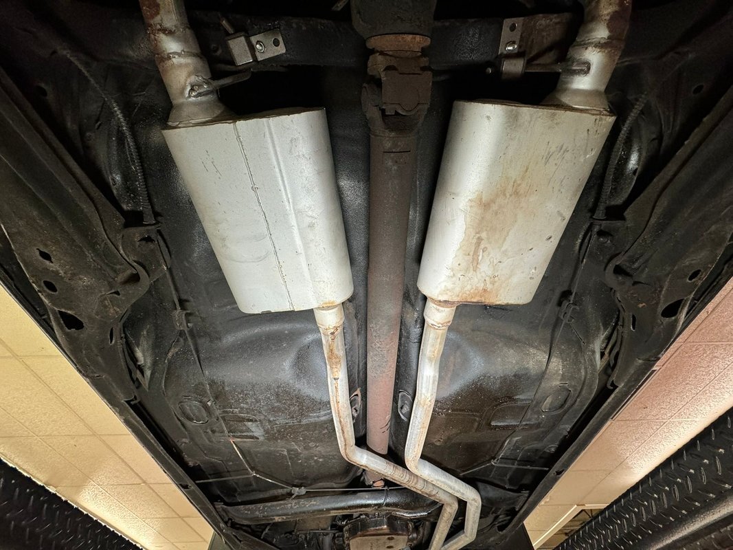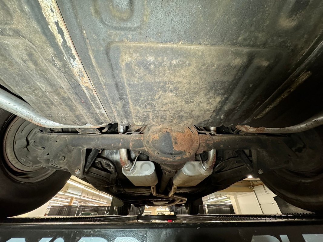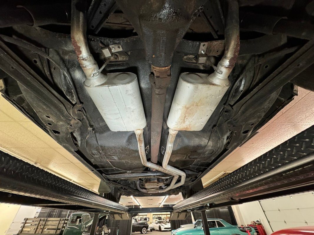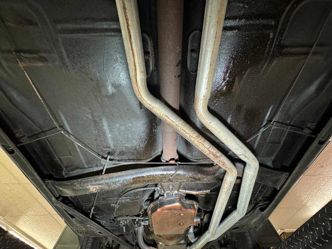 Some light surface rust is noted throughout but certainly nothing to be concerned about. Power disc brakes are on the front of the car and power drums for the rear and for the Radial Tuned Suspension, we see an independent coil springs up front and a 4 link and coil springs in the rear. A dual exhaust system with Flowmaster mufflers is on for the exhale and is looking just fine, but is sans the catalytic converter.