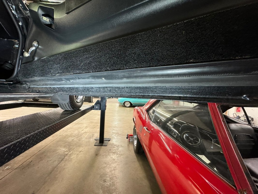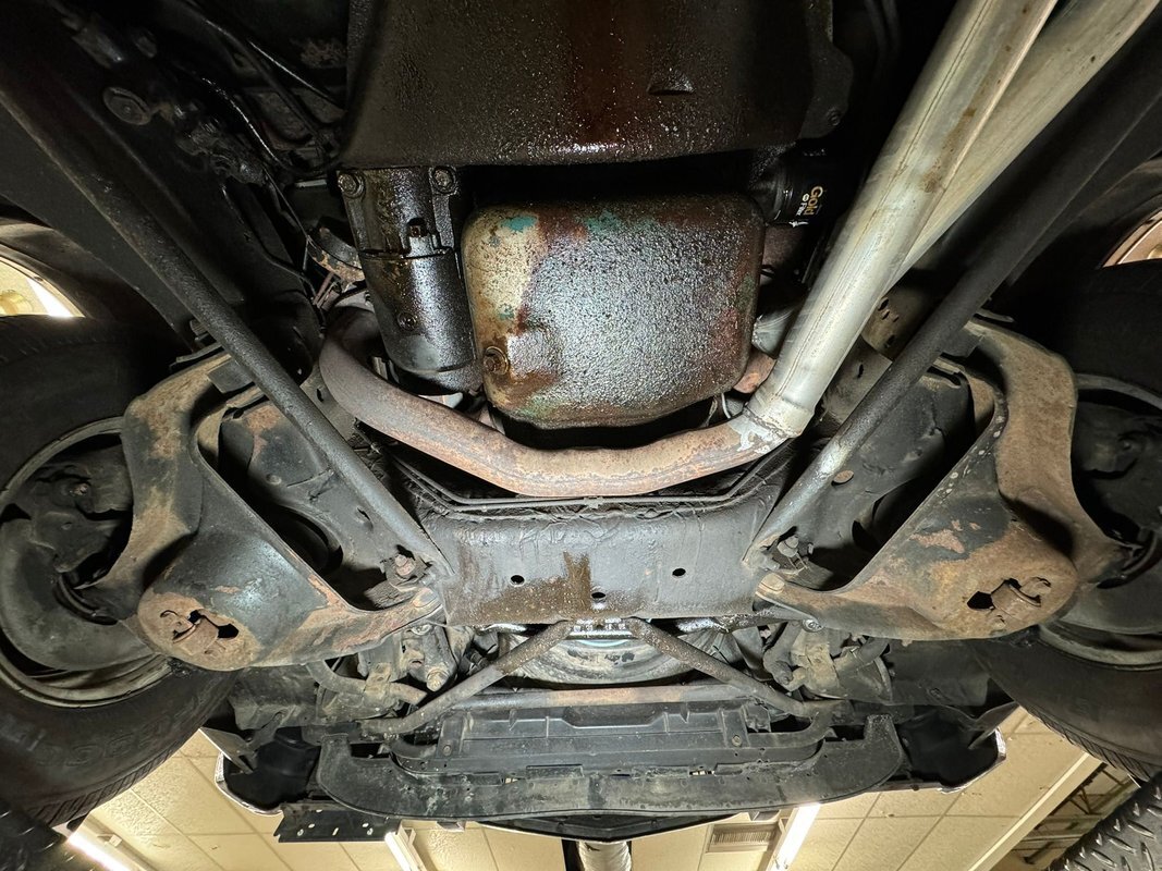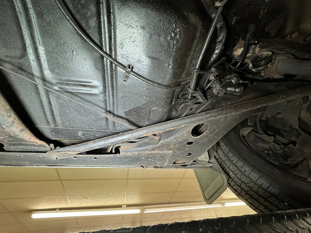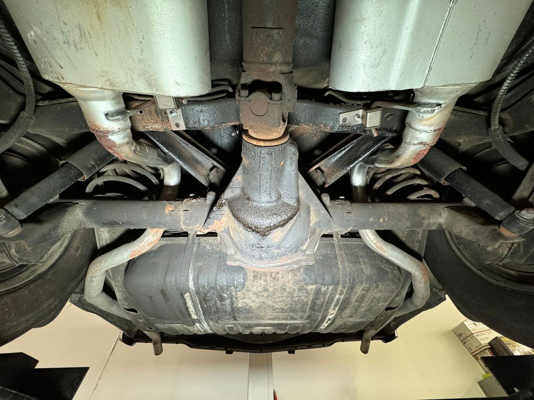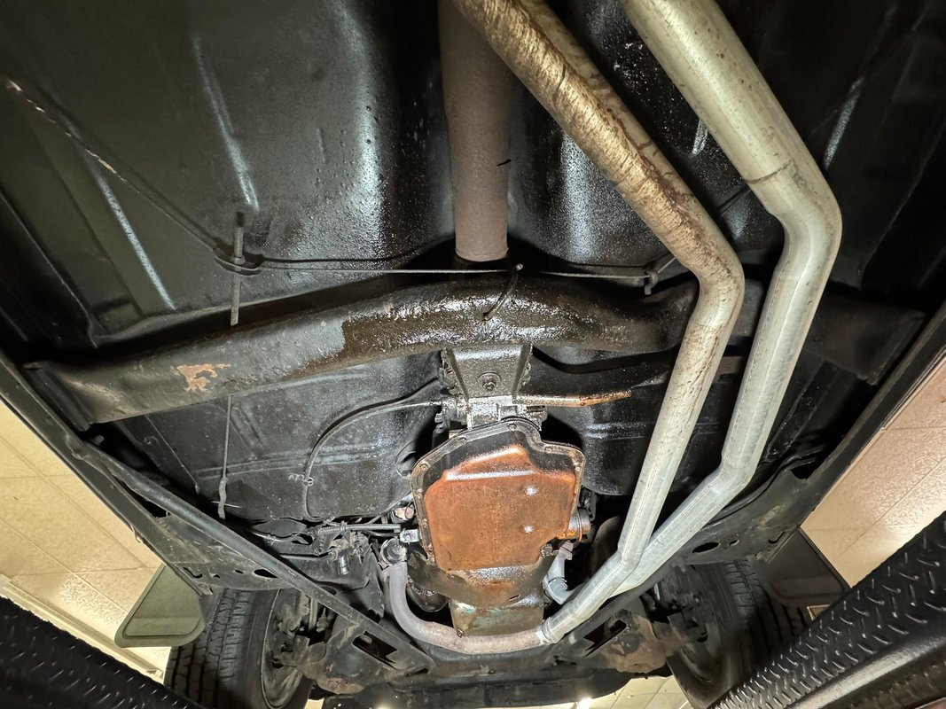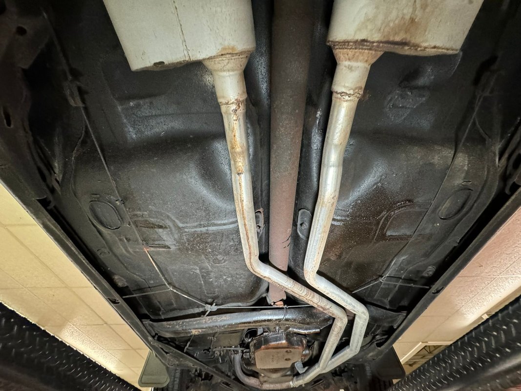 Some light surface rust is noted throughout but certainly nothing to be concerned about. Power disc brakes are on the front of the car and power drums for the rear and for the Radial Tuned Suspension, we see an independent coil springs up front and a 4 link and coil springs in the rear. A dual exhaust system with Flowmaster mufflers is on for the exhale and is looking just fine, but is sans the catalytic converter.