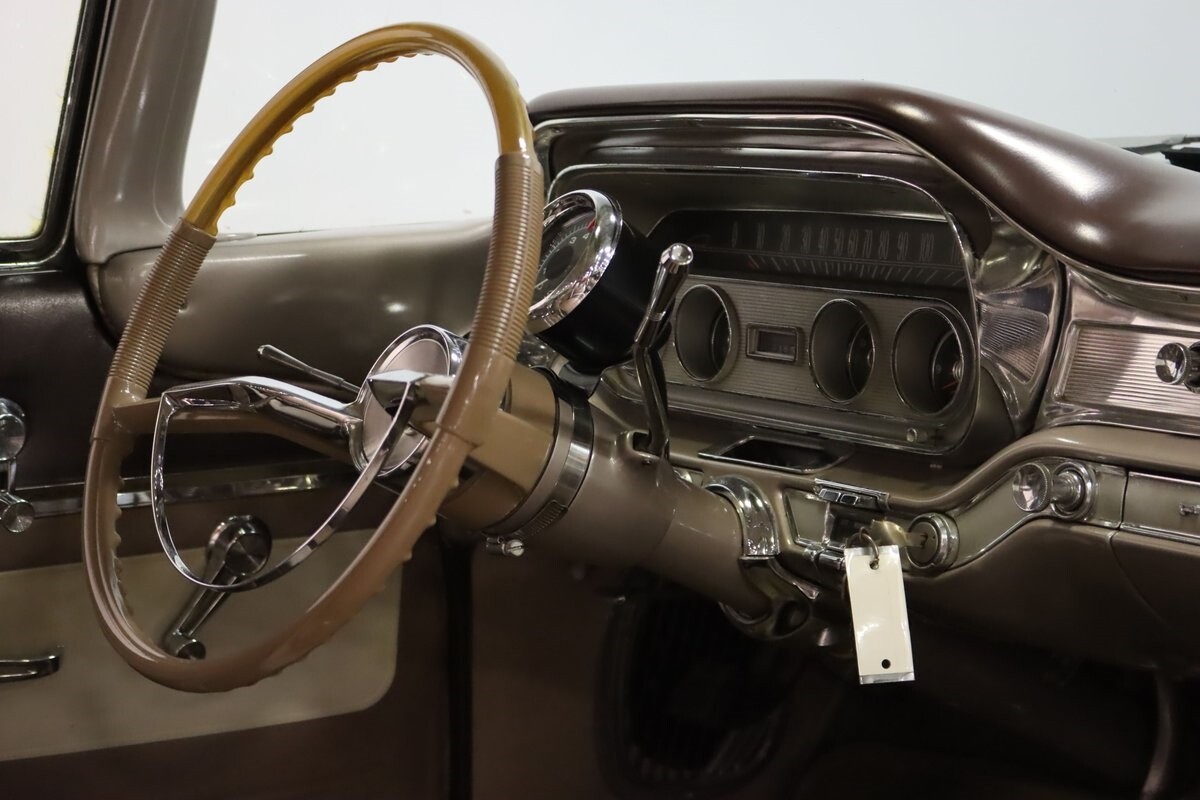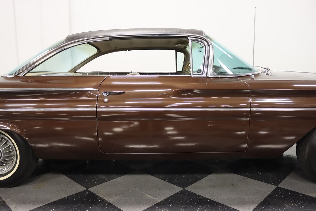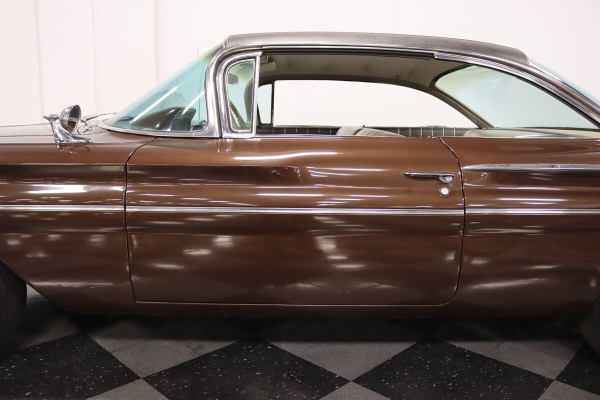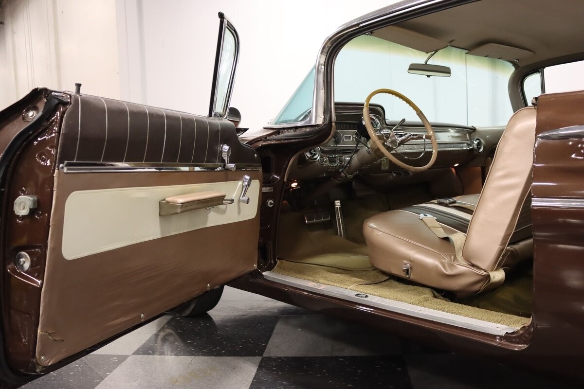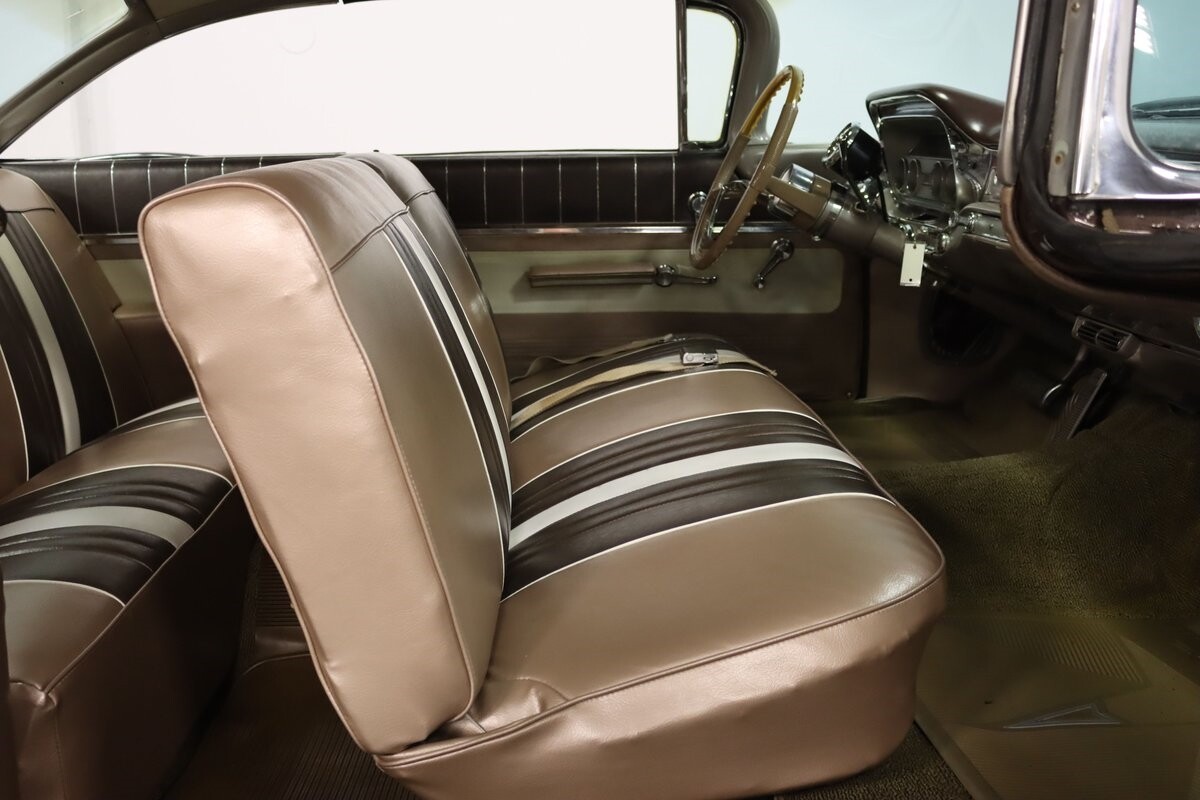 Refinished in Code N Mahogany Metallic, this stunning bubble-top coupe doesn't need a bunch of chrome or a convertible top to stop traffic wherever it goes. Freshly designed for the 1960 model year, the look is pure satellite-era Pontiac all around (the profile practically looks like a spaceship dome atop a flat platform), but one can also see the hints of the GTO to come in the front end. The aforementioned flat hood and decklid make the car look gigantic, even though it's actually built on GM smaller 122-inch wheelbase. It's obvious that the car was painted not terribly long ago, as the finish still has a very fresh look, and although it's certainly a driver, it's a top-end driver with deep, lustrous paint that has very few imperfections to speak of. In fact, take a couple steps back and you likely won't spot a demerit, and a professional buff-and-wax would only further improve things. Undivided horizontal bars in the unique front grille were actually quite revolutionary for the year, and that trim styling continues on the hood trim and profile moldings, which do a great job breaking up all that Mahogany finish. In back, the cool 'rocket' taillights are surrounded by plenty of chrome trim as well, and those have to be the biggest (and coolest) turn signals ever incorporated into such an ornate rear end. There's a lot of sheetmetal all in great condition and the gaps are uniform as well, which is especially critical thanks to that arrow-like side trim. A matching Mahogany vinyl roof adds a touch of sophistication to this Pontiac's already off-the-charts curb appeal, and it helps draw attention to the incredibly cool bubble top – with those incredibly thin pillars and awesome curved E-Z-Eye glass.