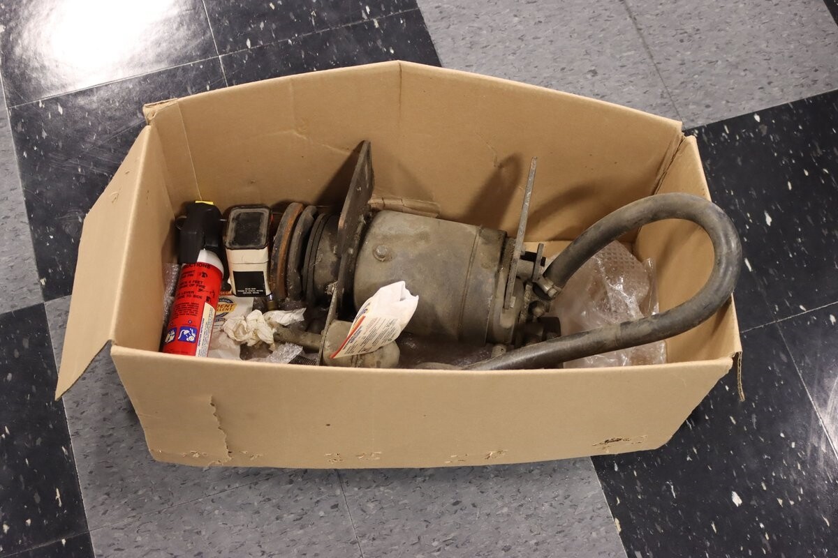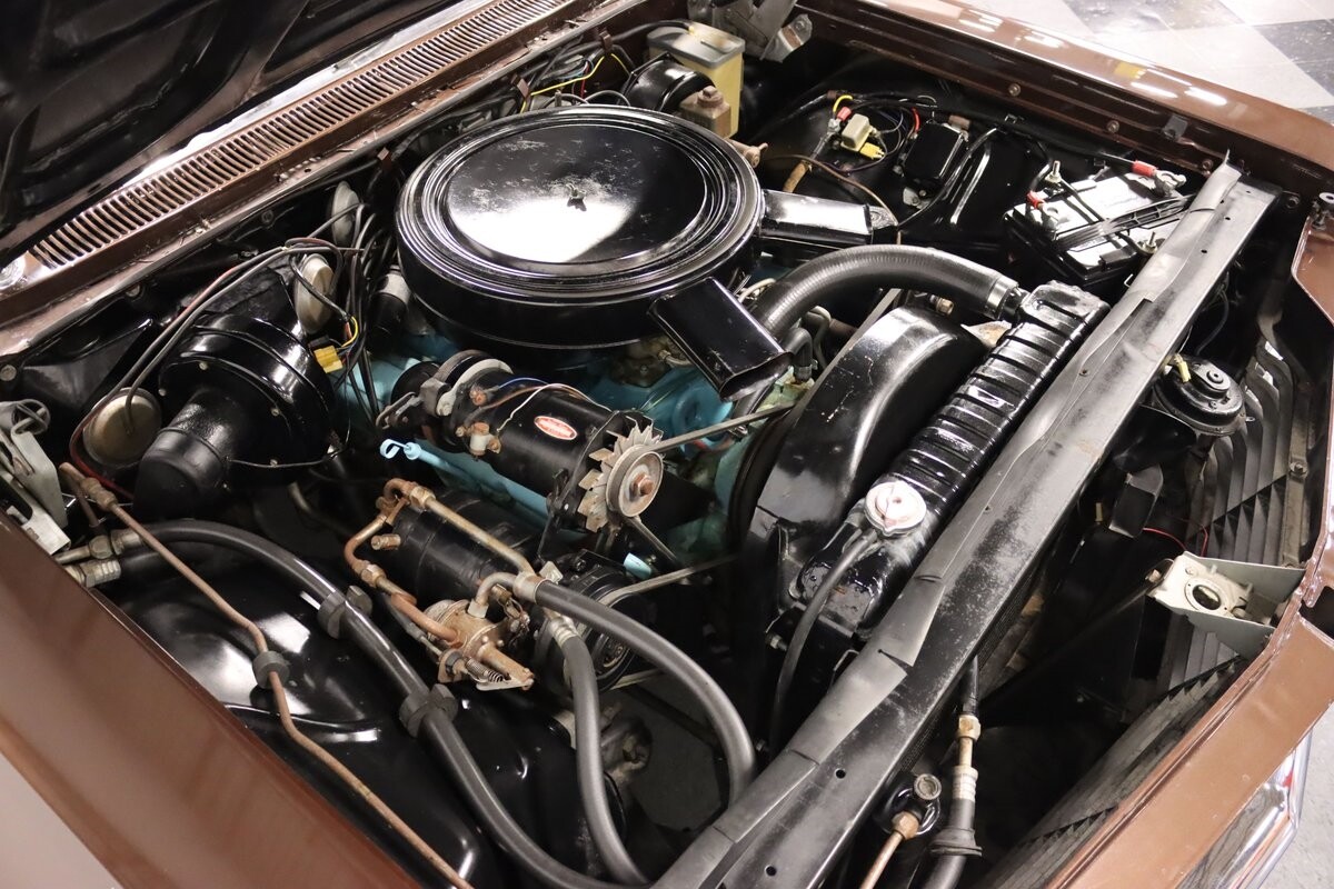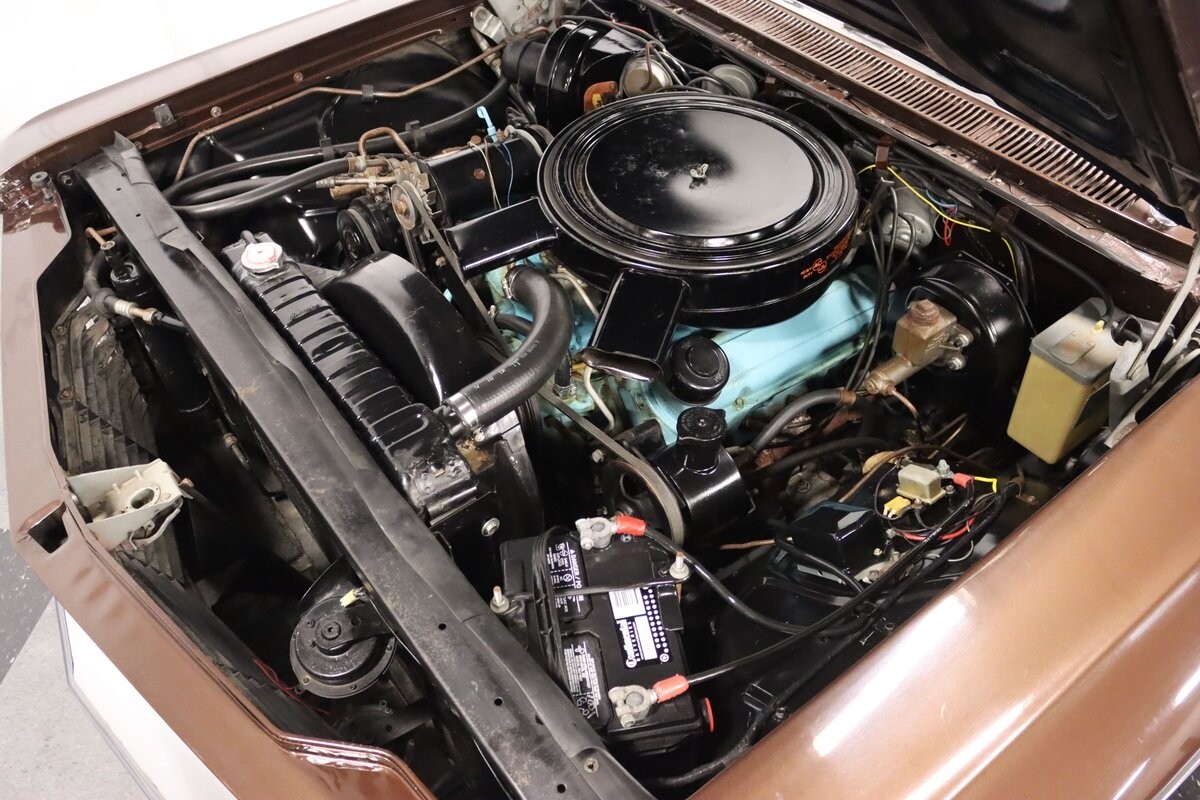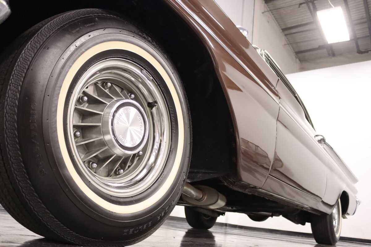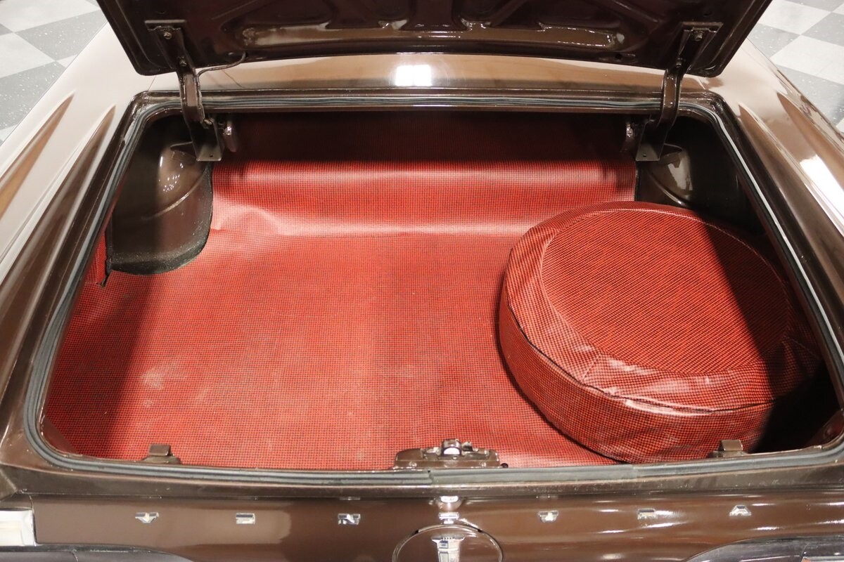 Inside, this Ventura is fitted with Pontiac's tri-tone "Morrokide" harmonizing upholstery, which isn't its original Fawn combination, but you can't argue that it doesn't look awesome in those varying shades of tan and brown. The dash is a piece of '60s modern art, with a lovely combination of chrome, brushed stainless, and matching two-tone finish that is as cool as a vintage Rolex. The seats have been correctly fitted with unique seat covers and springy foam underneath makes them firm and supportive. Look closely and you'll dig all the detailing this up-model Ventura gets you. For example, the large Lucite, chrome, and vinyl steering wheel is in excellent condition, the slender chrome shifter and matching turn signal stalk are minimalist yet ornate, and even the original Wonder Bar AM radio remains in the dash. A SunPro tachometer that was strapped to the steering column is the only piece that's not stock inside, as even the A/C unit is the correct Circ-L-Aire system that this Ventura was born with. Color-matched floor mats protect the plush wall-to-wall carpets and the trunk is correctly finished with a bright red mat and full-sized spare with cover.