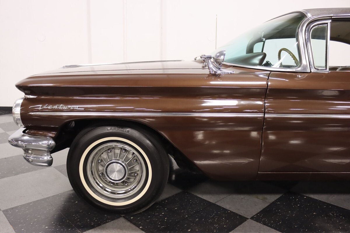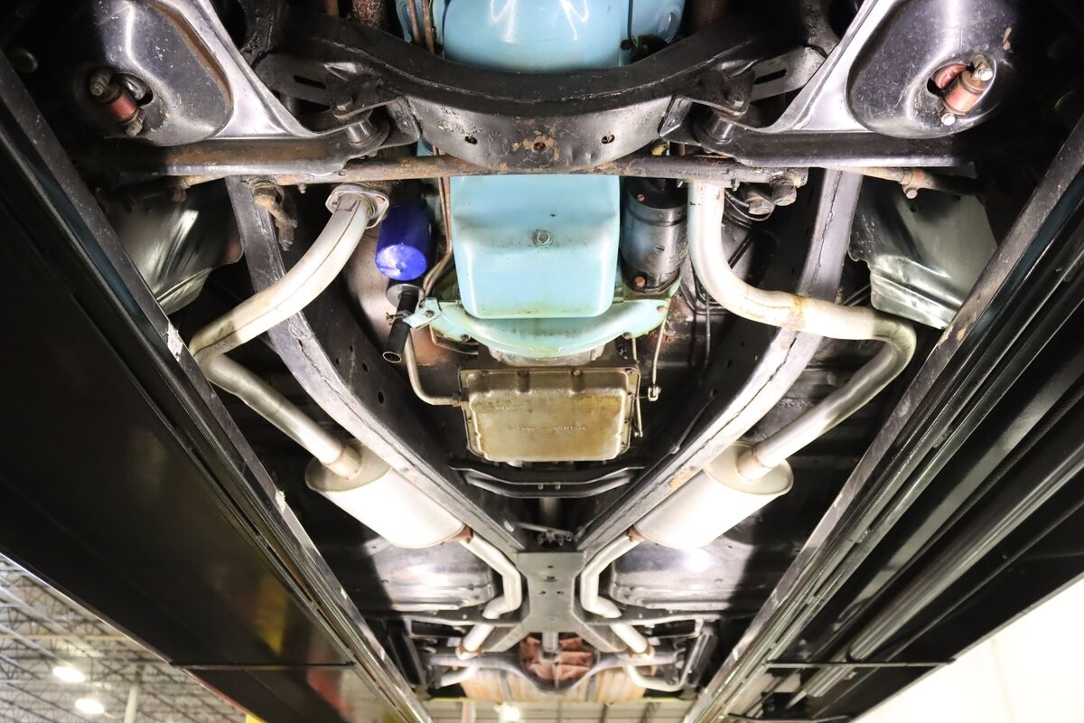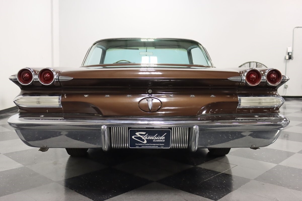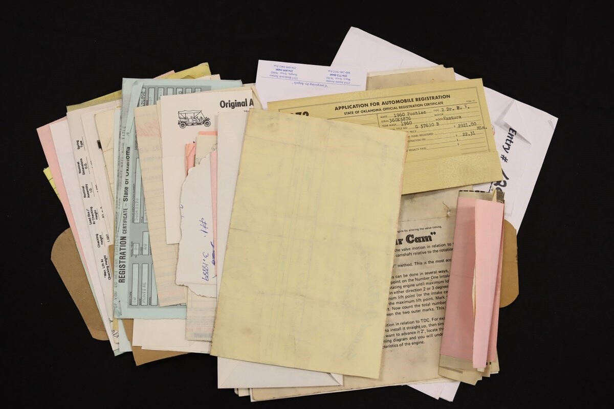 Power comes from the believed-original 389 cubic inch V8, which with a Tri-Power carburetor setup was Pontiac's top performer and would become the foundation of the GTO just a few years later. With big horsepower and plenty of torque, this middleweight coupe moves like a bantam yet hits like a heavyweight. The engine is properly dressed in Pontiac Turquoise paint and topped with a black snorkel air cleaner, and there wasn't much flash this year, apparently they were waiting for the GTO to start adding chrome under the hood. Although not perfect, the engine bay has a very nice shine, and turns heads everywhere it goes because it looks completely authentic. Pontiac's famed Wide-Track wheel design teams with a supple, softer suspension introduced in 1960, meaning this Ventura floats down the road, further aided by factory 'Wonder Touch' power steering and brakes. The Hydra-Matic transmission shifts smoothly, sending power to the Safe-T-Track rear differential that can easily handle the car's torque, and the stock-style dual exhaust underneath has a fantastic note. Underneath, it's incredibly solid and clean with original floors, and 14-inch PMD 8-lug wheels wrapped in 225/70/14 Laramie whitewall tires at the corners are the perfect endcaps.