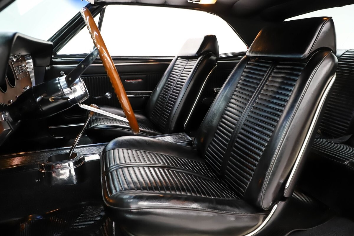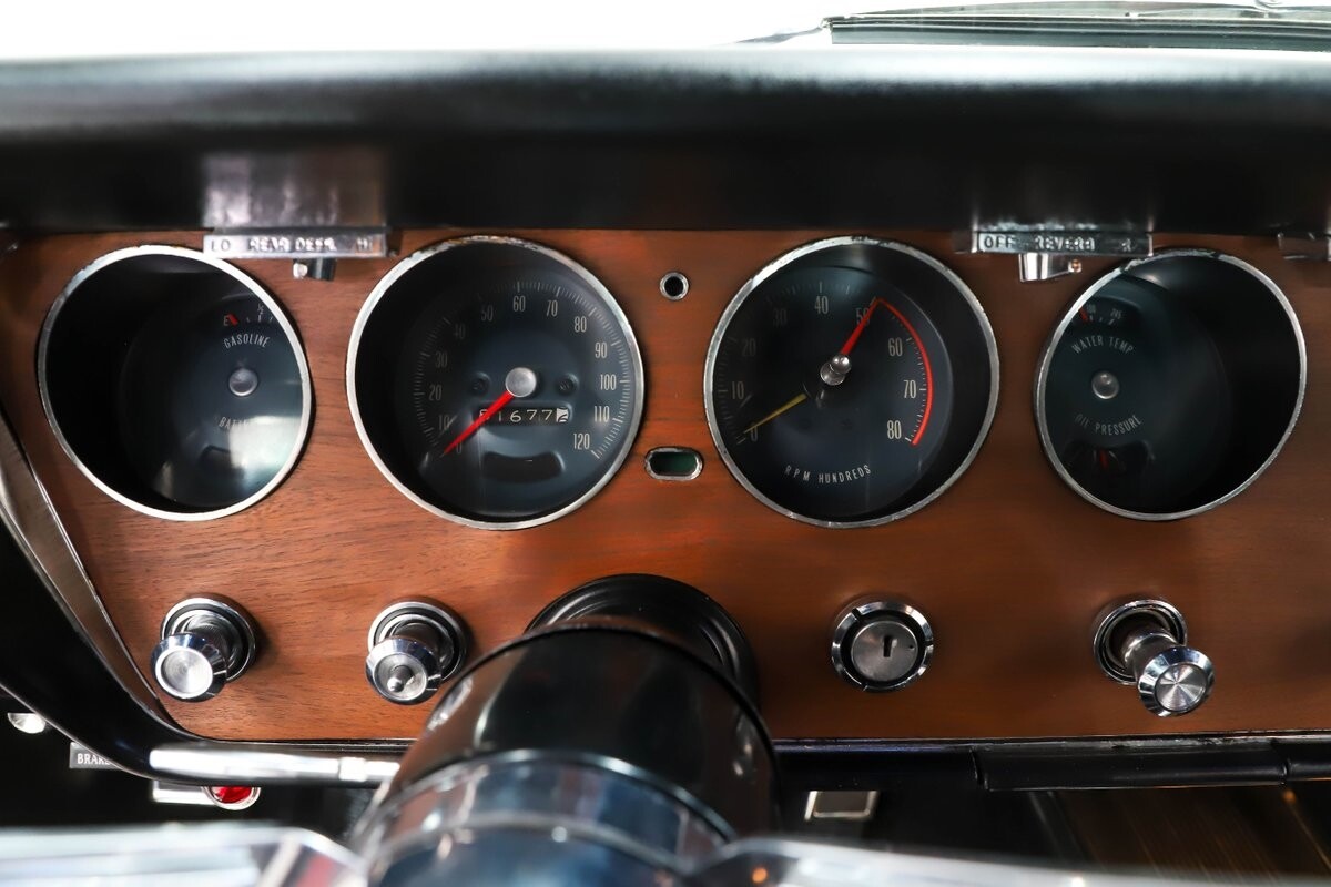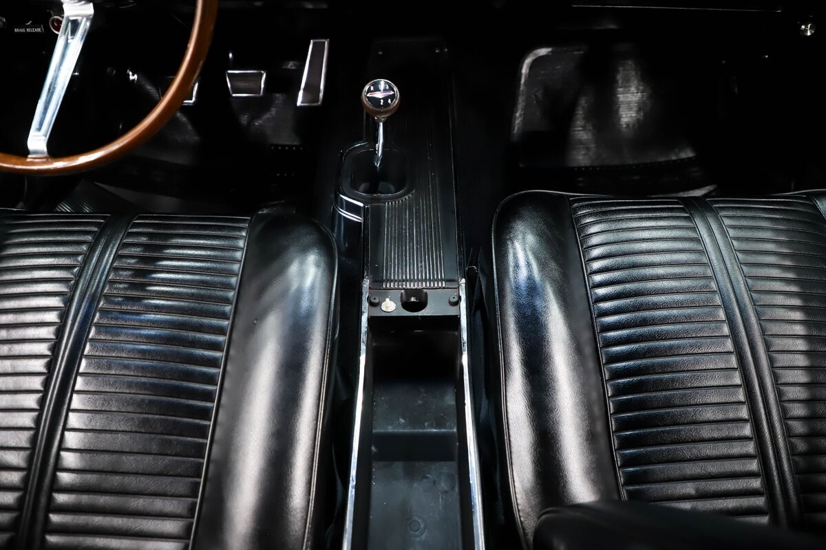 INTERIOR: All original interior except the carpet and it's the in great shape! Talk about options, this list is long! Let's start with the most exciting: my favorite is the reverb speaker, and it works! It also has a factory Am-Fm radio, rally gauges, a deluxe wheel on a tilt column, rear defogger, and a hazard light switch. The bucket seats are special: driver's side is power, passenger side reclines, and both have headrests. Down on the floor is deluxe seatbelts, reproduction mats, pedal trim, a center console which is home to a Hurst shifter with optional walnut knob. Overhead it has map lights as part of the lamp group. Everything looks great and it is very functional.