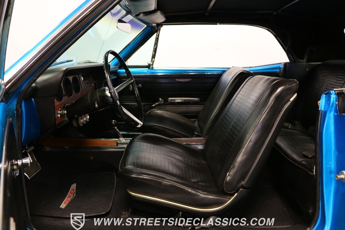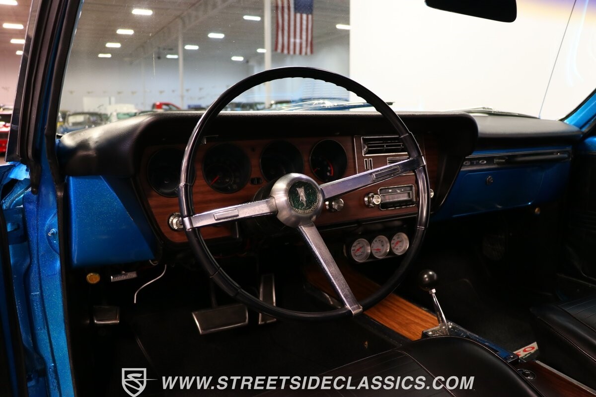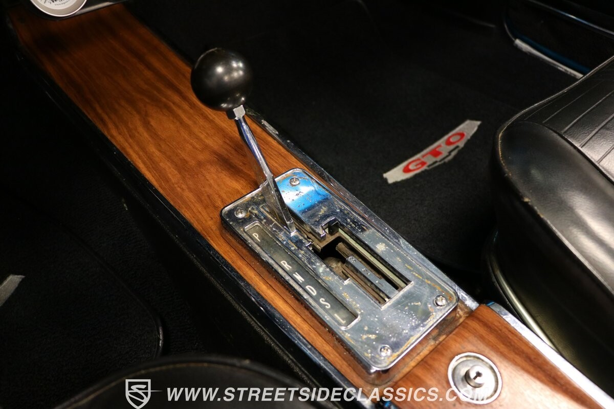 Pontiac's 400 cubic-inch V8 was part of the first-gen GTO, but not in the '66, so having this upgrade is already quite a nice benefit. It's attractive thanks to the classic blue block and overall tidy setup. This V8 is the heart of what makes this GTO tribute such an appealing driver. It's upgraded for power with an Edelbrock AVS2 four-barrel carburetor, an Edelbrock Performer RPM intake, and headers feeding into the dual exhaust. There are also suitable supporting components, like a BeCool aluminum radiator, fabricated valve covers, and a complete MSD ignition system. This mighty motor fires up eagerly, and the three-speed automatic transmission is a stout TH400 unit, so you can adequately utilize the dual-gate shifter if you like. There's also power steering, power brakes, and upgraded front discs with drilled & slotted rotors.