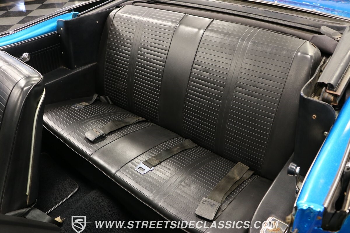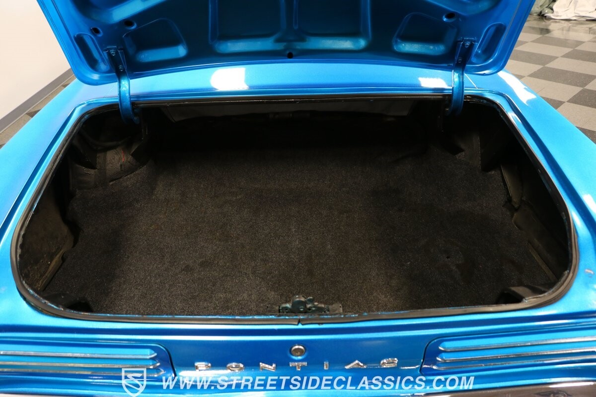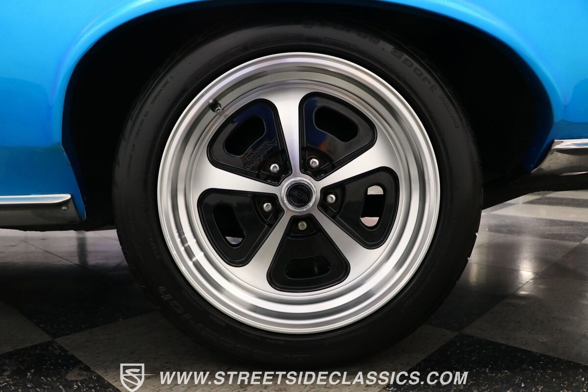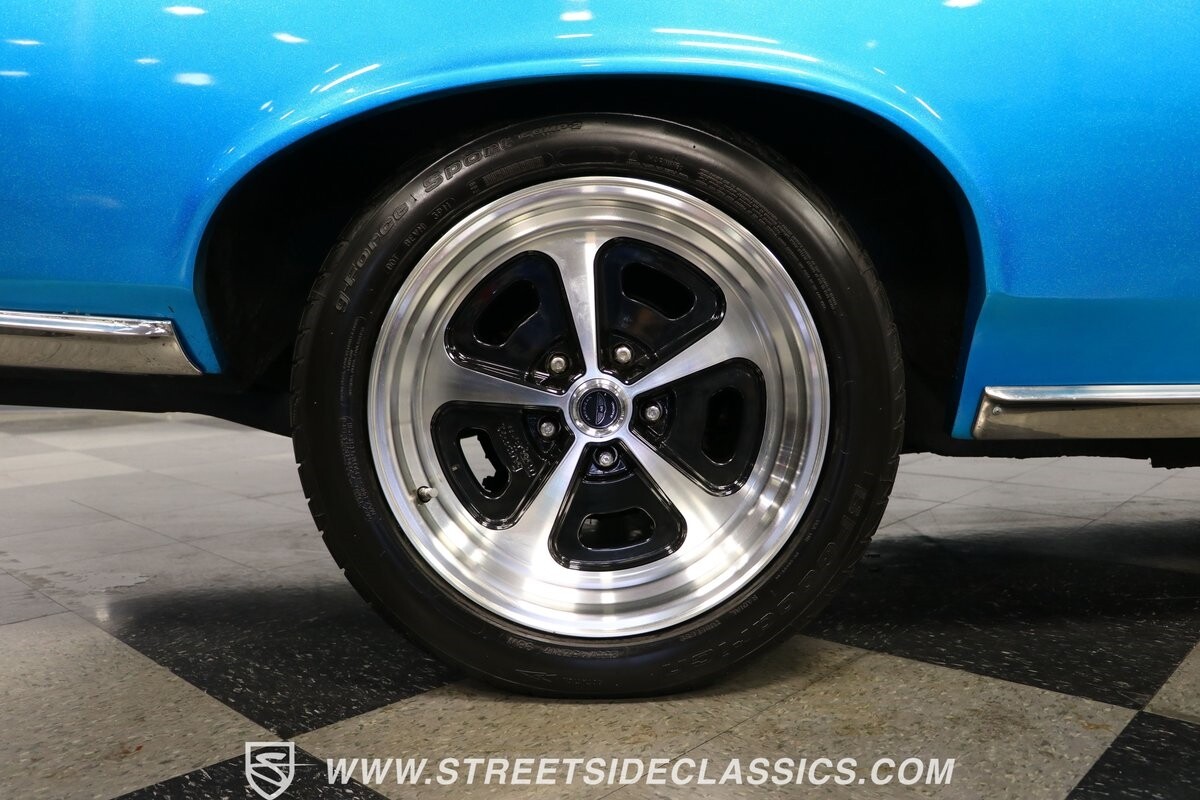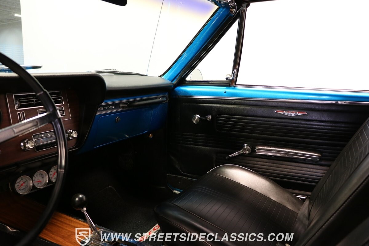 Pontiac gave the premium LeMans plenty of style, so upgrading it to a GTO is not hard. But we all know if you miss some key areas. So it's nice to see this is done correctly in places like the hood scoop and exclusive tail light panel. Form-fitting chrome bumpers and full rocker trim make for some attractive brightwork. But on this unique convertible, the paint is the true radiant star. The blue has an impressive amount of metallic embedded deep into the finish. So when the light hits it, this convertible can make some bass boats jealous. The kind of upgrade shows this is a tribute car made to be driven. So it never gets too fancy like a museum piece, but it sure knows how to have a presence out on the road. And those American Racing wheels are even made to look like classic mag wheels from the 1960s, but they are modern 17-inch alloys that hold some of the best modern sport tires.