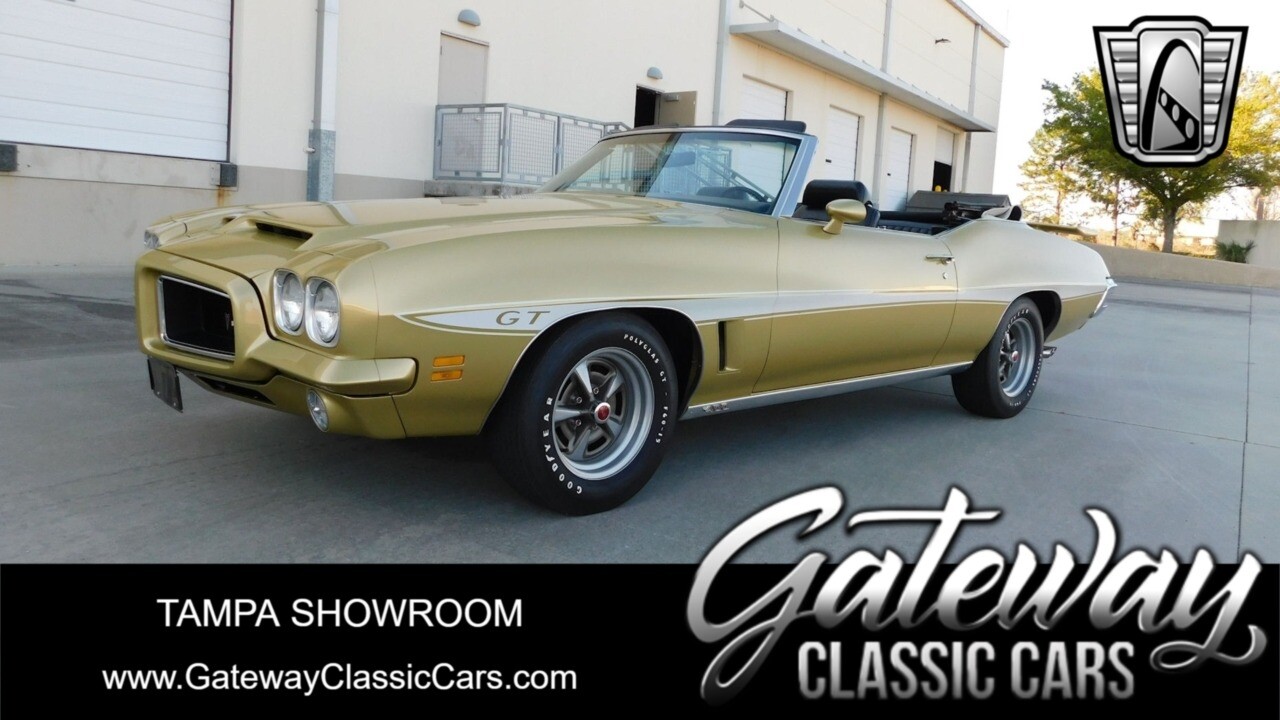 Gateway Classic Cars of Tampa is proud to offer this rare 1972 Pontiac Lemans sport convertible! The GTO gets ALL the love, but Pontiac had a car for every budget and customer. This 72 Lemans sport represents that philosophy to a tee. Finished in a gorgeous Brasilia Gold over a black bucket with center console interior and a white power convertible top - this thing grabs the eye. The white GT stripe along the flanks and classic Pontiac Rally IIs accentuate the color and set the car apart. The color matched Endura bumper and rear spoiler ensure this car makes no apologies for what it is at the Pontiac meets. It looks as good as any GTO! There's plenty of power to match the looks thanks to the venerable 400ci V8 topped with a 4-barrel carb and a three-speed manual handling shifting duties. This car was optioned with power brakes (disk up front) power steering, Rally gauges, and dual sport mirrors and horns. Did we mention the AC? Yes, this is a very well optioned - claimed original - 1972 Lemans! Except for one respray it's as it was from the factory. The car comes with a PHS to verify the numbers and options, plus a copy of the order and build sheet. This is a car for the serious collector. Well documented and in near mint condition. [ omitted ]. [ omitted ]. Our Tampa Showroom is located at 361 30th Street NE Ruskin, FL 33570. [ omitted ].